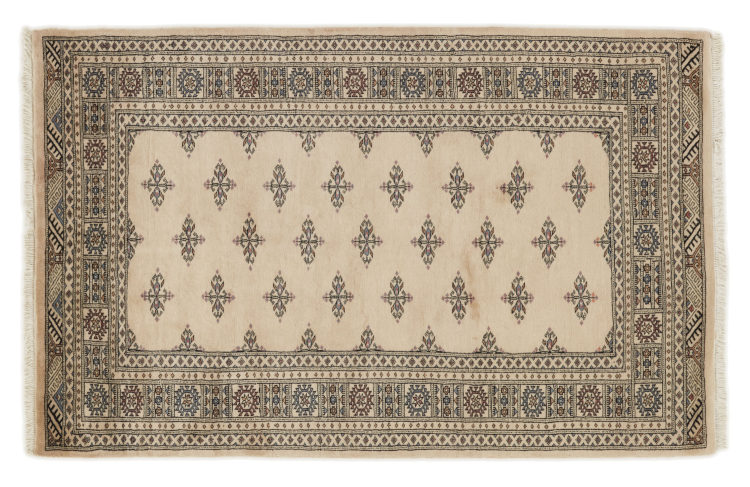 O mare parte din producția de covoare din Pakistan are loc în și în jurul orașelor Lahore și Karachi. Mulți dintre țesătorii de covoare din acea vreme au fugit în Pakistan în timpul războiului cu India și s-au stabilit acolo. Covoarele Pakistan Bukhara înnodate manual sunt deosebit de populare astăzi. Similar cu covoarele orientale afgane, cele pakistaneze sunt, de asemenea, păstrate în tonuri închise și au în mare parte tonuri roșii. Cunoscutul model de picioare de elefant (model octogonal care se repetă) poate fi găsit și pe un pakistanez.