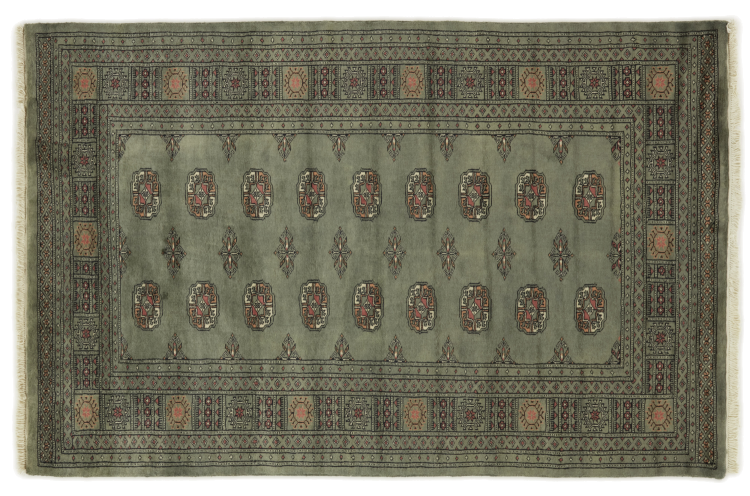 O mare parte din producția de covoare din Pakistan are loc în și în jurul orașelor Lahore și Karachi. Mulți dintre țesătorii de covoare din acea vreme au fugit în Pakistan în timpul războiului cu India și s-au stabilit acolo. Covoarele Pakistan Bukhara înnodate manual sunt deosebit de populare astăzi. Similar cu covoarele orientale afgane, cele pakistaneze sunt, de asemenea, păstrate în tonuri închise și au în mare parte tonuri roșii. Cunoscutul model de picioare de elefant (model octogonal care se repetă) poate fi găsit și pe un pakistanez.
