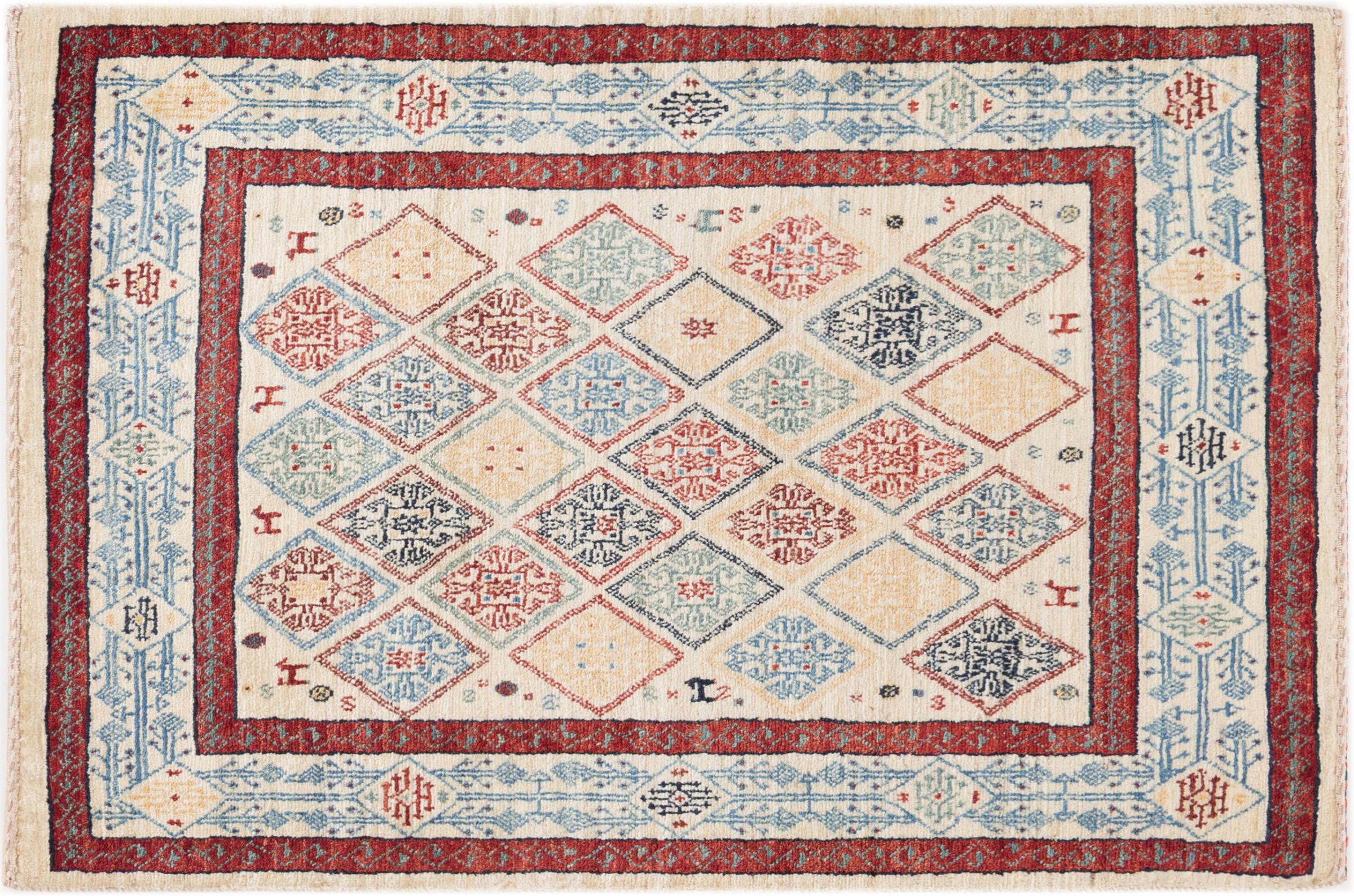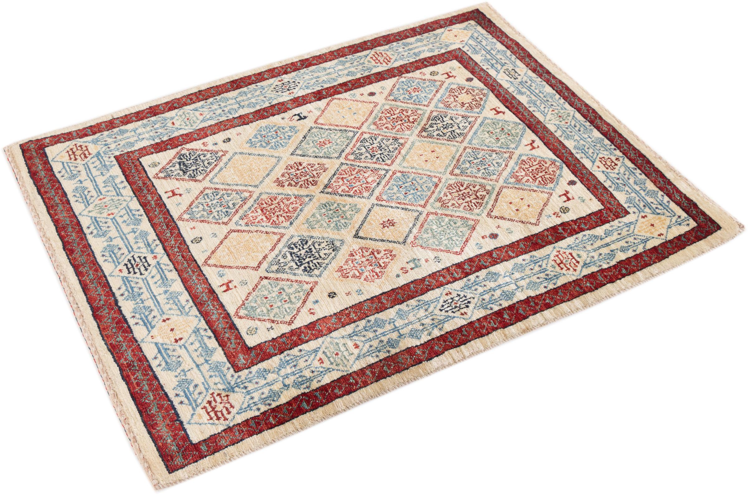 Acest frumos covor este un Gabbeh persan și este unul dintre covoarele Gabbeh de cea mai înaltă calitate. Covoarele sunt înnodate de nomazi sau semi-nomazi în Iran conform meșteșugurilor tradiționale. Motivele și modelele simple sunt în mare parte inspirate din mediul imediat al nomazilor. De exemplu, cămile, copaci sau tufișuri pot fi găsite pe covoarele tradiționale. Covoarele persane Gabbeh sunt fabricate din lână de la turmele de oi crescute local. Prin urmare, lâna este în mare parte toartă manual. Fiecare dintre aceste covoare orientale întruchipează un caracter unic al culturii de secole.