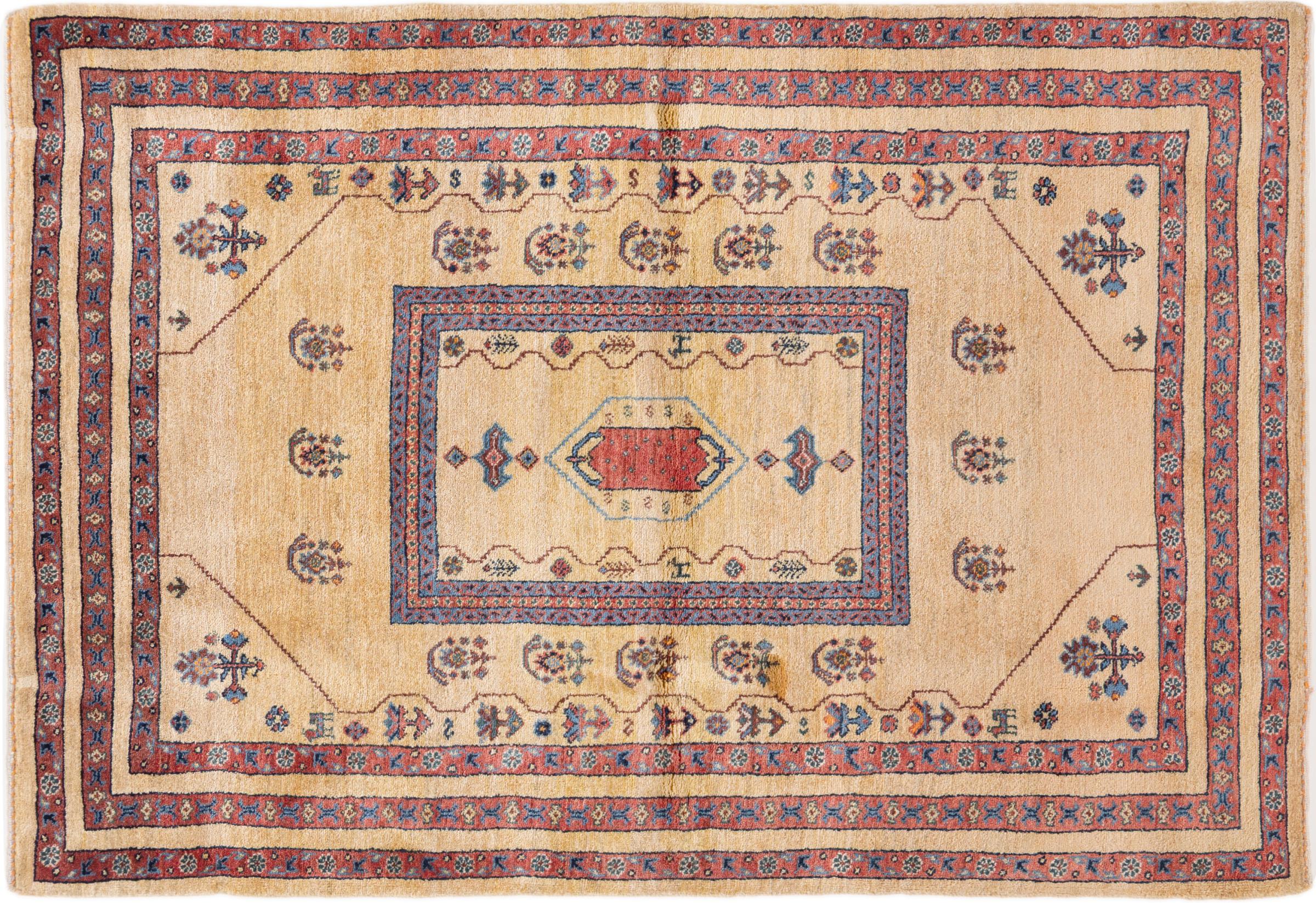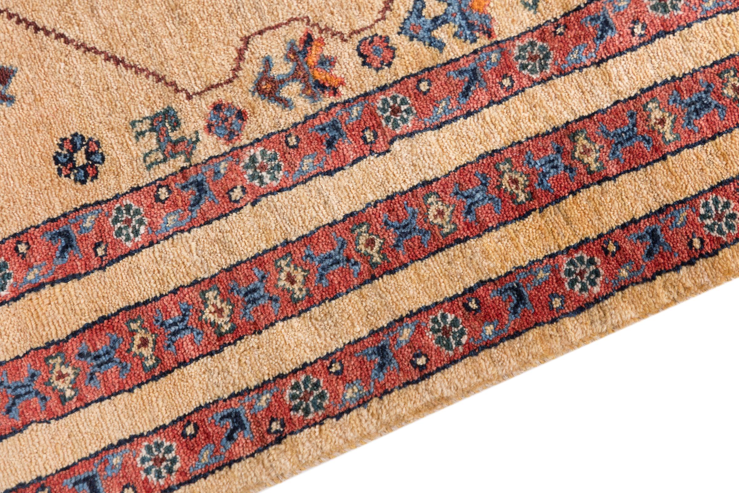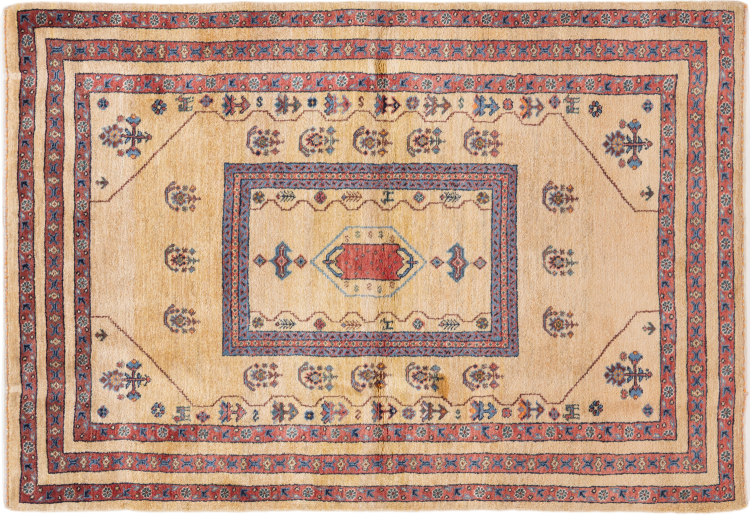 Acest frumos covor este un Gabbeh persan și este unul dintre covoarele Gabbeh de cea mai înaltă calitate. Covoarele sunt înnodate de nomazi sau semi-nomazi în Iran conform meșteșugurilor tradiționale. Motivele și modelele simple sunt în mare parte inspirate din mediul imediat al nomazilor. De exemplu, cămile, copaci sau tufișuri pot fi găsite pe covoarele tradiționale. Covoarele persane Gabbeh sunt fabricate din lână de la turmele de oi crescute local. Prin urmare, lâna este în mare parte toartă manual. Fiecare dintre aceste covoare orientale întruchipează un caracter unic al culturii de secole.