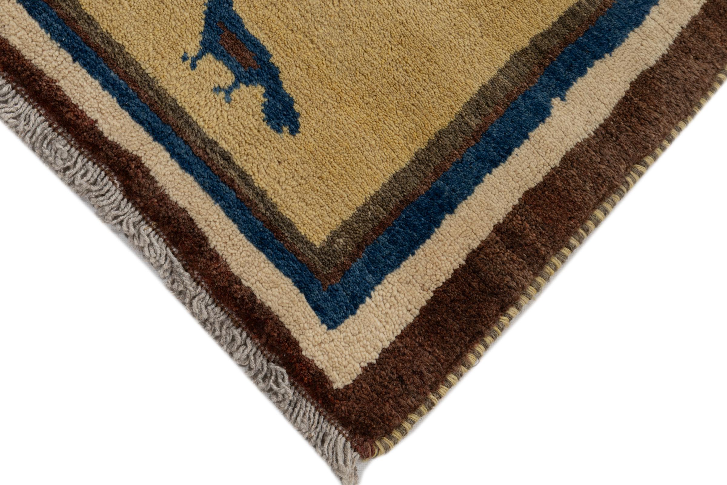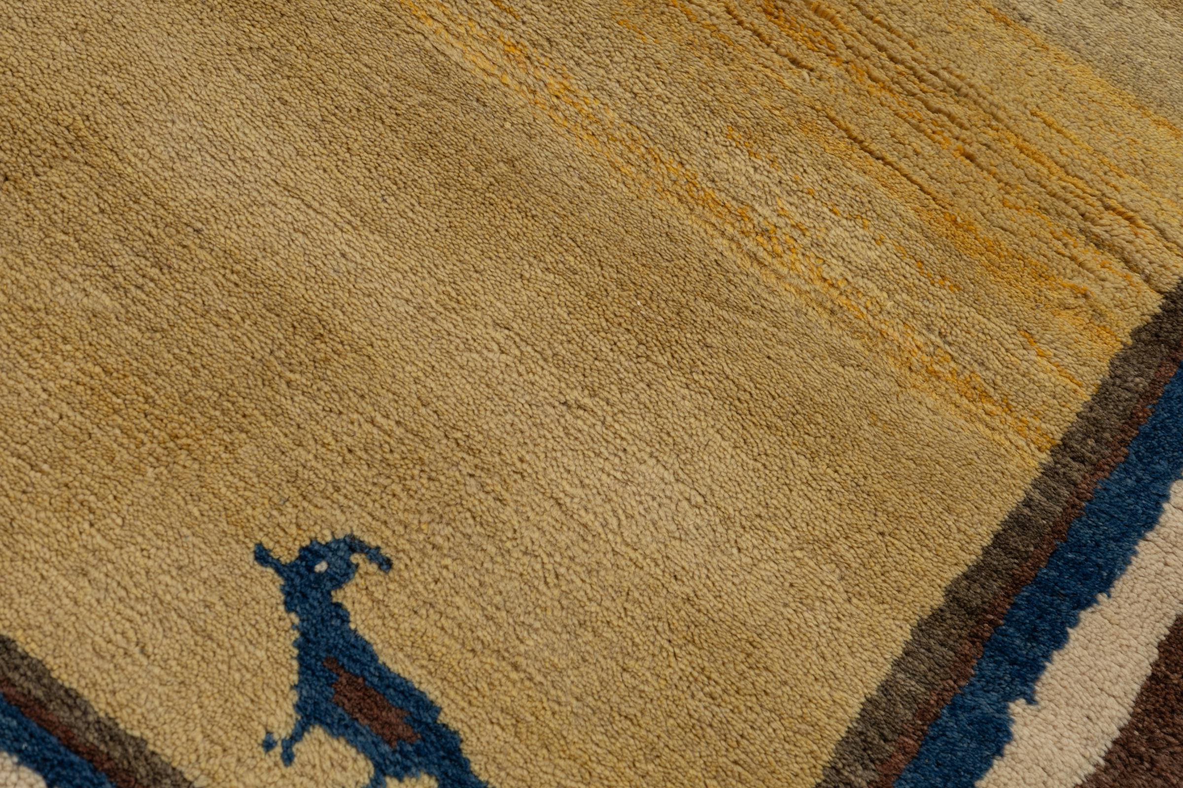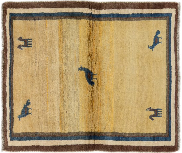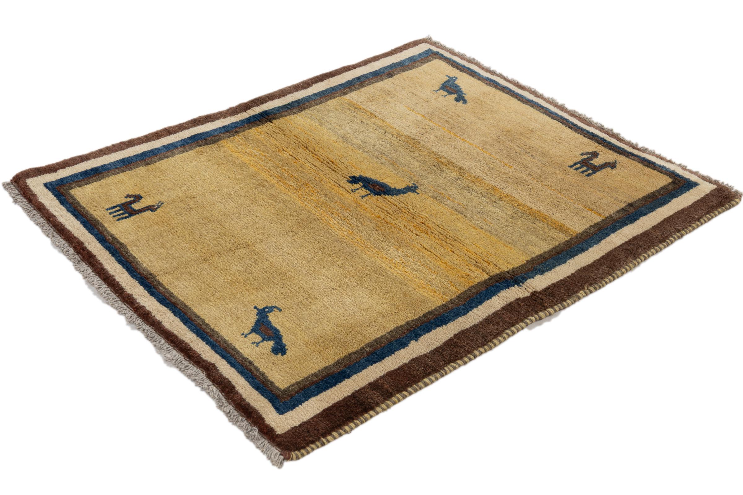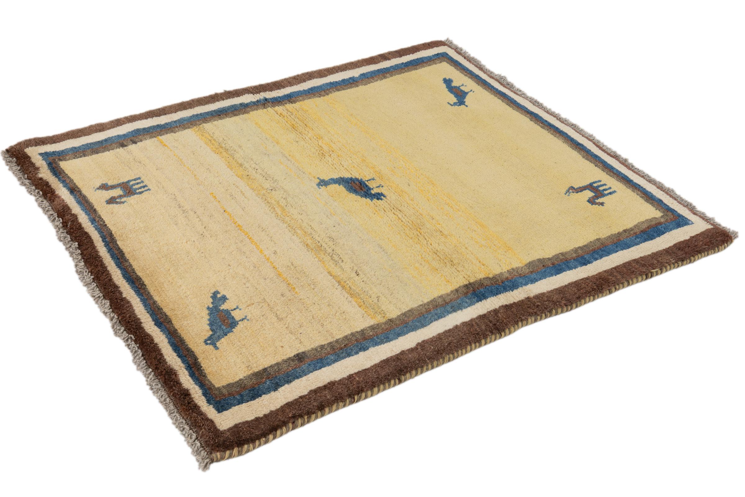 Acest frumos covor este un Gabbeh persan și este unul dintre covoarele Gabbeh de cea mai înaltă calitate. Covoarele sunt înnodate de nomazi sau semi-nomazi în Iran conform meșteșugurilor tradiționale. Motivele și modelele simple sunt în mare parte inspirate din mediul imediat al nomazilor. De exemplu, cămile, copaci sau tufișuri pot fi găsite pe covoarele tradiționale. Covoarele persane Gabbeh sunt fabricate din lână de la turmele de oi crescute local. Prin urmare, lâna este în mare parte toartă manual. Fiecare dintre aceste covoare orientale întruchipează un caracter unic al culturii de secole.