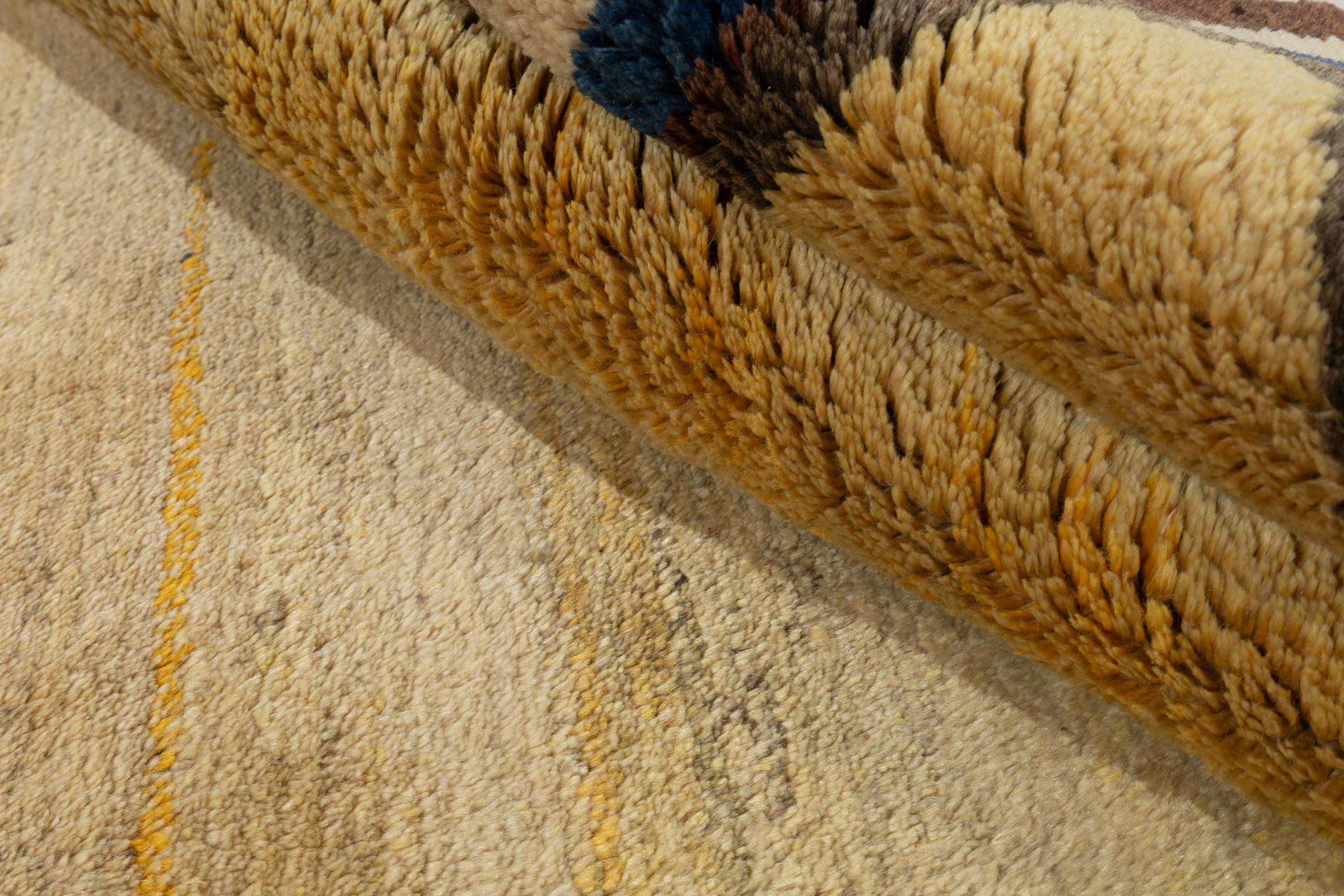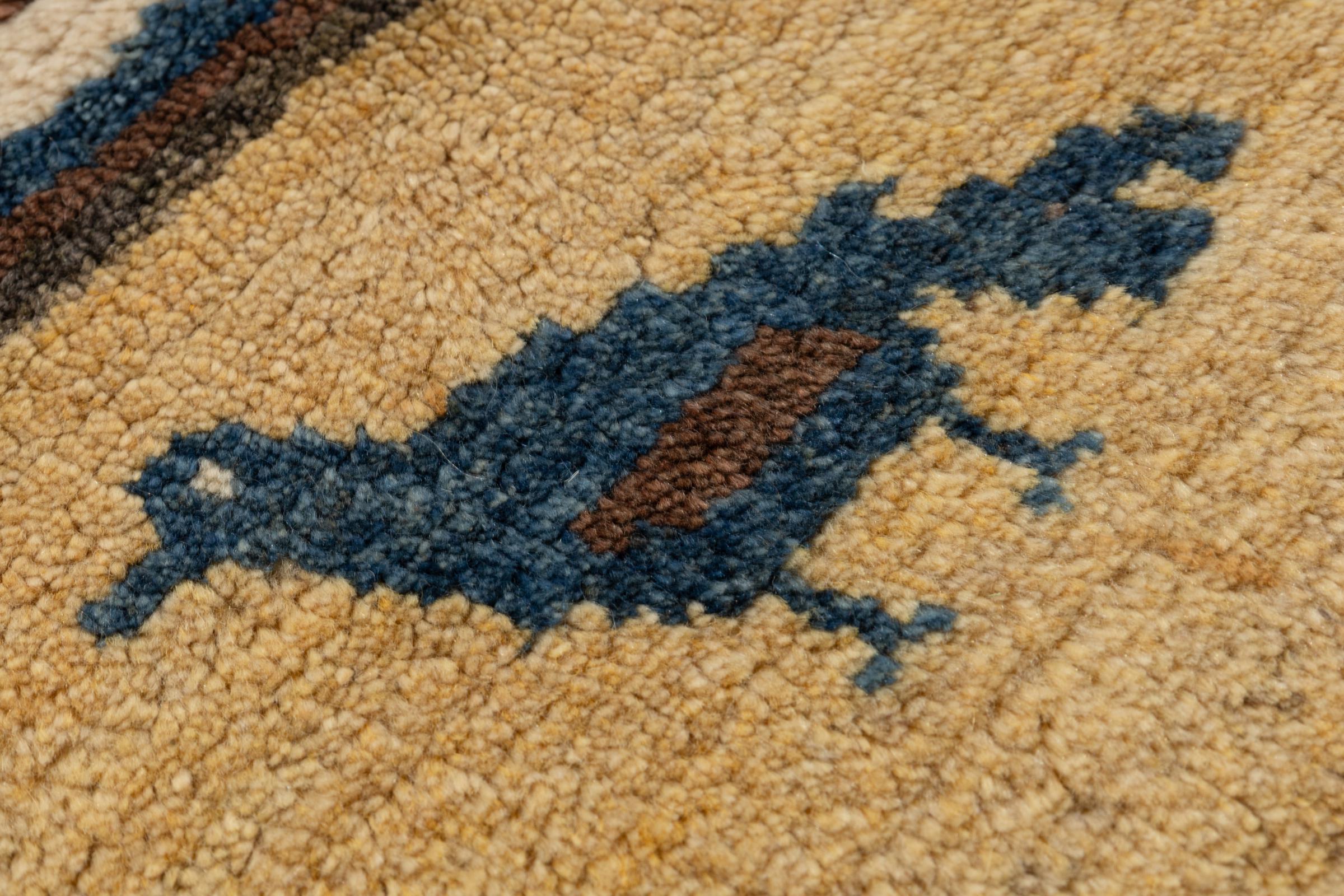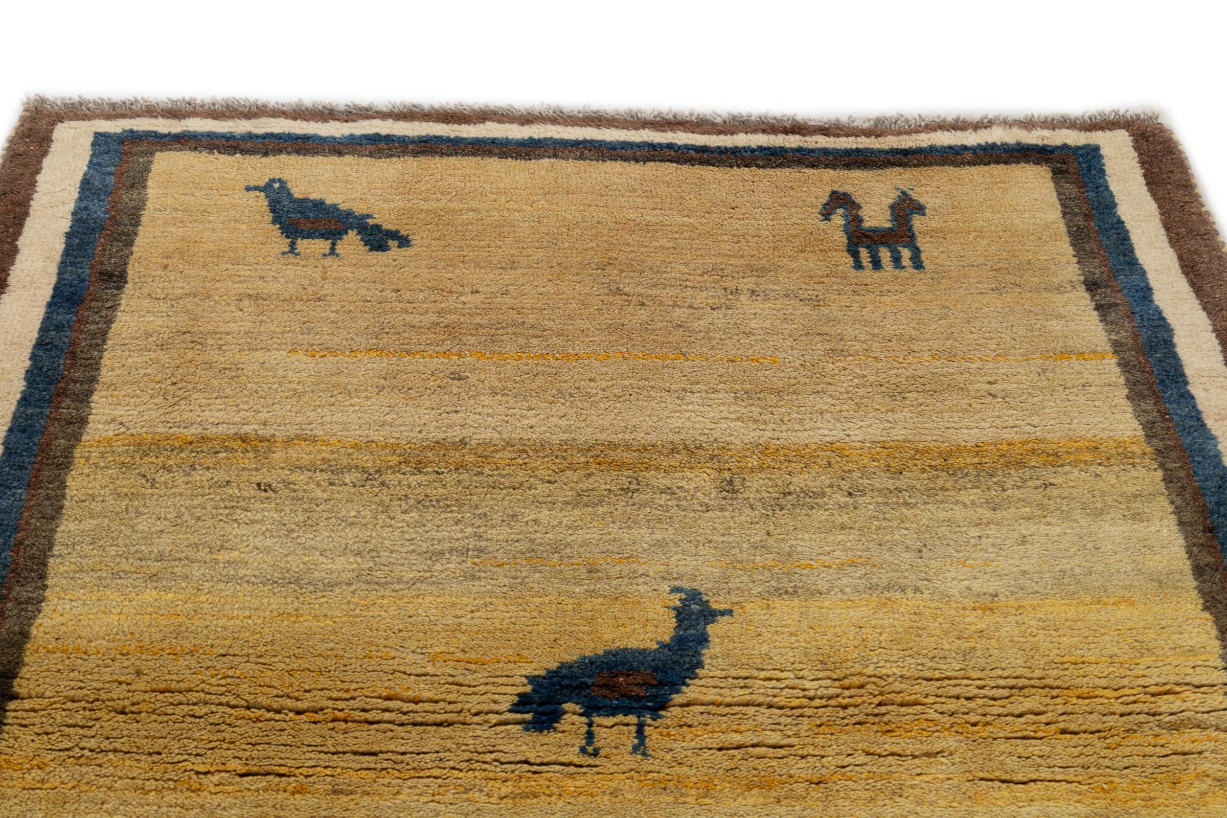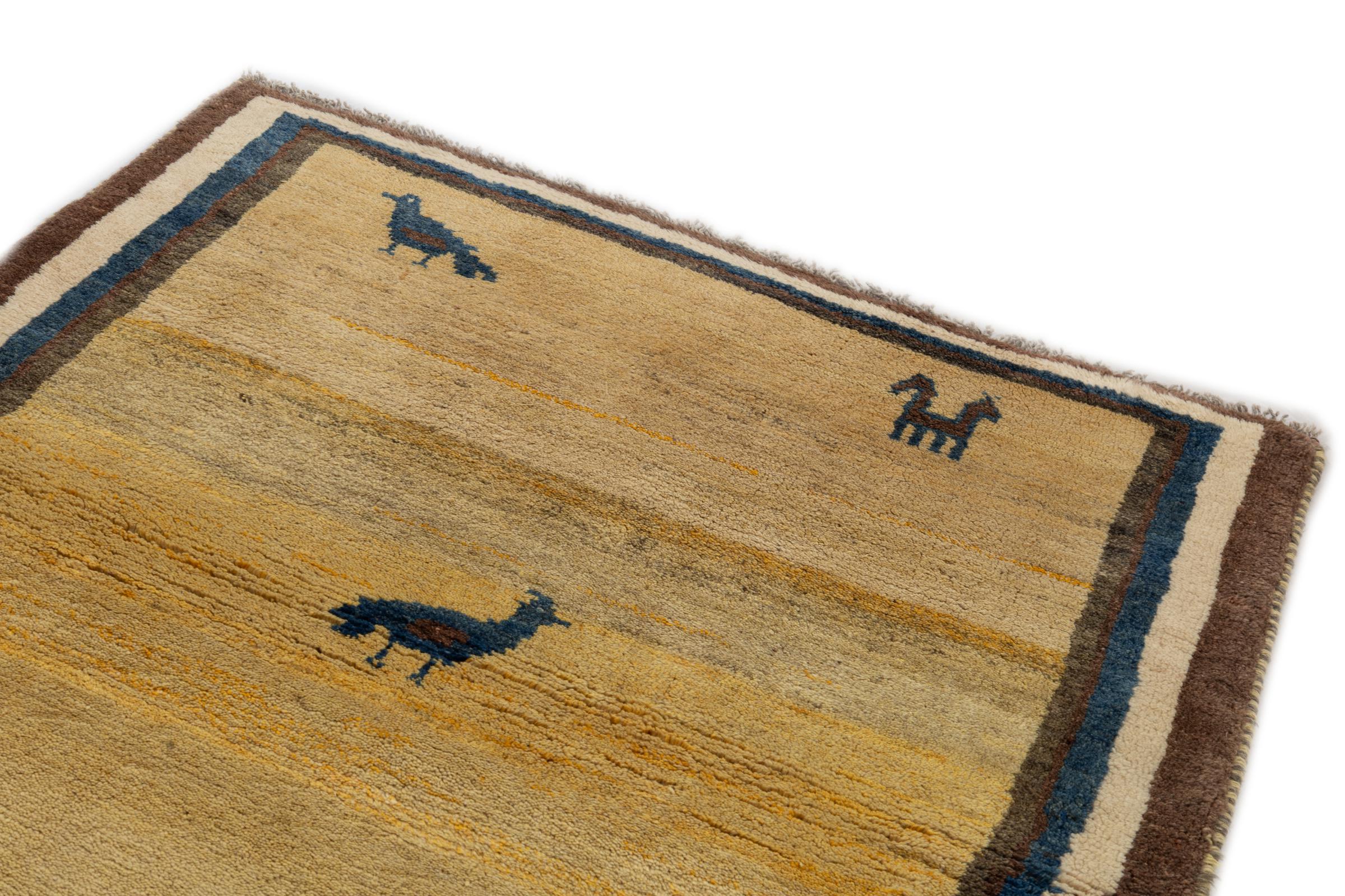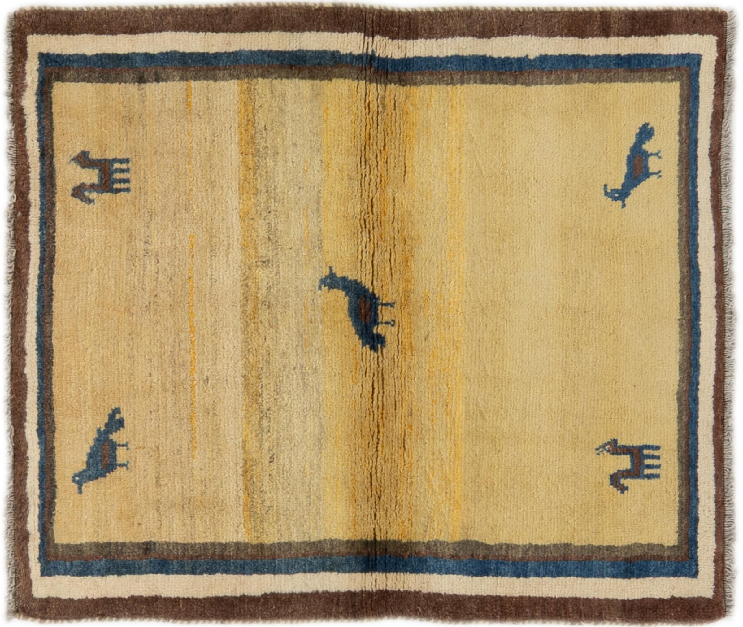Acest frumos covor este un Gabbeh persan și este unul dintre covoarele Gabbeh de cea mai înaltă calitate. Covoarele sunt înnodate de nomazi sau semi-nomazi în Iran conform meșteșugurilor tradiționale. Motivele și modelele simple sunt în mare parte inspirate din mediul imediat al nomazilor. De exemplu, cămile, copaci sau tufișuri pot fi găsite pe covoarele tradiționale. Covoarele persane Gabbeh sunt fabricate din lână de la turmele de oi crescute local. Prin urmare, lâna este în mare parte toartă manual. Fiecare dintre aceste covoare orientale întruchipează un caracter unic al culturii de secole.