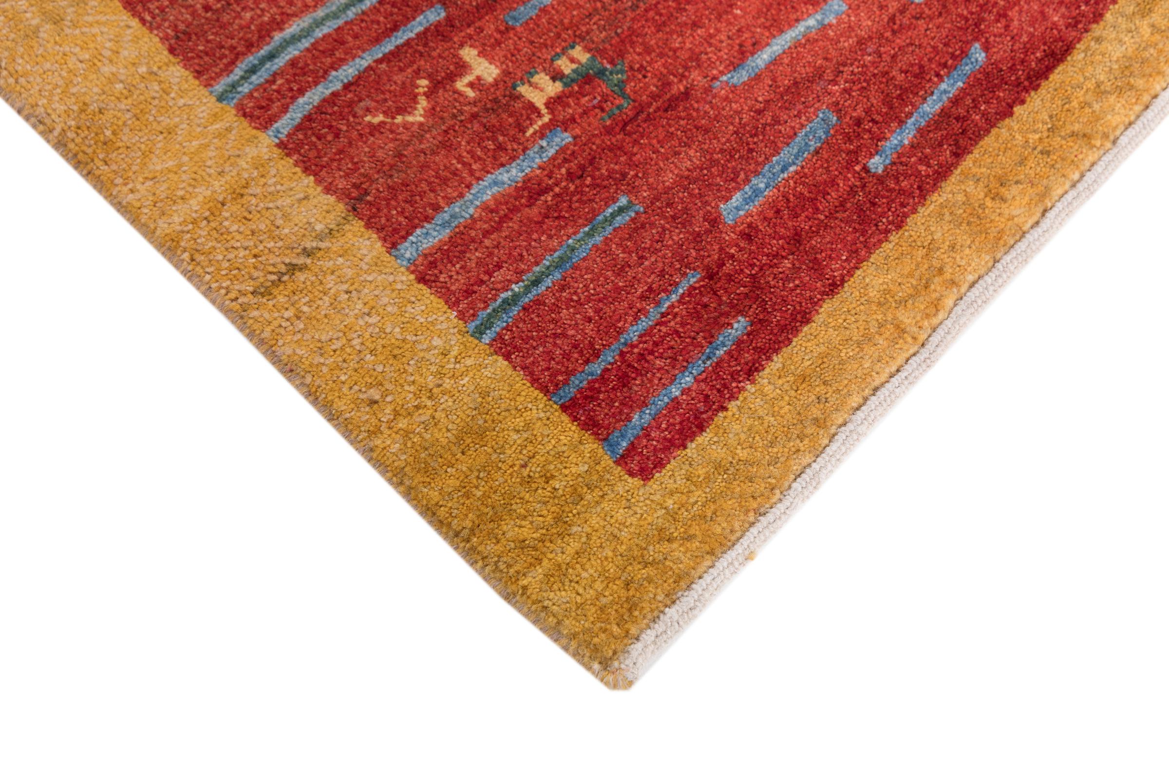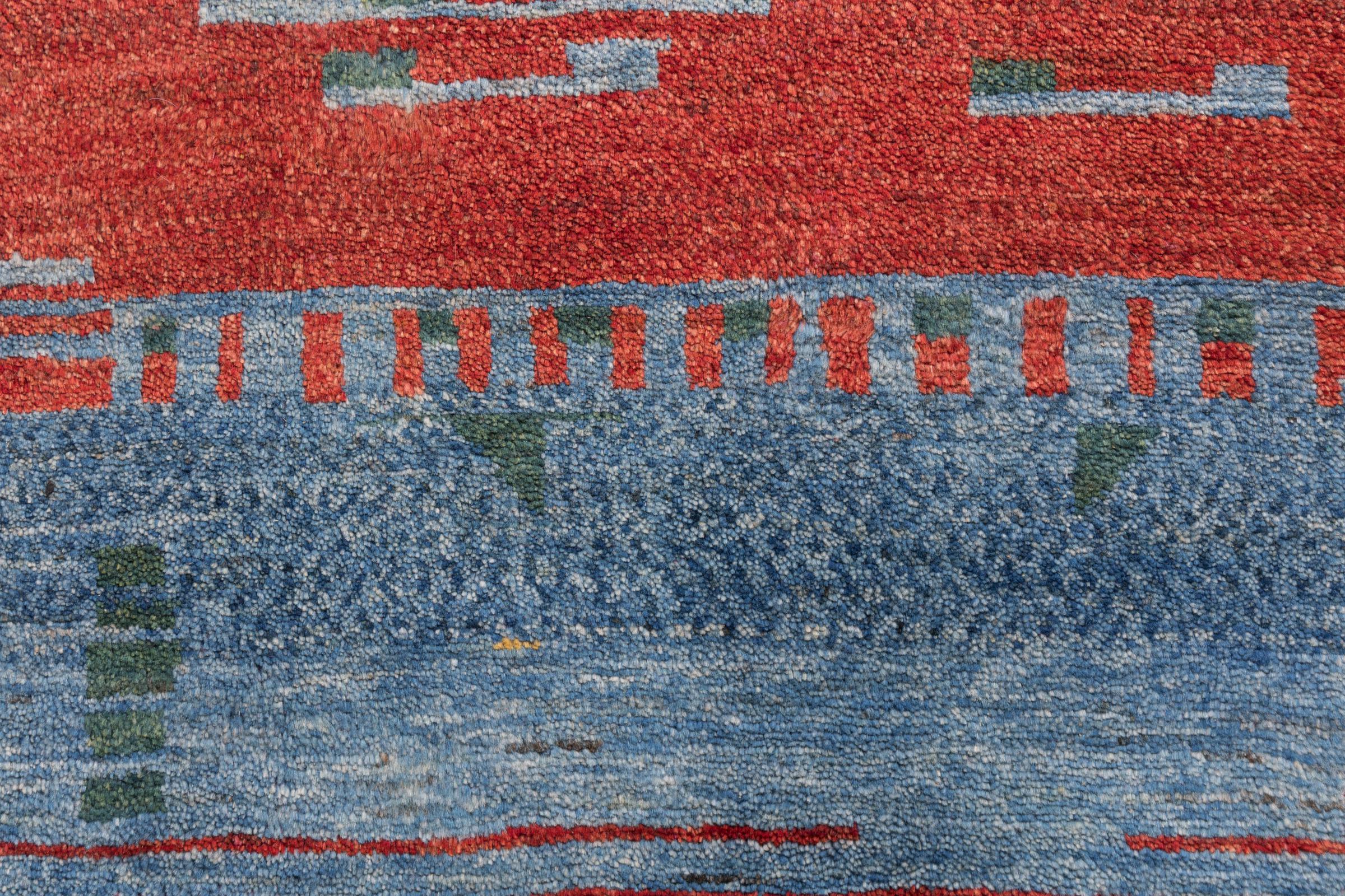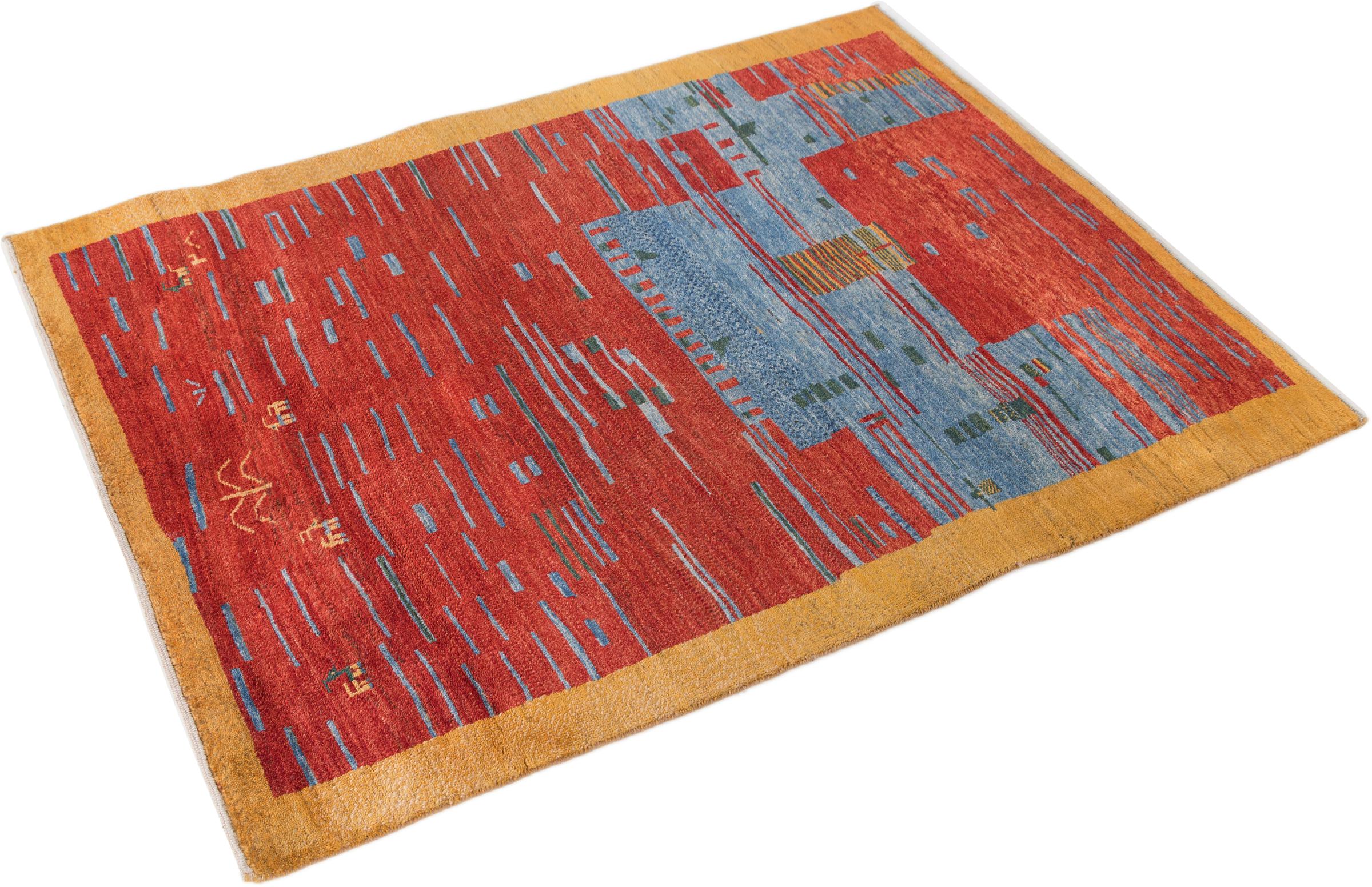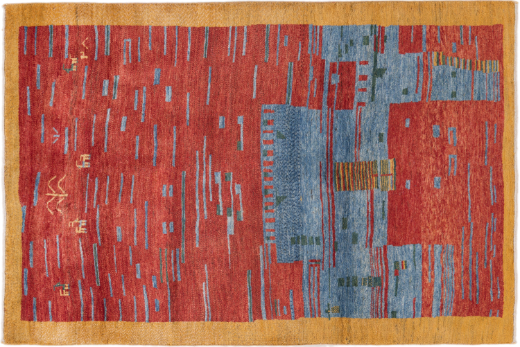 Acest frumos covor este un Gabbeh persan și este unul dintre covoarele Gabbeh de cea mai înaltă calitate. Covoarele sunt înnodate de nomazi sau semi-nomazi în Iran conform meșteșugurilor tradiționale. Motivele și modelele simple sunt în mare parte inspirate din mediul imediat al nomazilor. De exemplu, cămile, copaci sau tufișuri pot fi găsite pe covoarele tradiționale. Covoarele persane Gabbeh sunt fabricate din lână de la turmele de oi crescute local. Prin urmare, lâna este în mare parte toartă manual. Fiecare dintre aceste covoare orientale întruchipează un caracter unic al culturii de secole.