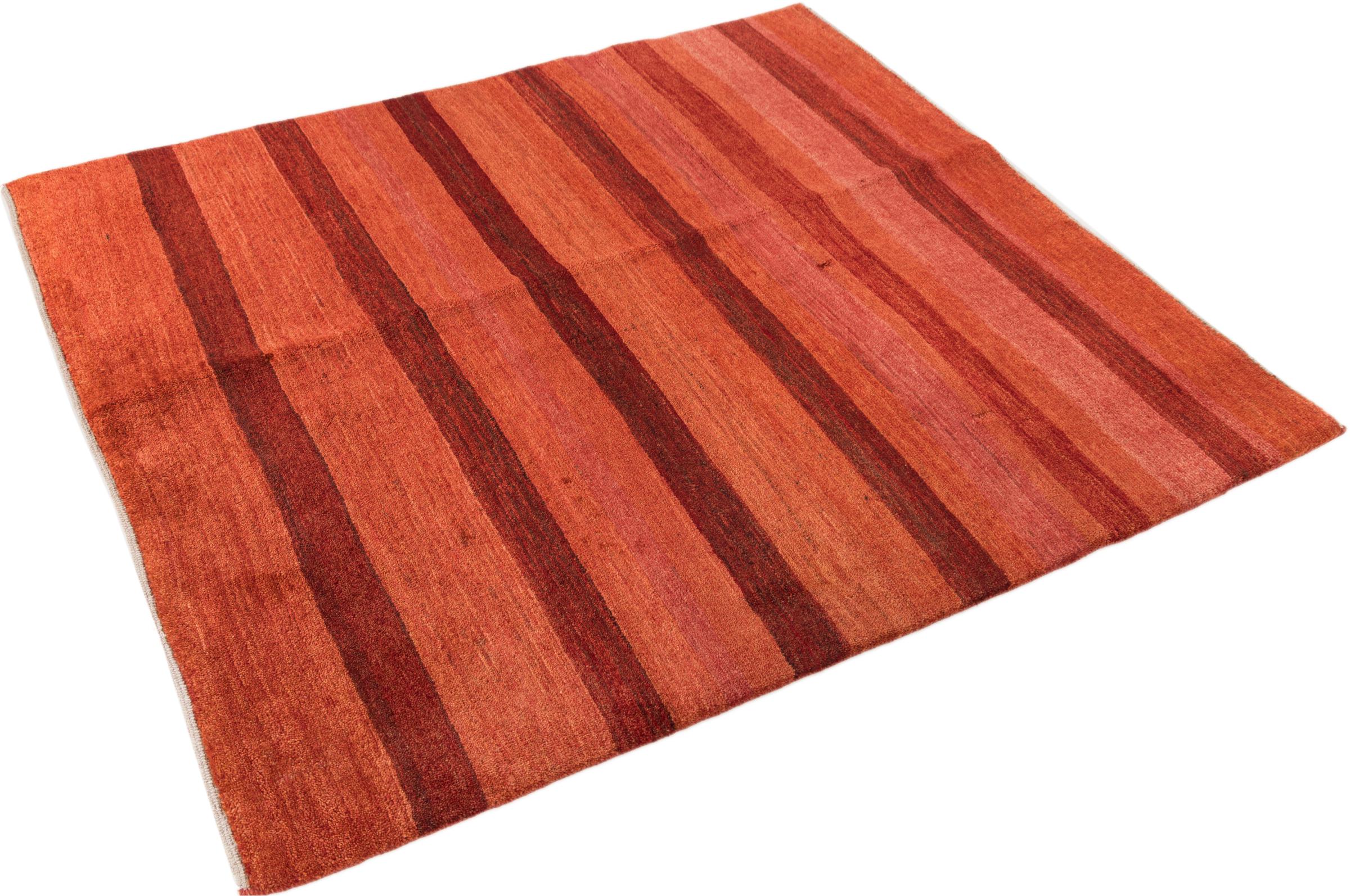 Acest frumos covor este un Gabbeh persan și este unul dintre covoarele Gabbeh de cea mai înaltă calitate. Covoarele sunt înnodate de nomazi sau semi-nomazi în Iran conform meșteșugurilor tradiționale. Motivele și modelele simple sunt în mare parte inspirate din mediul imediat al nomazilor. De exemplu, cămile, copaci sau tufișuri pot fi găsite pe covoarele tradiționale. Covoarele persane Gabbeh sunt fabricate din lână de la turmele de oi crescute local. Prin urmare, lâna este în mare parte toartă manual. Fiecare dintre aceste covoare orientale întruchipează un caracter unic al culturii de secole.