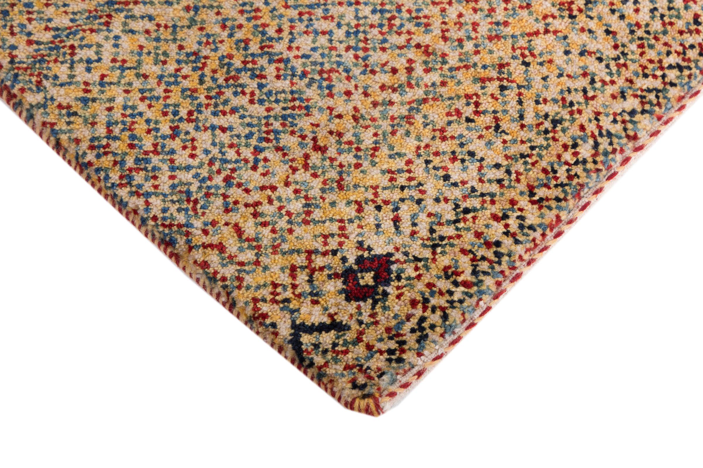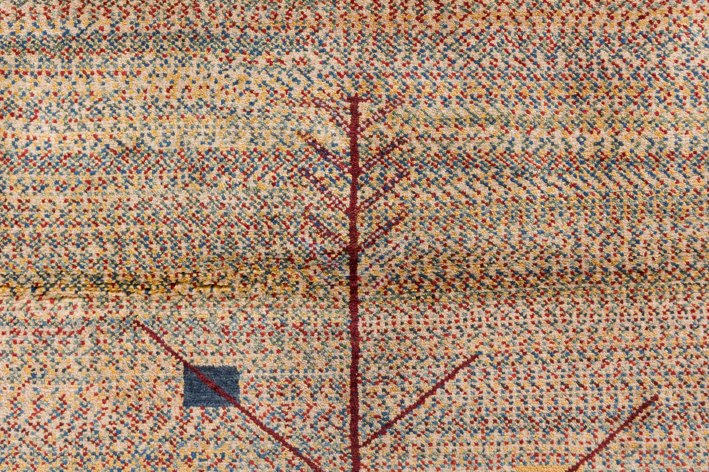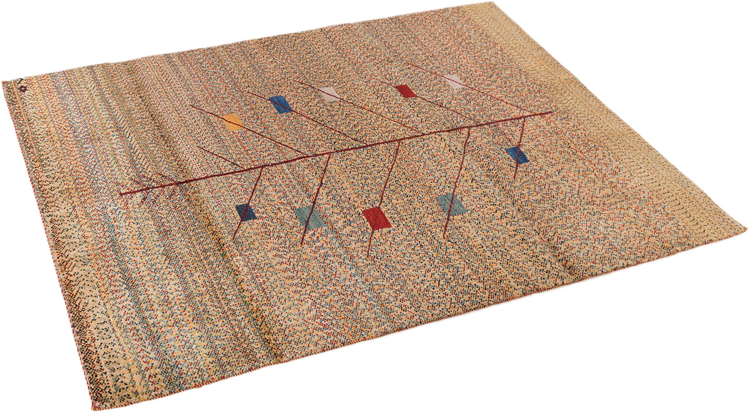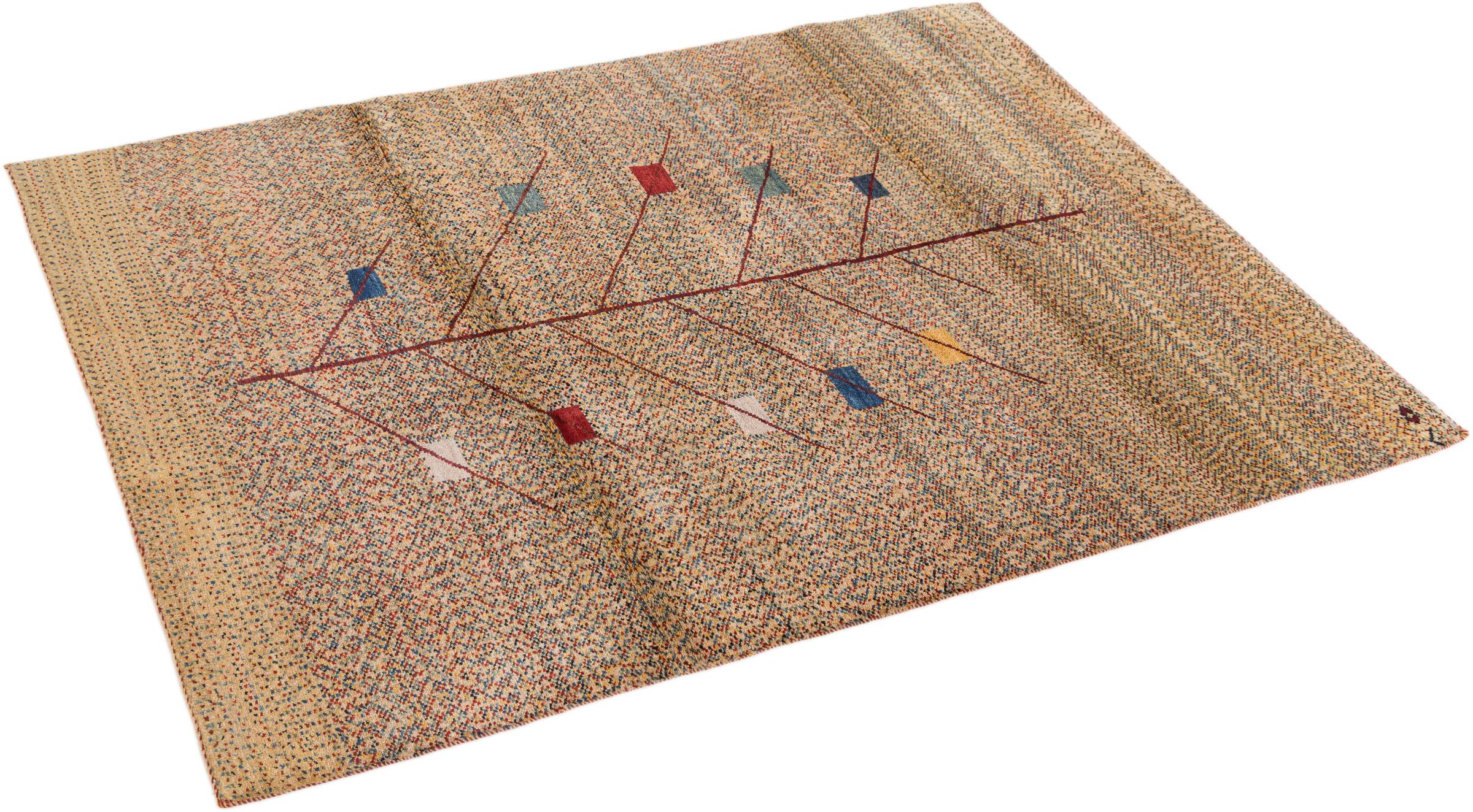 Acest frumos covor este un Gabbeh persan și este unul dintre covoarele Gabbeh de cea mai înaltă calitate. Covoarele sunt înnodate de nomazi sau semi-nomazi în Iran conform meșteșugurilor tradiționale. Motivele și modelele simple sunt în mare parte inspirate din mediul imediat al nomazilor. De exemplu, cămile, copaci sau tufișuri pot fi găsite pe covoarele tradiționale. Covoarele persane Gabbeh sunt fabricate din lână de la turmele de oi crescute local. Prin urmare, lâna este în mare parte toartă manual. Fiecare dintre aceste covoare orientale întruchipează un caracter unic al culturii de secole.