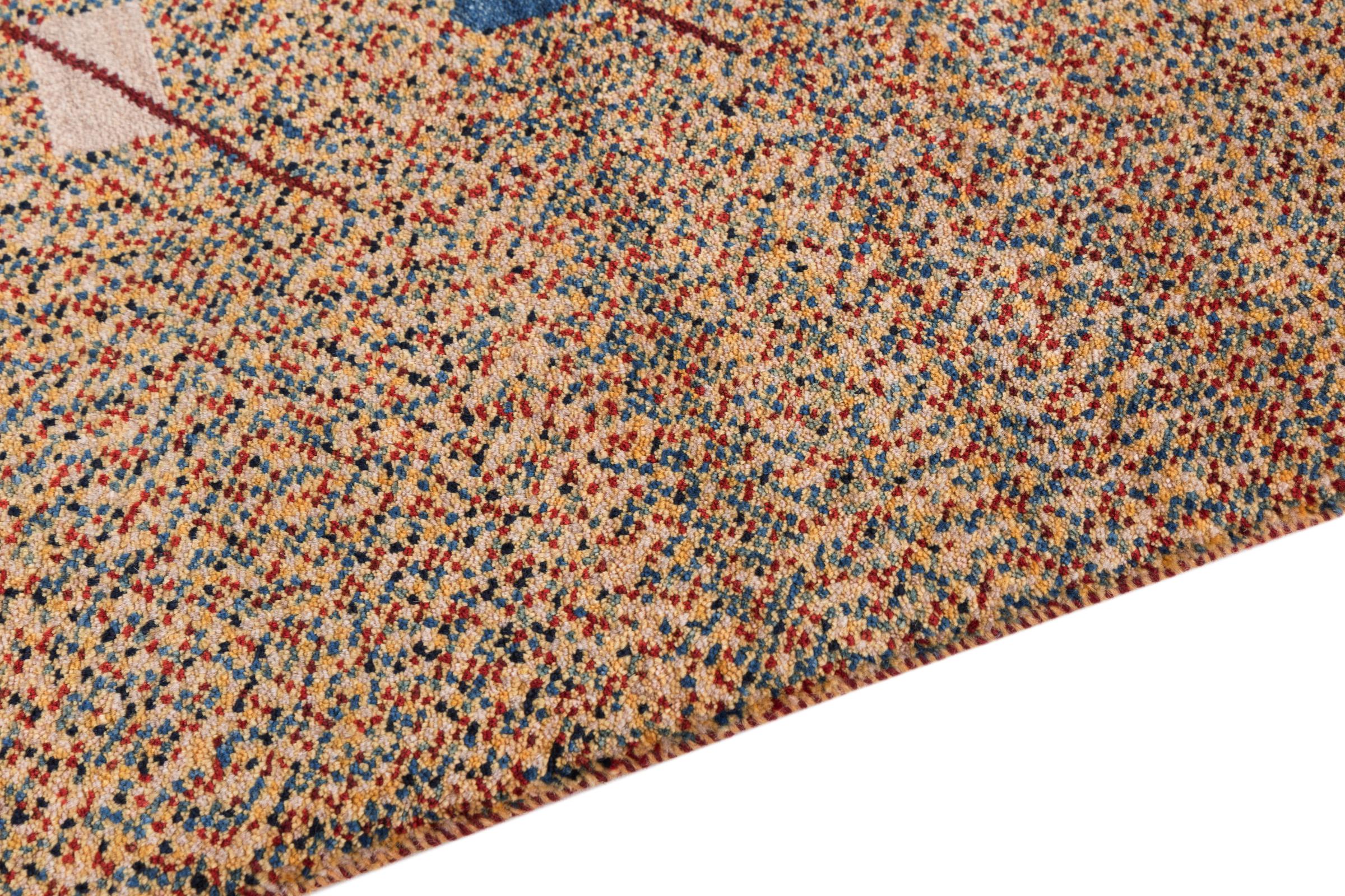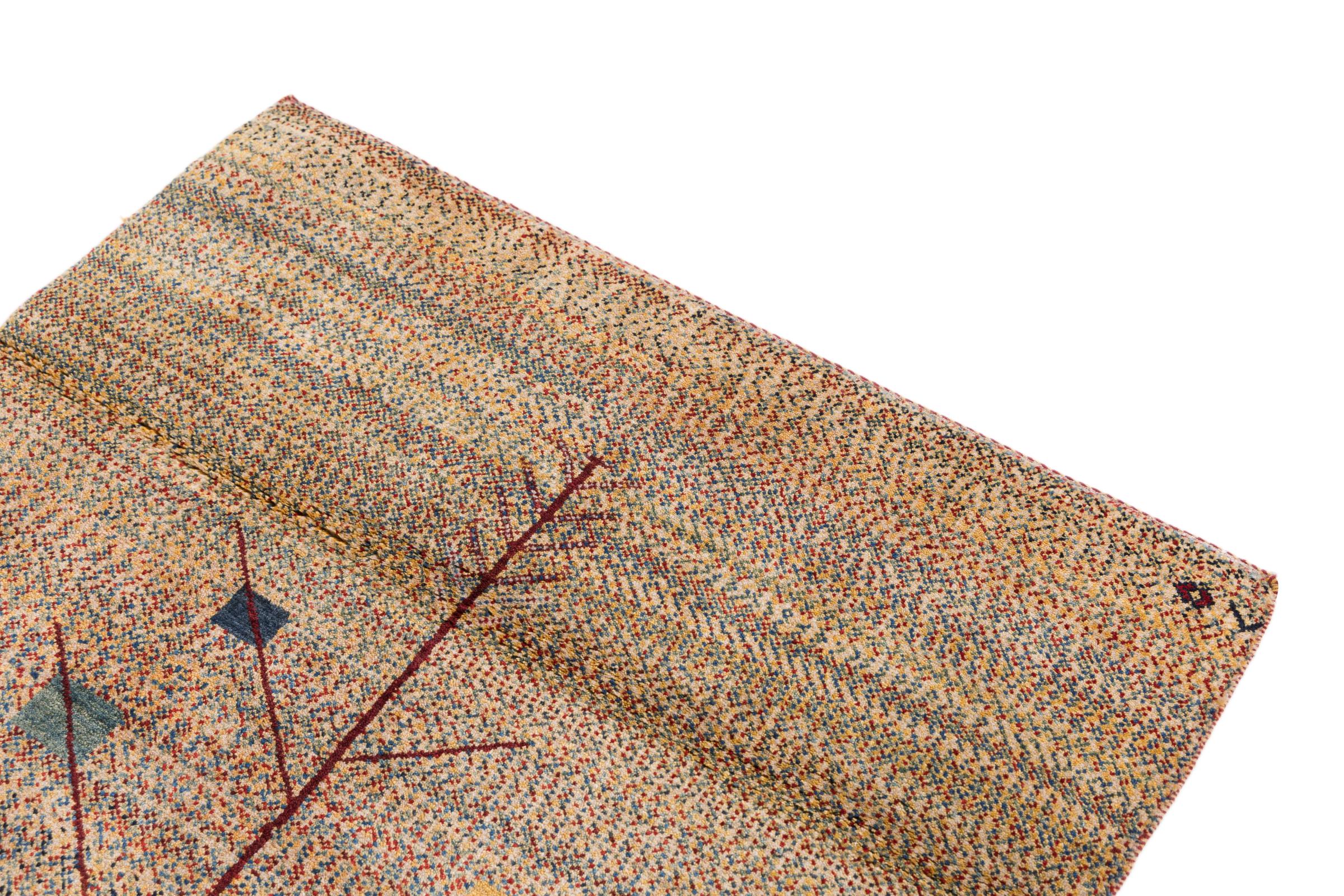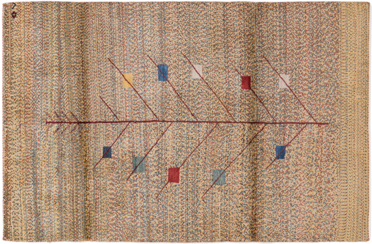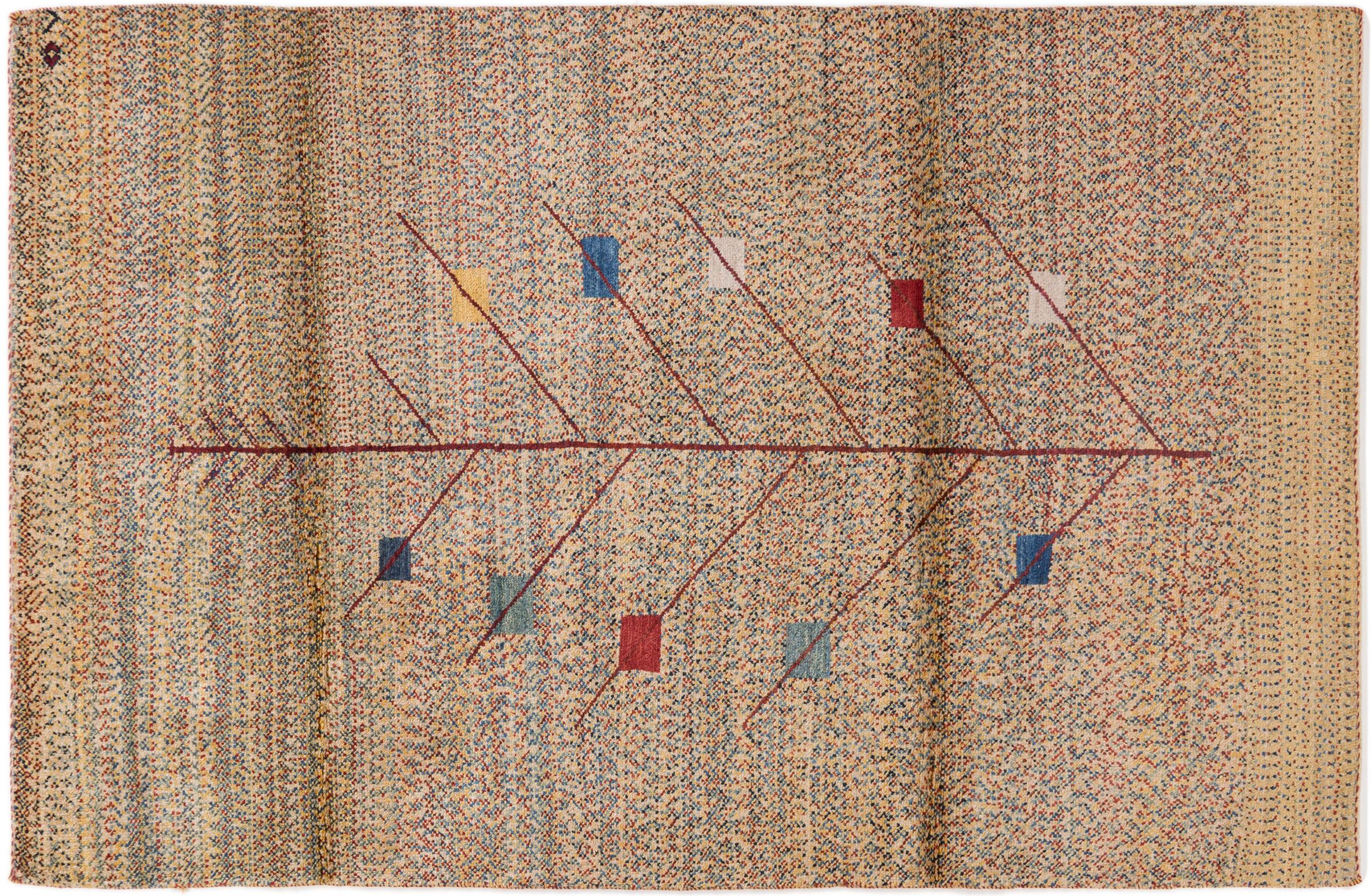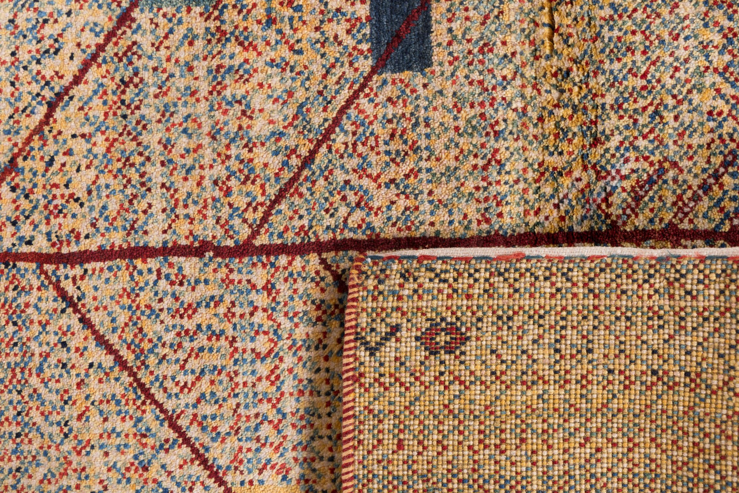 Acest frumos covor este un Gabbeh persan și este unul dintre covoarele Gabbeh de cea mai înaltă calitate. Covoarele sunt înnodate de nomazi sau semi-nomazi în Iran conform meșteșugurilor tradiționale. Motivele și modelele simple sunt în mare parte inspirate din mediul imediat al nomazilor. De exemplu, cămile, copaci sau tufișuri pot fi găsite pe covoarele tradiționale. Covoarele persane Gabbeh sunt fabricate din lână de la turmele de oi crescute local. Prin urmare, lâna este în mare parte toartă manual. Fiecare dintre aceste covoare orientale întruchipează un caracter unic al culturii de secole.