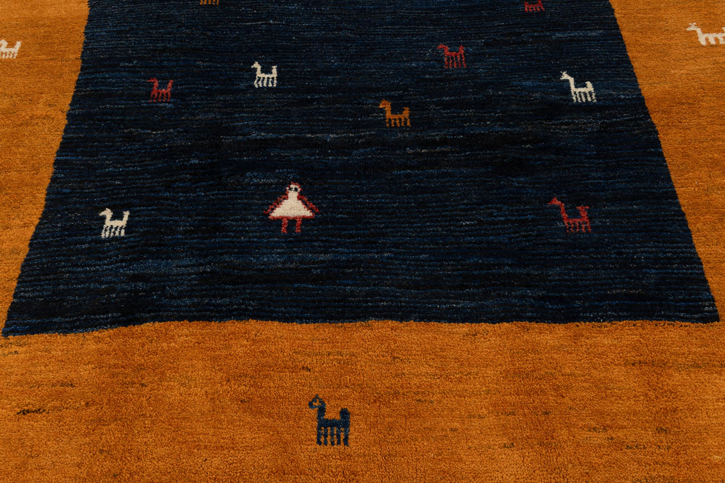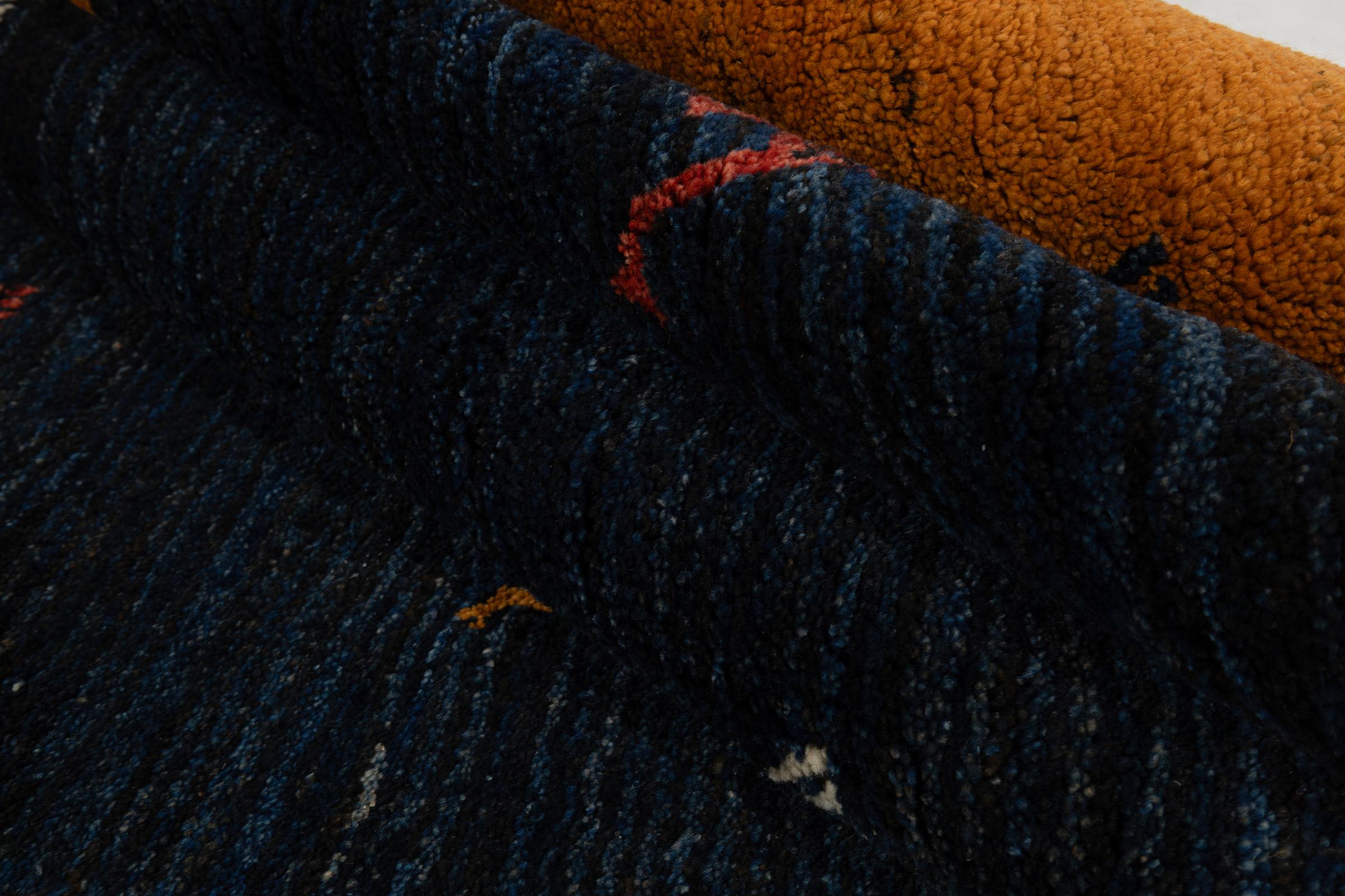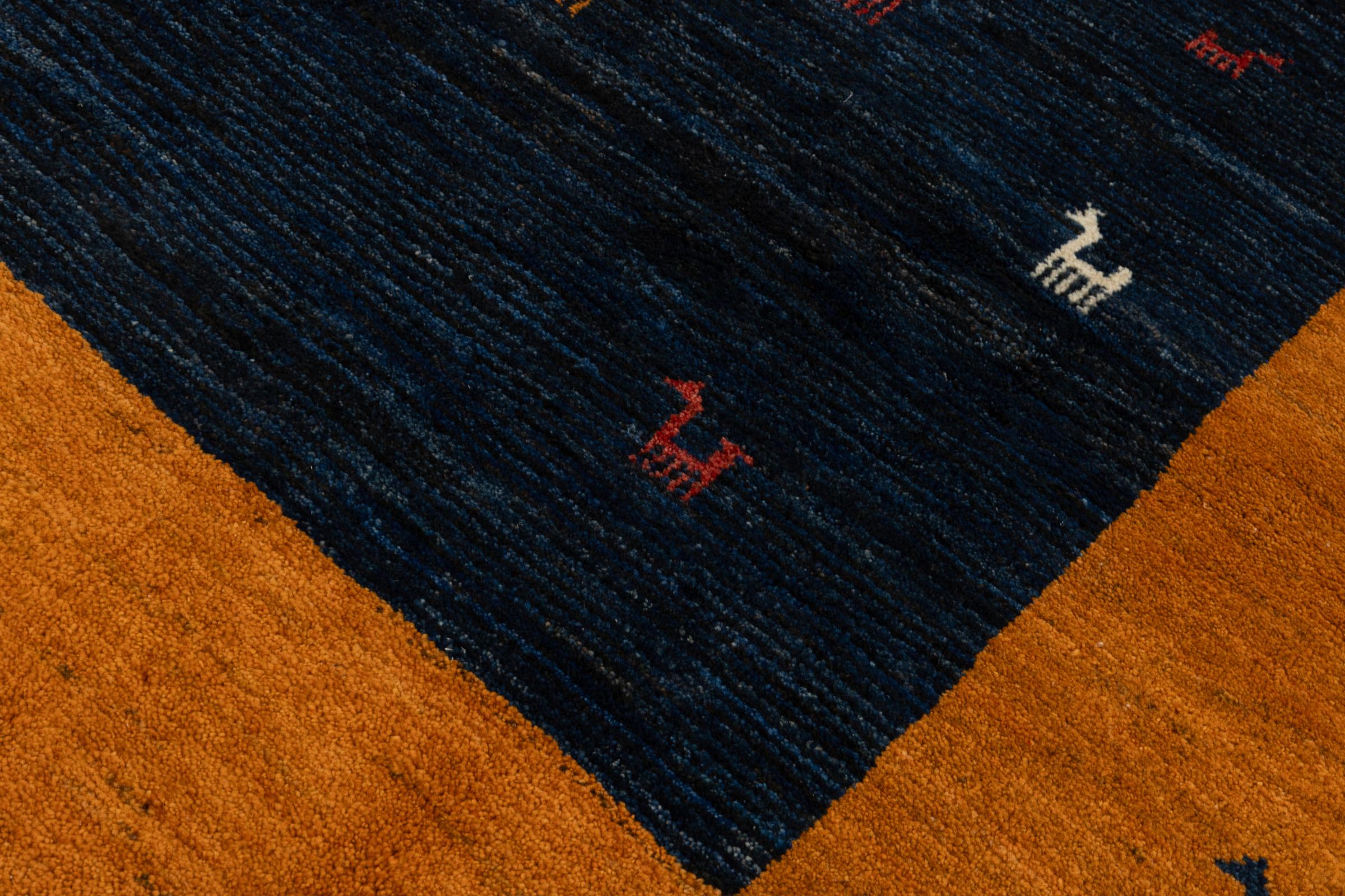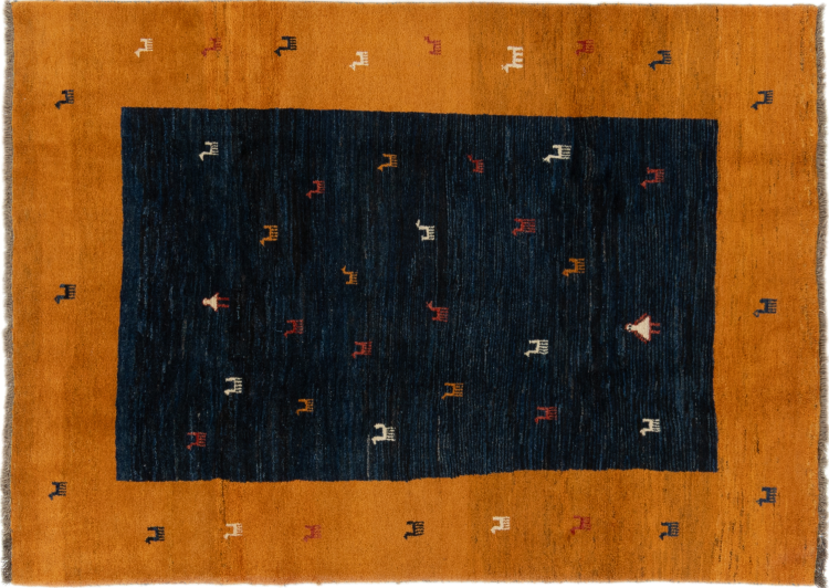Acest frumos covor este un Gabbeh persan și este unul dintre covoarele Gabbeh de cea mai înaltă calitate. Covoarele sunt înnodate de nomazi sau semi-nomazi în Iran conform meșteșugurilor tradiționale. Motivele și modelele simple sunt în mare parte inspirate din mediul imediat al nomazilor. De exemplu, cămile, copaci sau tufișuri pot fi găsite pe covoarele tradiționale. Covoarele persane Gabbeh sunt fabricate din lână de la turmele de oi crescute local. Prin urmare, lâna este în mare parte toartă manual. Fiecare dintre aceste covoare orientale întruchipează un caracter unic al culturii de secole.