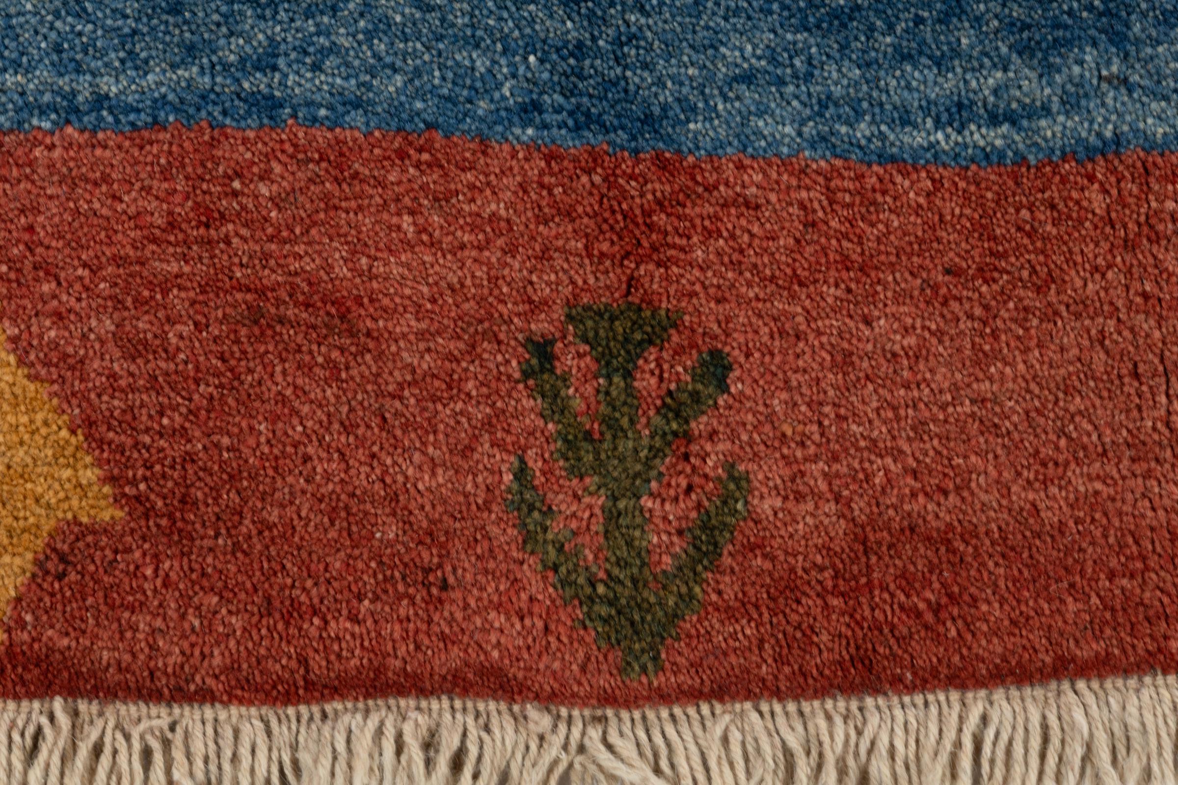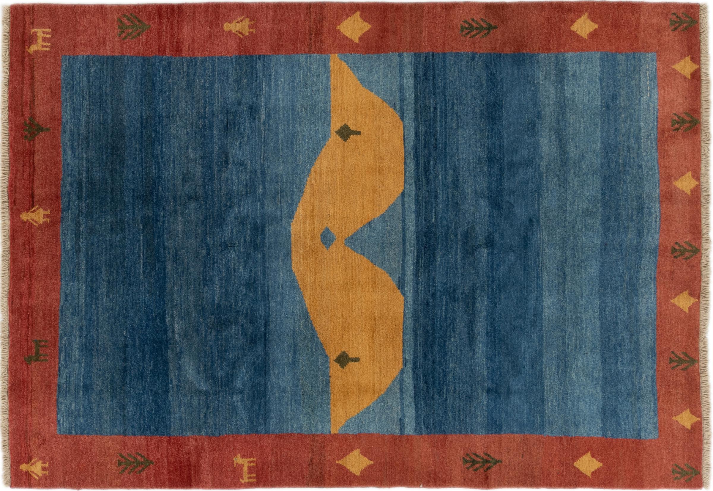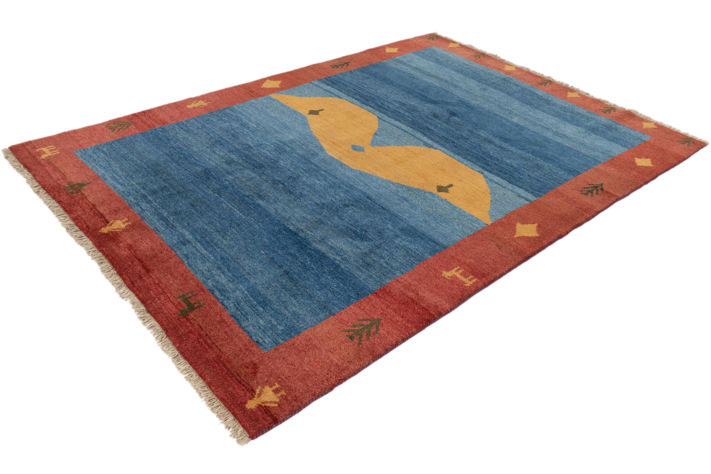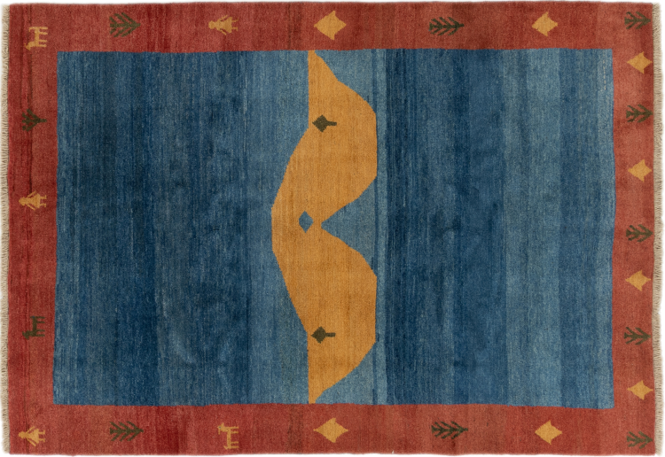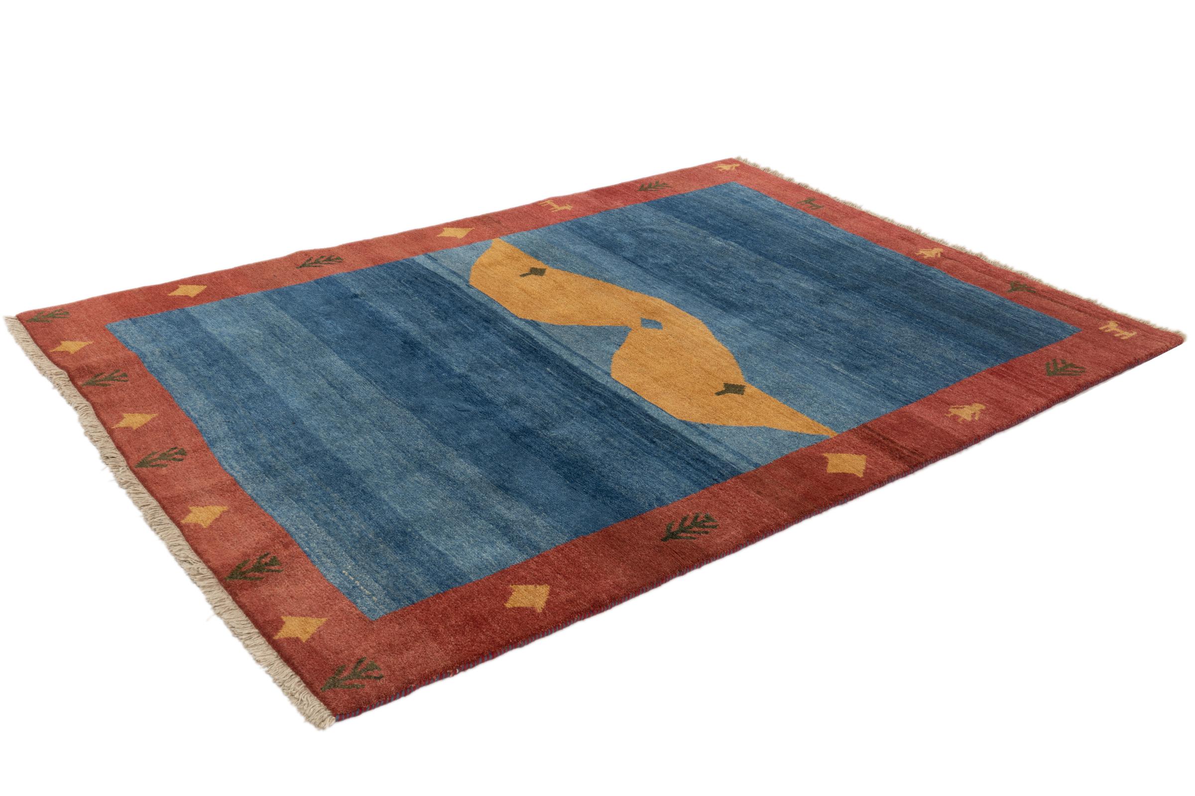 Acest frumos covor este un Gabbeh persan și este unul dintre covoarele Gabbeh de cea mai înaltă calitate. Covoarele sunt înnodate de nomazi sau semi-nomazi în Iran conform meșteșugurilor tradiționale. Motivele și modelele simple sunt în mare parte inspirate din mediul imediat al nomazilor. De exemplu, cămile, copaci sau tufișuri pot fi găsite pe covoarele tradiționale. Covoarele persane Gabbeh sunt fabricate din lână de la turmele de oi crescute local. Prin urmare, lâna este în mare parte toartă manual. Fiecare dintre aceste covoare orientale întruchipează un caracter unic al culturii de secole.
