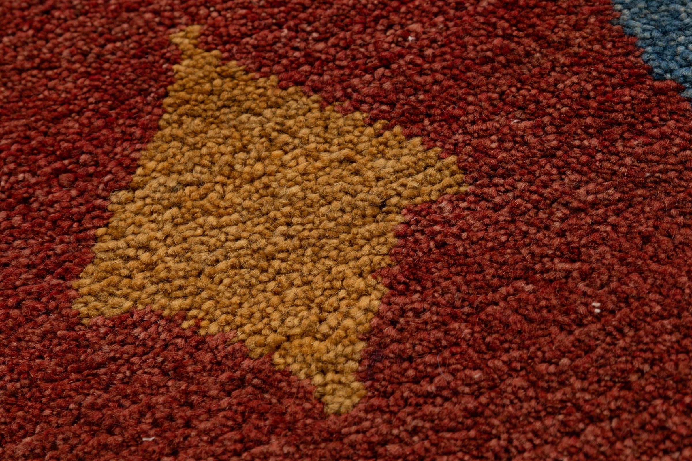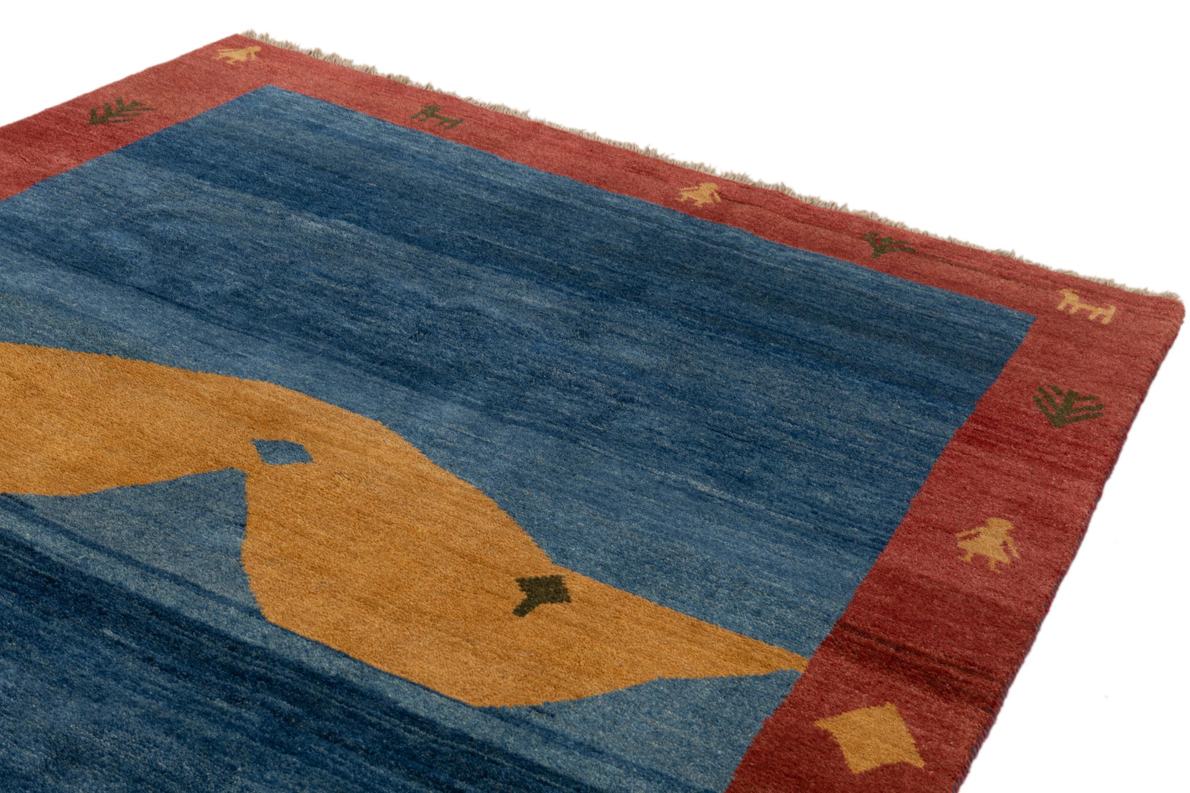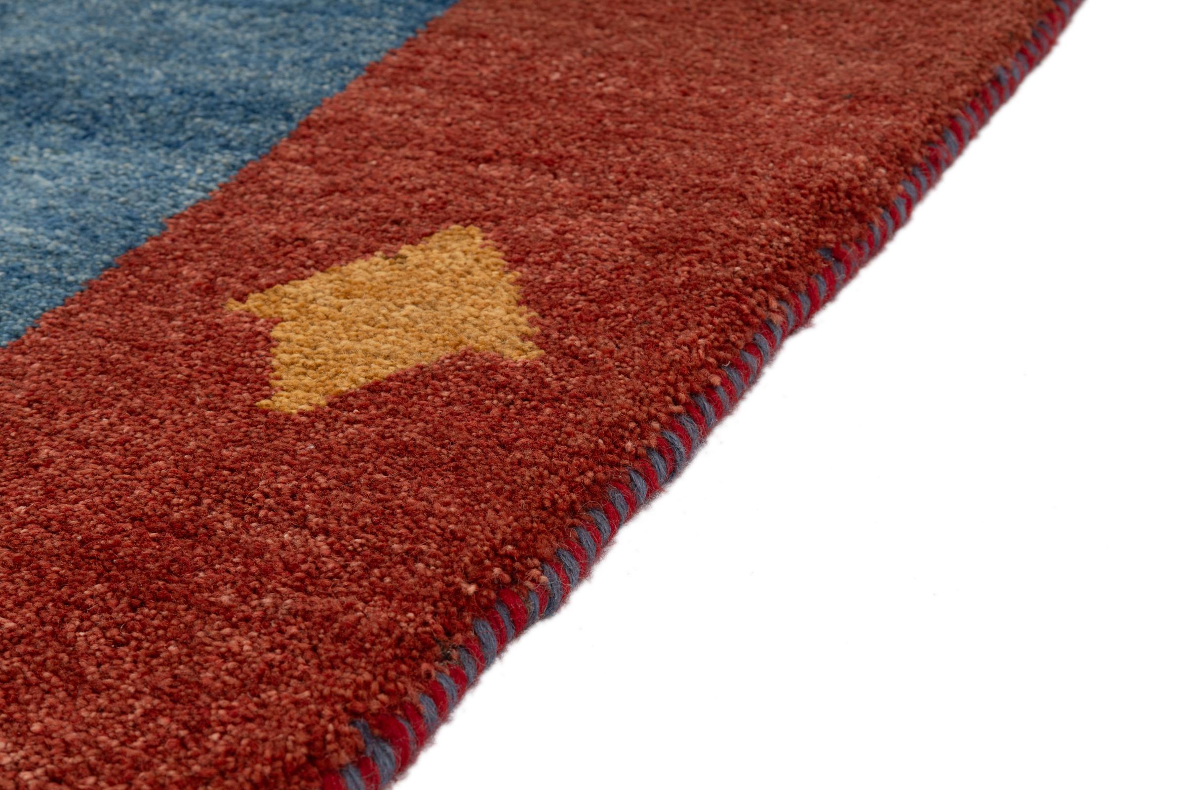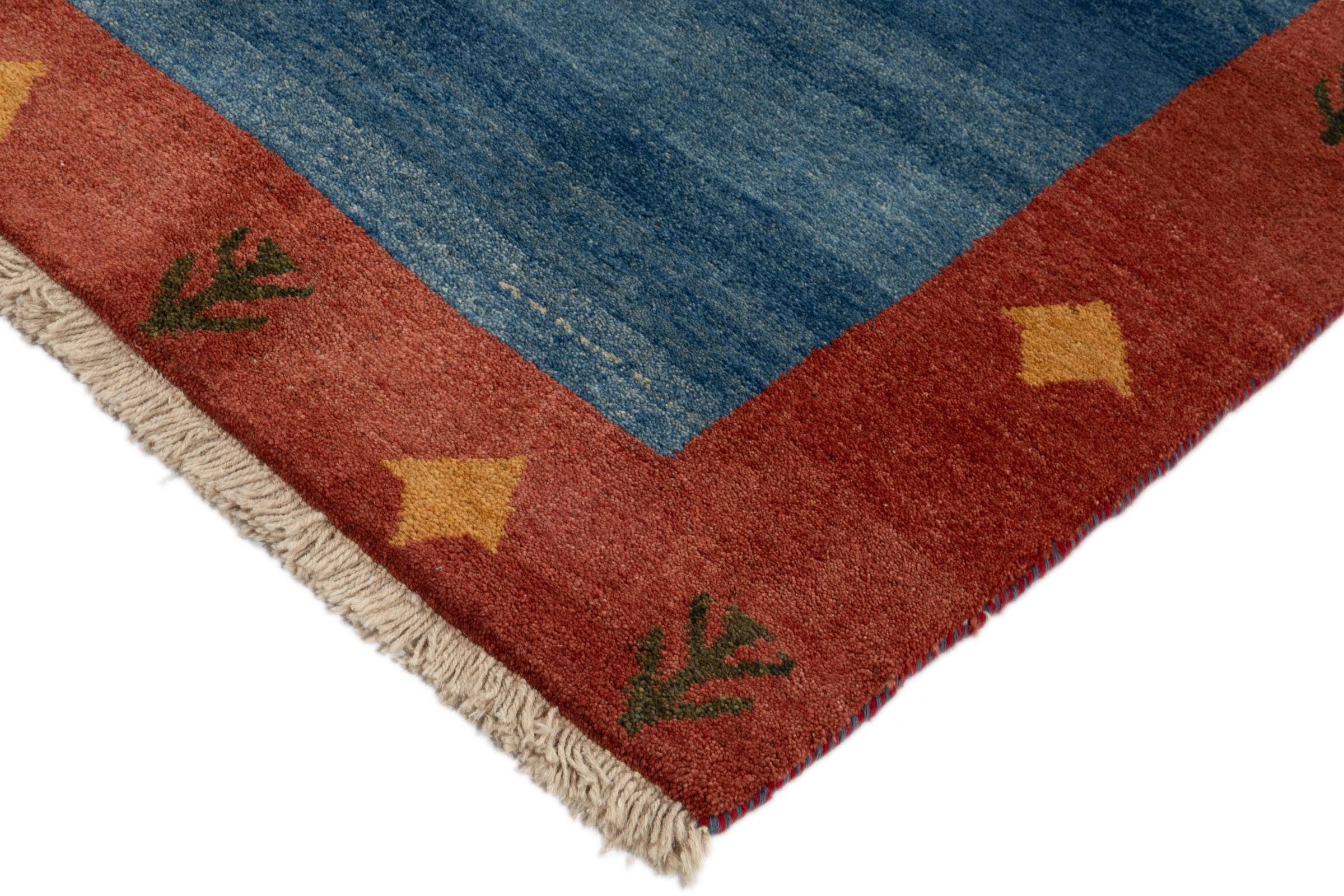 Acest frumos covor este un Gabbeh persan și este unul dintre covoarele Gabbeh de cea mai înaltă calitate. Covoarele sunt înnodate de nomazi sau semi-nomazi în Iran conform meșteșugurilor tradiționale. Motivele și modelele simple sunt în mare parte inspirate din mediul imediat al nomazilor. De exemplu, cămile, copaci sau tufișuri pot fi găsite pe covoarele tradiționale. Covoarele persane Gabbeh sunt fabricate din lână de la turmele de oi crescute local. Prin urmare, lâna este în mare parte toartă manual. Fiecare dintre aceste covoare orientale întruchipează un caracter unic al culturii de secole.