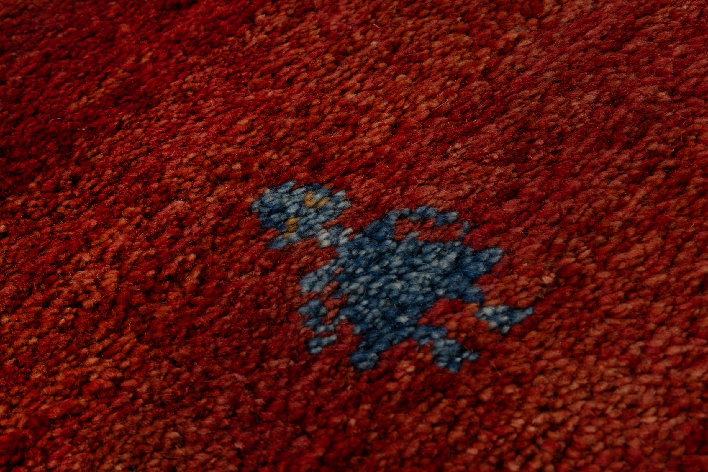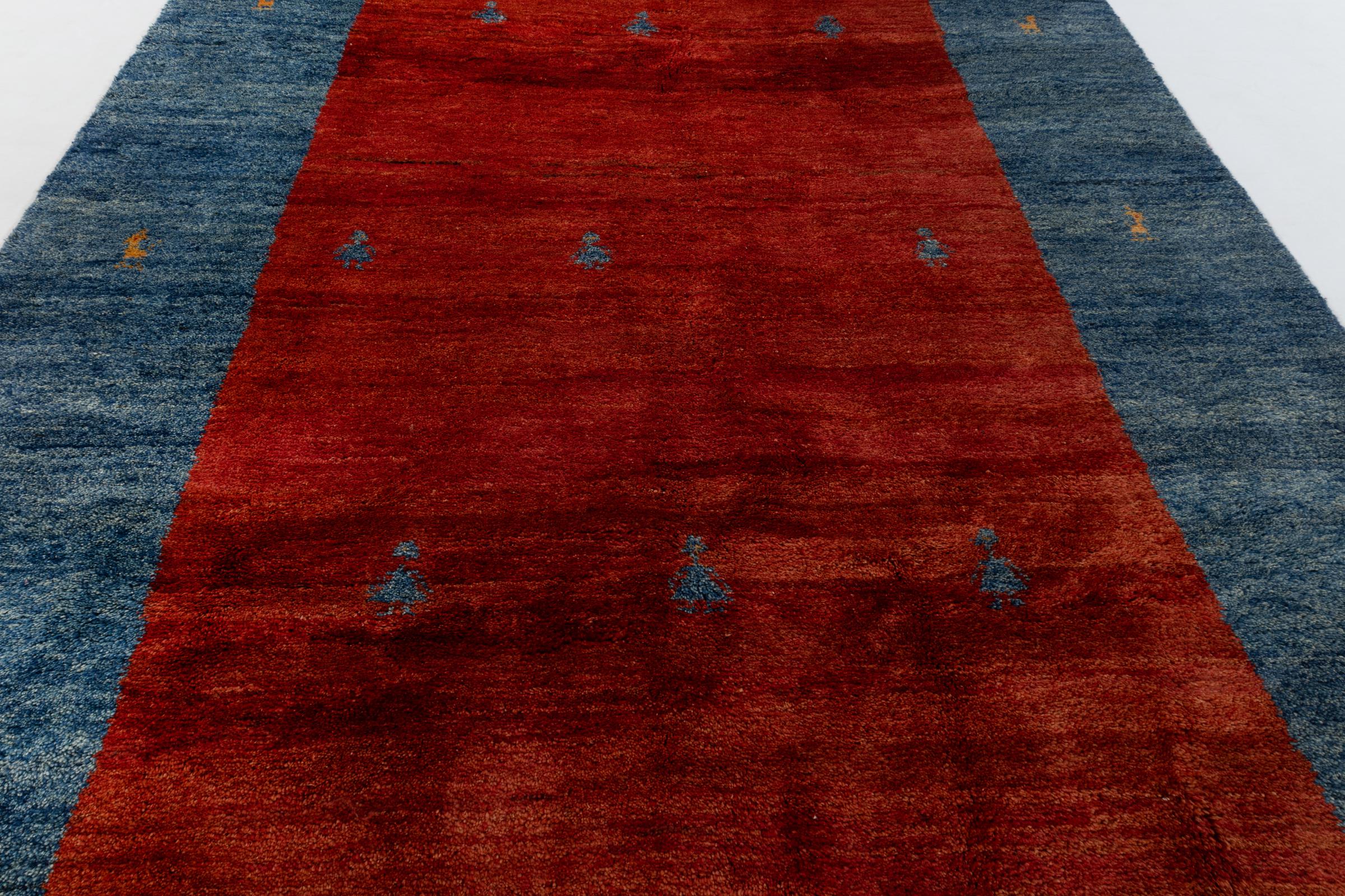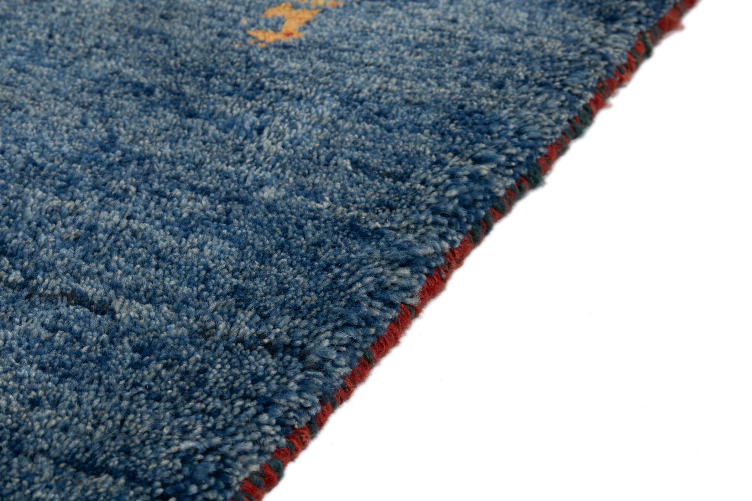 Acest frumos covor este un Gabbeh persan și este unul dintre covoarele Gabbeh de cea mai înaltă calitate. Covoarele sunt înnodate de nomazi sau semi-nomazi în Iran conform meșteșugurilor tradiționale. Motivele și modelele simple sunt în mare parte inspirate din mediul imediat al nomazilor. De exemplu, cămile, copaci sau tufișuri pot fi găsite pe covoarele tradiționale. Covoarele persane Gabbeh sunt fabricate din lână de la turmele de oi crescute local. Prin urmare, lâna este în mare parte toartă manual. Fiecare dintre aceste covoare orientale întruchipează un caracter unic al culturii de secole.