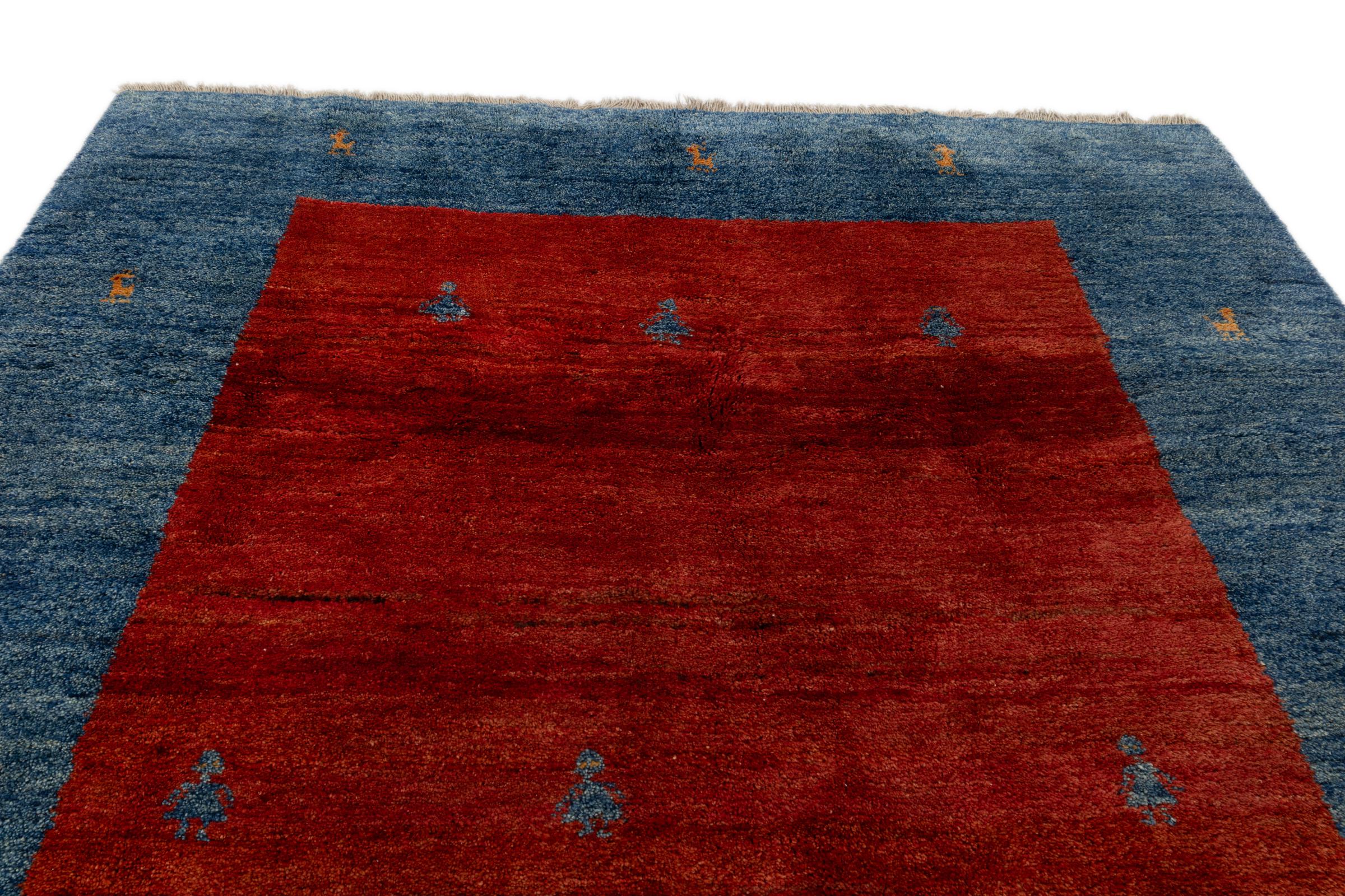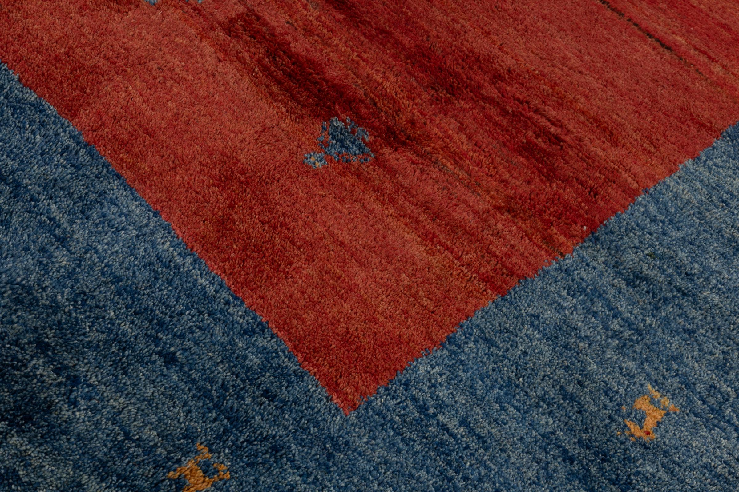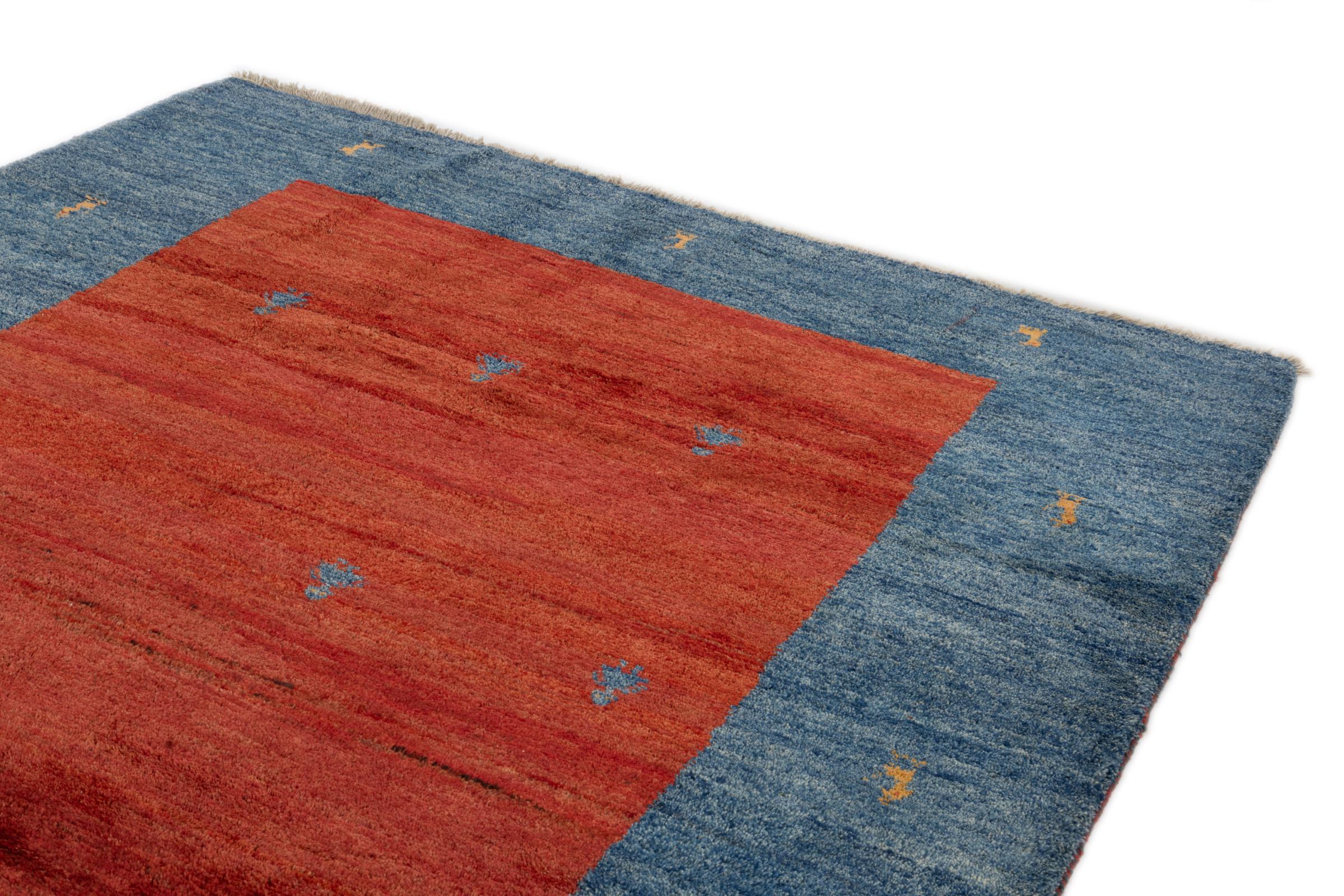 Acest frumos covor este un Gabbeh persan și este unul dintre covoarele Gabbeh de cea mai înaltă calitate. Covoarele sunt înnodate de nomazi sau semi-nomazi în Iran conform meșteșugurilor tradiționale. Motivele și modelele simple sunt în mare parte inspirate din mediul imediat al nomazilor. De exemplu, cămile, copaci sau tufișuri pot fi găsite pe covoarele tradiționale. Covoarele persane Gabbeh sunt fabricate din lână de la turmele de oi crescute local. Prin urmare, lâna este în mare parte toartă manual. Fiecare dintre aceste covoare orientale întruchipează un caracter unic al culturii de secole.