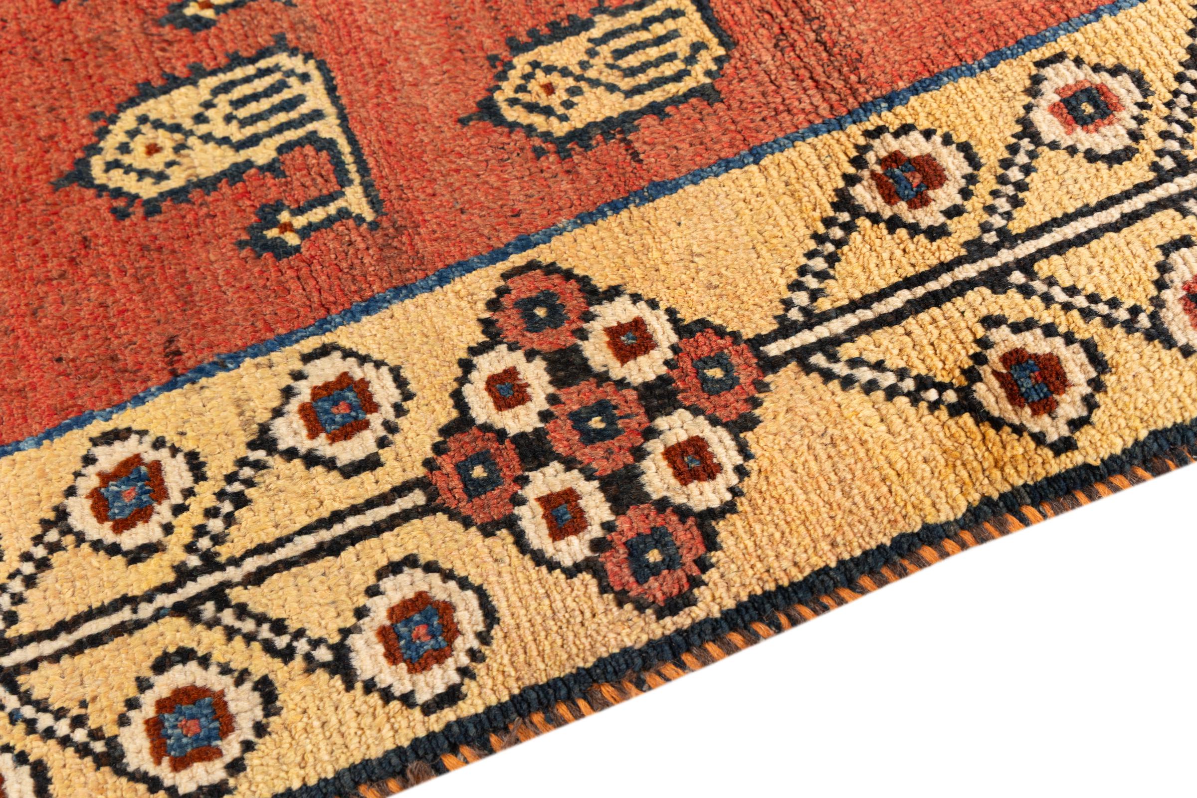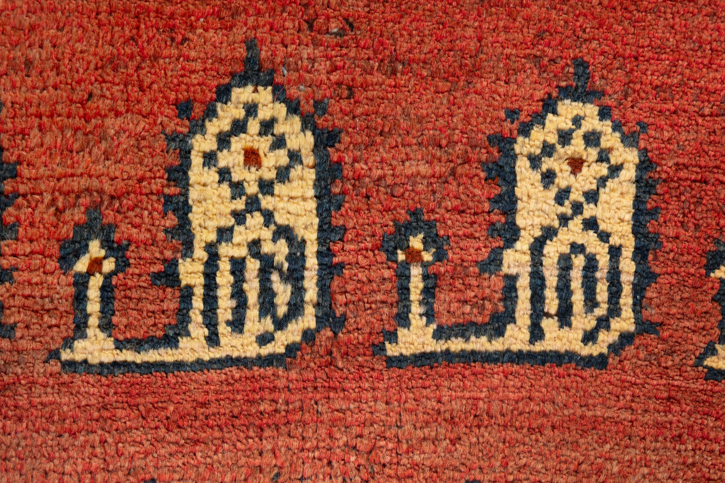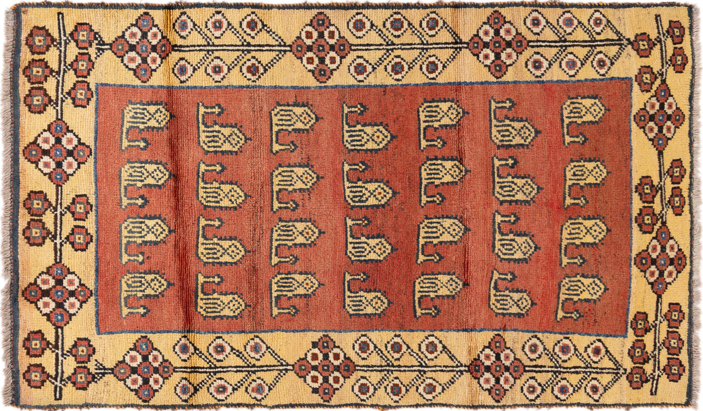 Acest frumos covor este un Gabbeh persan și este unul dintre covoarele Gabbeh de cea mai înaltă calitate. Covoarele sunt înnodate de nomazi sau semi-nomazi în Iran conform meșteșugurilor tradiționale. Motivele și modelele simple sunt în mare parte inspirate din mediul imediat al nomazilor. De exemplu, cămile, copaci sau tufișuri pot fi găsite pe covoarele tradiționale. Covoarele persane Gabbeh sunt fabricate din lână de la turmele de oi crescute local. Prin urmare, lâna este în mare parte toartă manual. Fiecare dintre aceste covoare orientale întruchipează un caracter unic al culturii de secole.