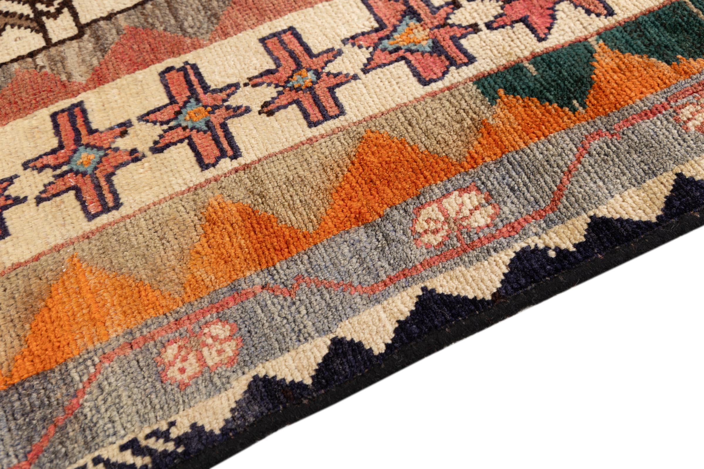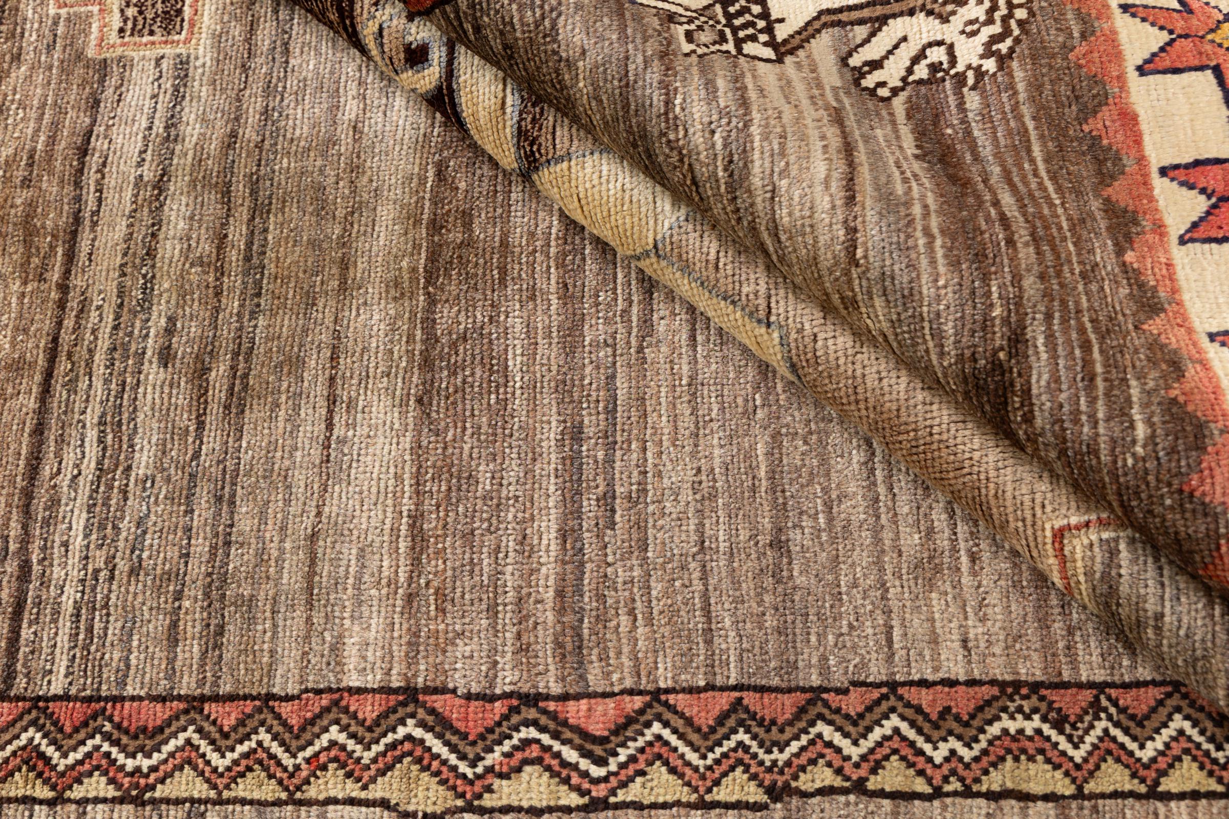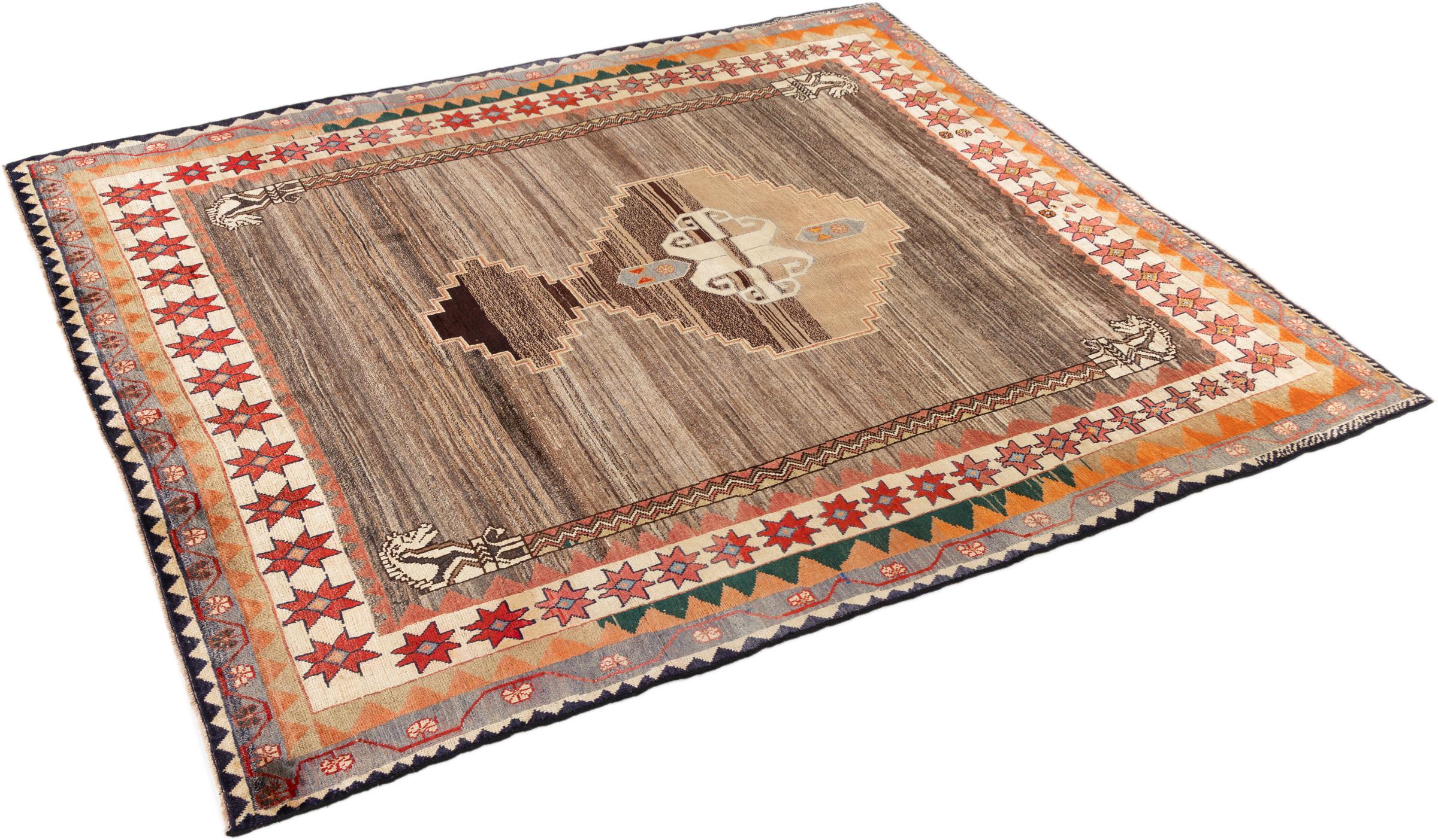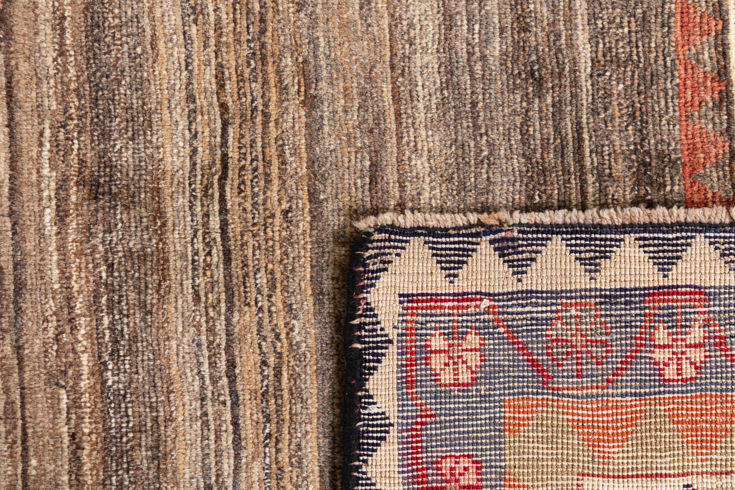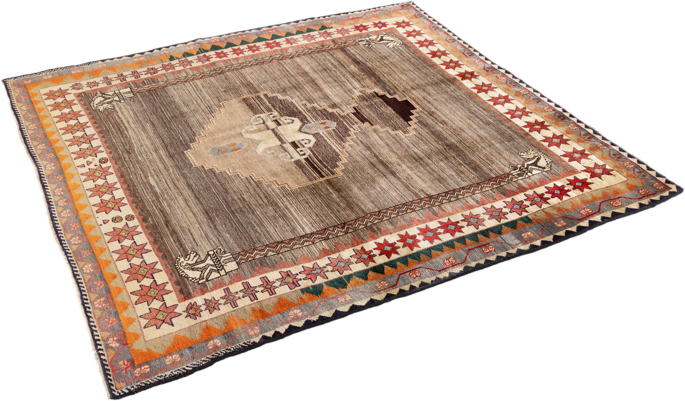 Acest frumos covor este un Gabbeh persan și este unul dintre covoarele Gabbeh de cea mai înaltă calitate. Covoarele sunt înnodate de nomazi sau semi-nomazi în Iran conform meșteșugurilor tradiționale. Motivele și modelele simple sunt în mare parte inspirate din mediul imediat al nomazilor. De exemplu, cămile, copaci sau tufișuri pot fi găsite pe covoarele tradiționale. Covoarele persane Gabbeh sunt fabricate din lână de la turmele de oi crescute local. Prin urmare, lâna este în mare parte toartă manual. Fiecare dintre aceste covoare orientale întruchipează un caracter unic al culturii de secole.