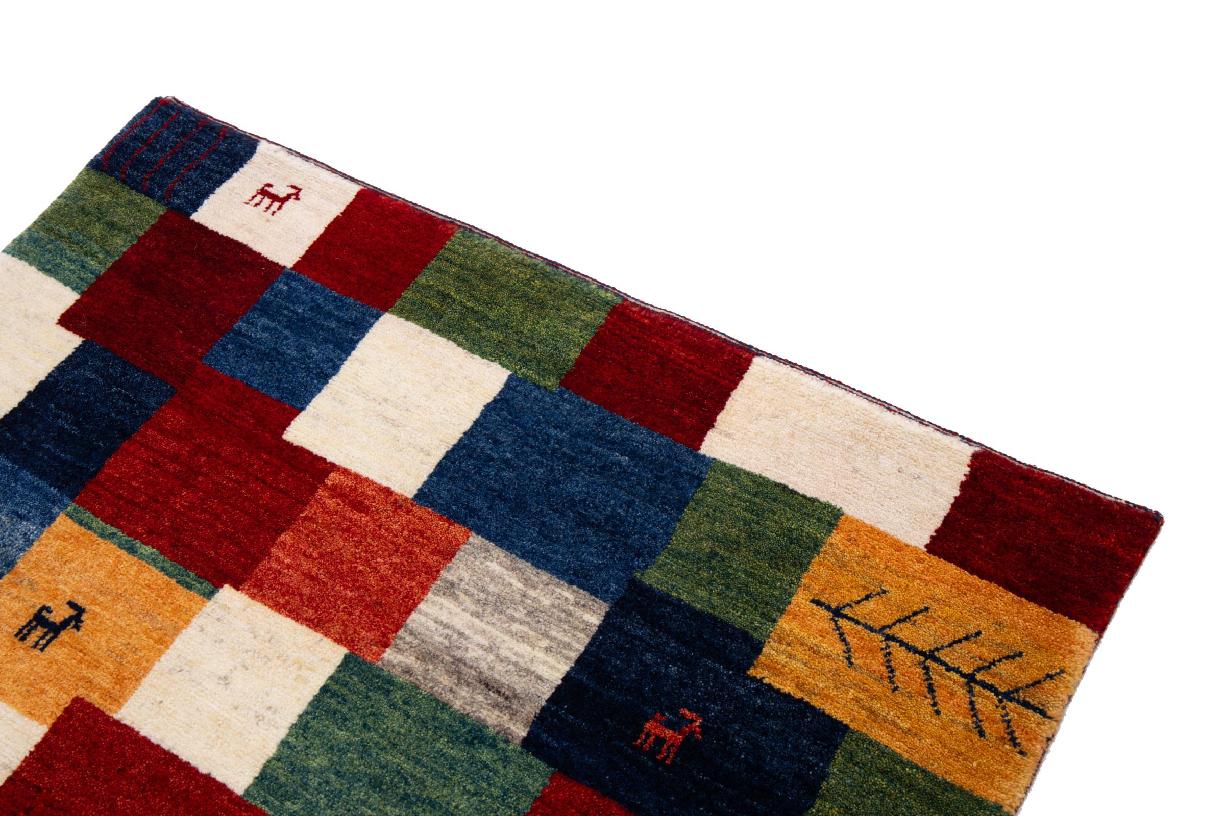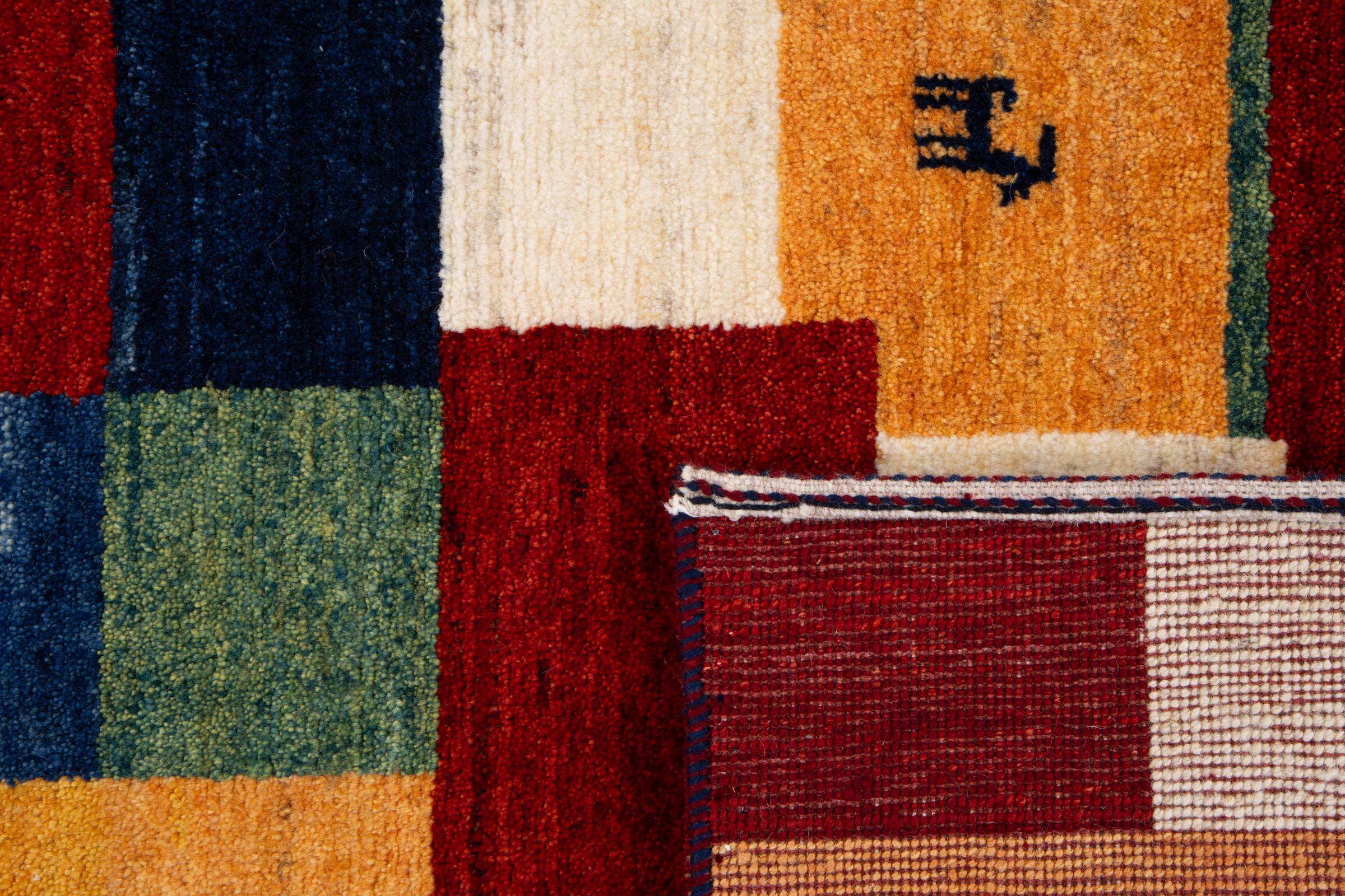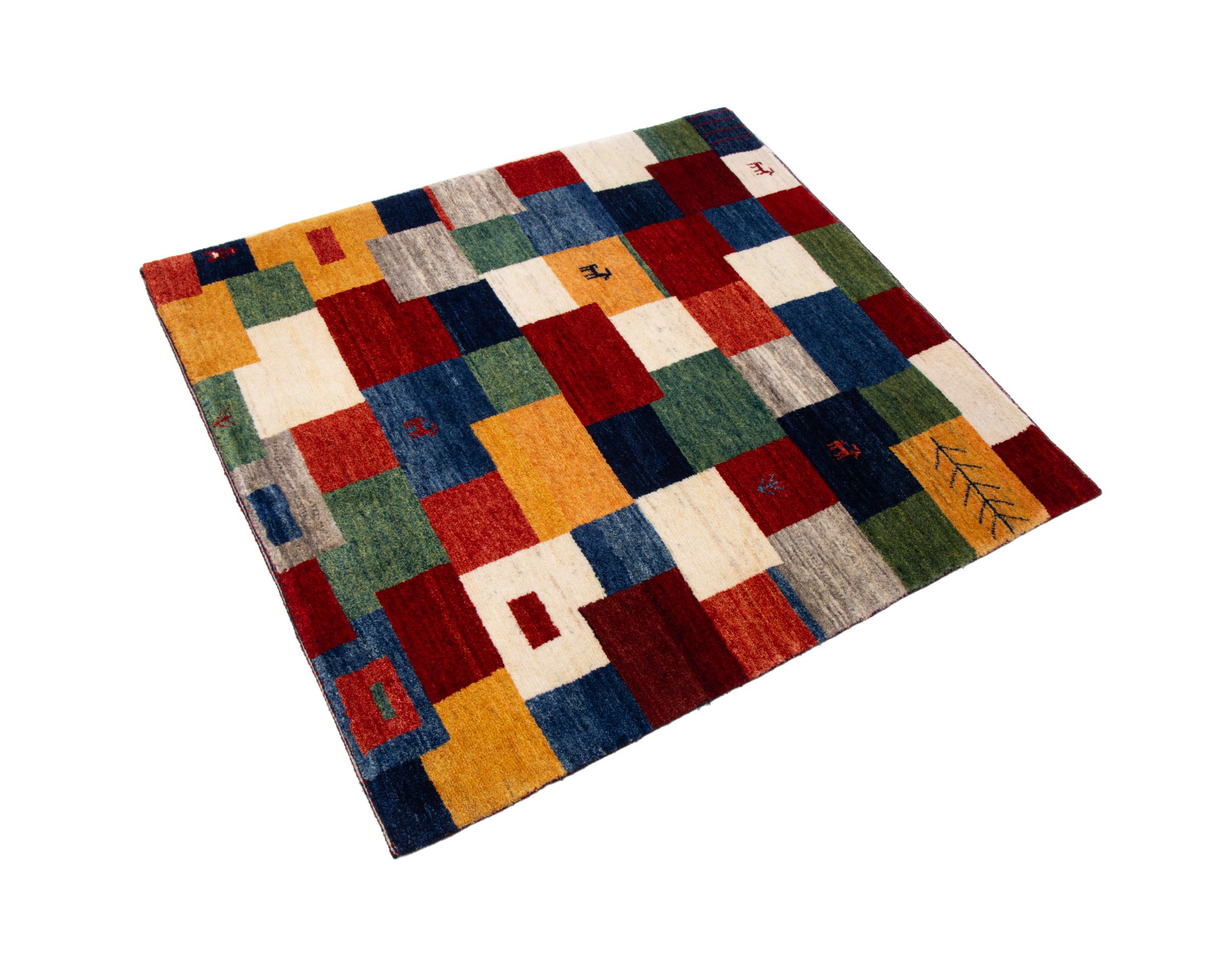 Acest frumos covor este un Gabbeh persan și este unul dintre covoarele Gabbeh de cea mai înaltă calitate. Covoarele sunt înnodate de nomazi sau semi-nomazi în Iran conform meșteșugurilor tradiționale. Motivele și modelele simple sunt în mare parte inspirate din mediul imediat al nomazilor. De exemplu, cămile, copaci sau tufișuri pot fi găsite pe covoarele tradiționale. Covoarele persane Gabbeh sunt fabricate din lână de la turmele de oi crescute local. Prin urmare, lâna este în mare parte toartă manual. Fiecare dintre aceste covoare orientale întruchipează un caracter unic al culturii de secole.