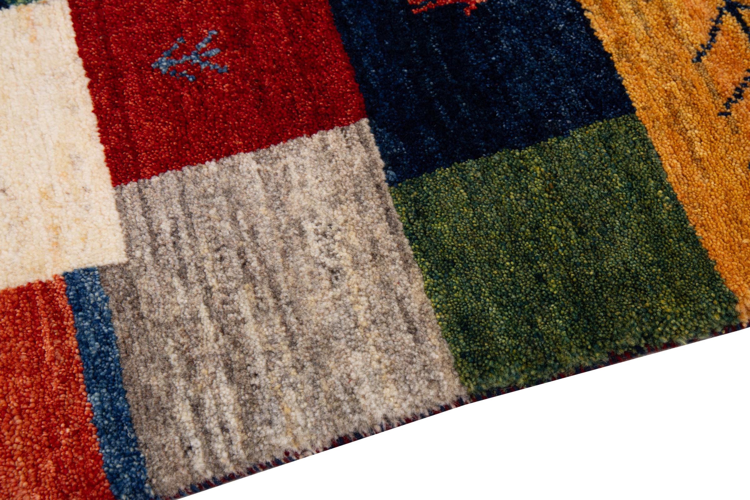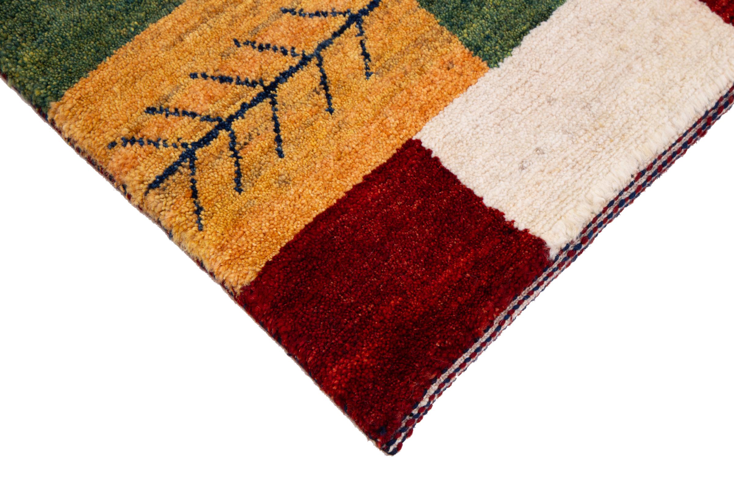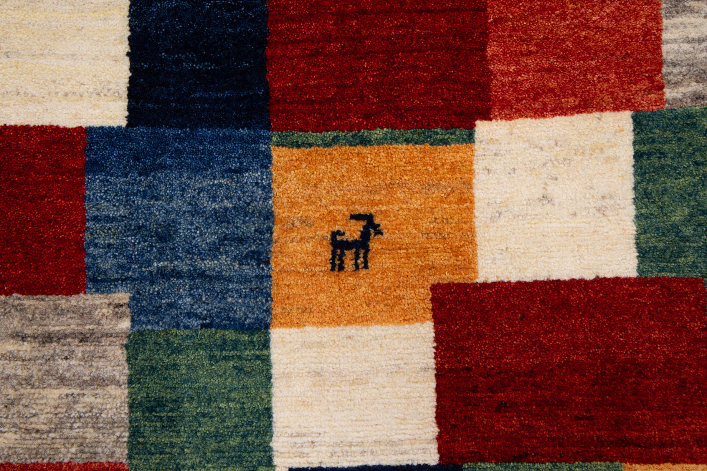 Acest frumos covor este un Gabbeh persan și este unul dintre covoarele Gabbeh de cea mai înaltă calitate. Covoarele sunt înnodate de nomazi sau semi-nomazi în Iran conform meșteșugurilor tradiționale. Motivele și modelele simple sunt în mare parte inspirate din mediul imediat al nomazilor. De exemplu, cămile, copaci sau tufișuri pot fi găsite pe covoarele tradiționale. Covoarele persane Gabbeh sunt fabricate din lână de la turmele de oi crescute local. Prin urmare, lâna este în mare parte toartă manual. Fiecare dintre aceste covoare orientale întruchipează un caracter unic al culturii de secole.