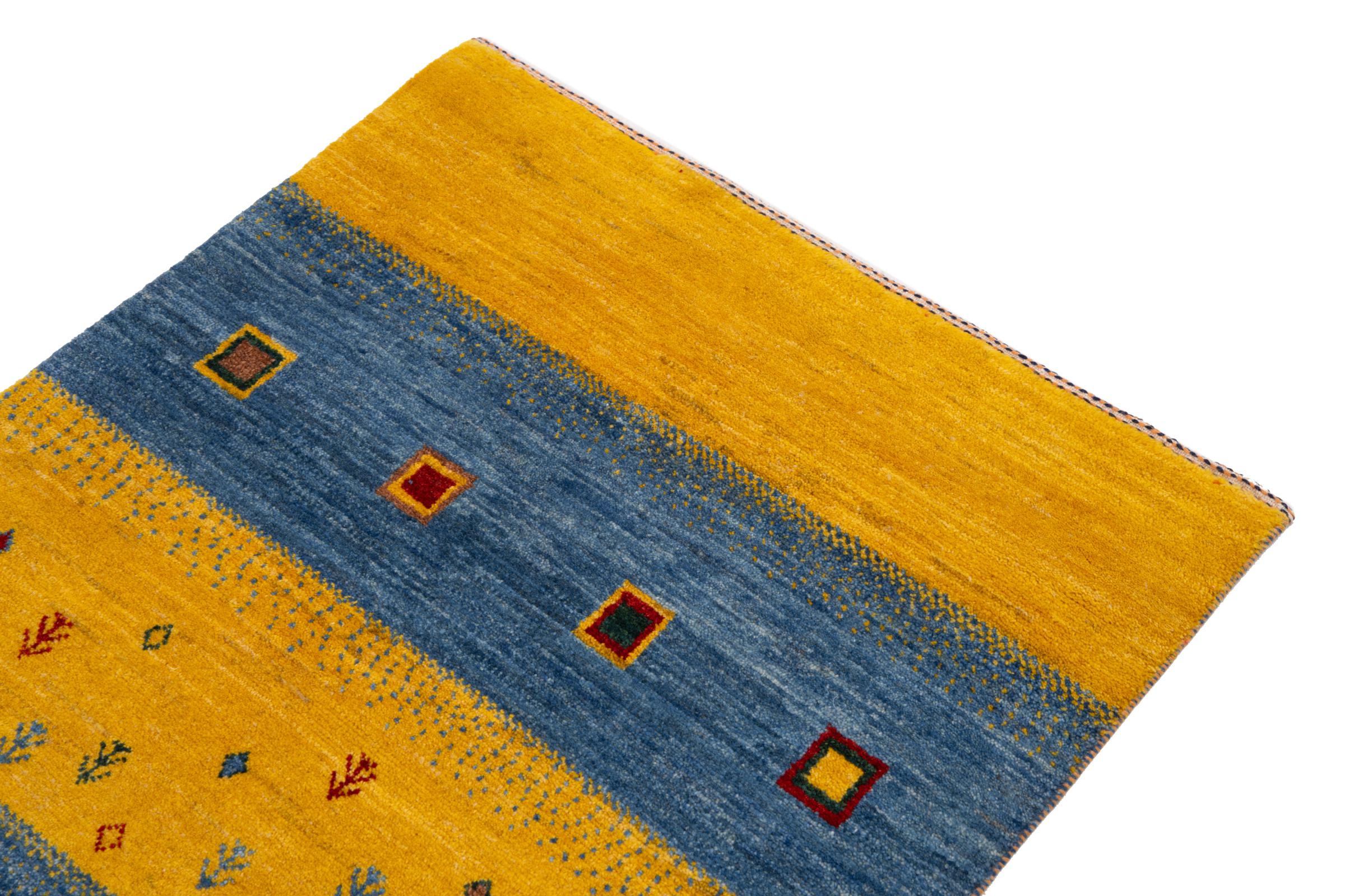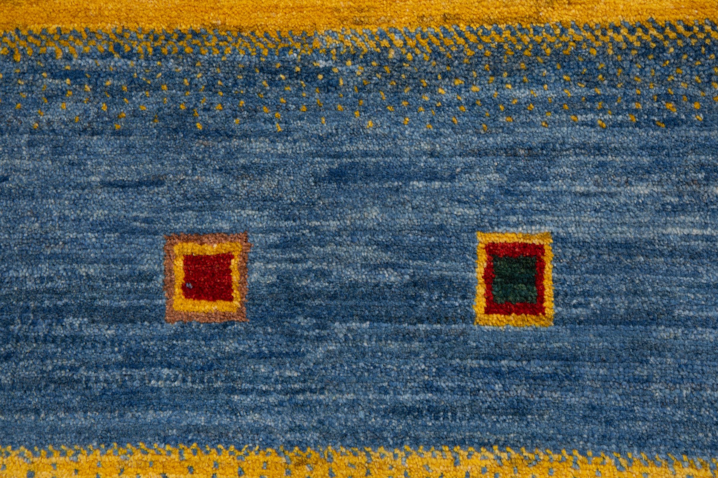 Acest frumos covor este un Gabbeh persan și este unul dintre covoarele Gabbeh de cea mai înaltă calitate. Covoarele sunt înnodate de nomazi sau semi-nomazi în Iran conform meșteșugurilor tradiționale. Motivele și modelele simple sunt în mare parte inspirate din mediul imediat al nomazilor. De exemplu, cămile, copaci sau tufișuri pot fi găsite pe covoarele tradiționale. Covoarele persane Gabbeh sunt fabricate din lână de la turmele de oi crescute local. Prin urmare, lâna este în mare parte toartă manual. Fiecare dintre aceste covoare orientale întruchipează un caracter unic al culturii de secole.