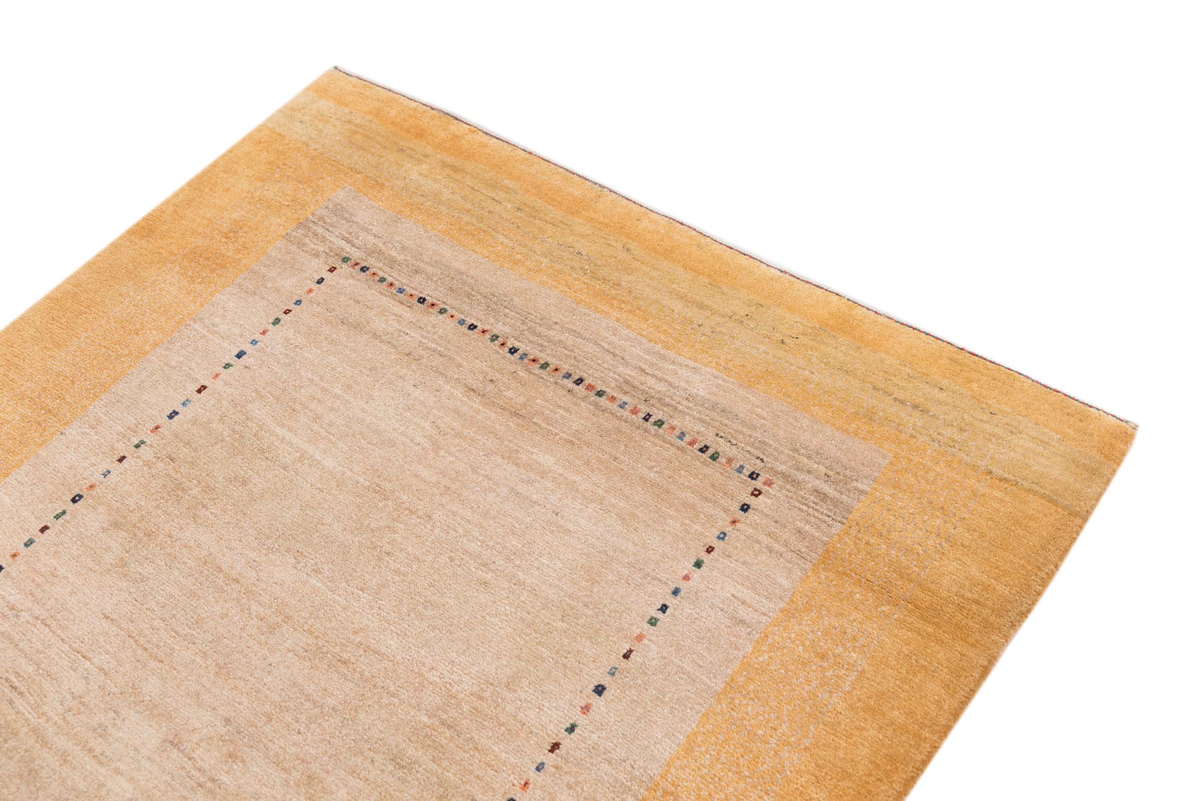 Acest frumos covor este un Gabbeh persan și este unul dintre covoarele Gabbeh de cea mai înaltă calitate. Covoarele sunt înnodate de nomazi sau semi-nomazi în Iran conform meșteșugurilor tradiționale. Motivele și modelele simple sunt în mare parte inspirate din mediul imediat al nomazilor. De exemplu, cămile, copaci sau tufișuri pot fi găsite pe covoarele tradiționale. Covoarele persane Gabbeh sunt fabricate din lână de la turmele de oi crescute local. Prin urmare, lâna este în mare parte toartă manual. Fiecare dintre aceste covoare orientale întruchipează un caracter unic al culturii de secole.