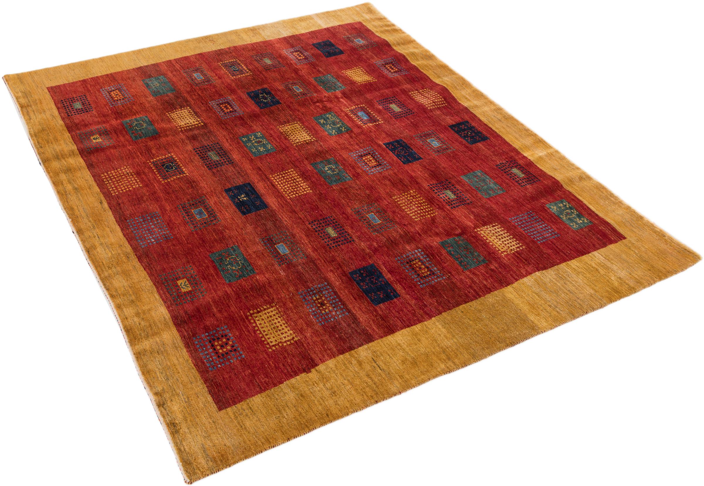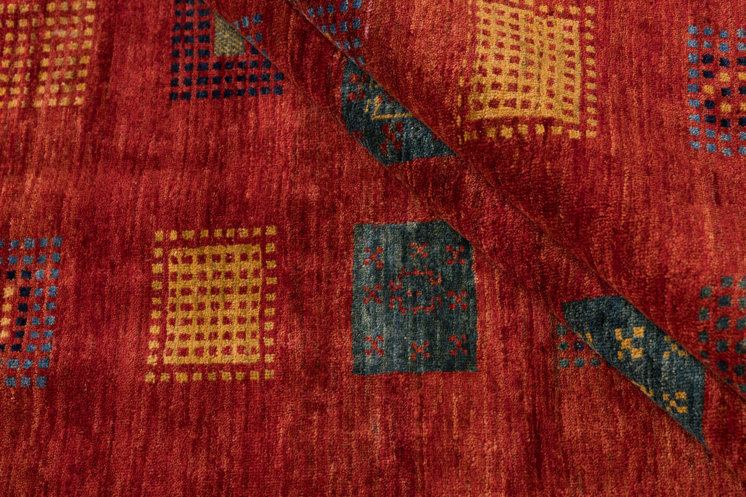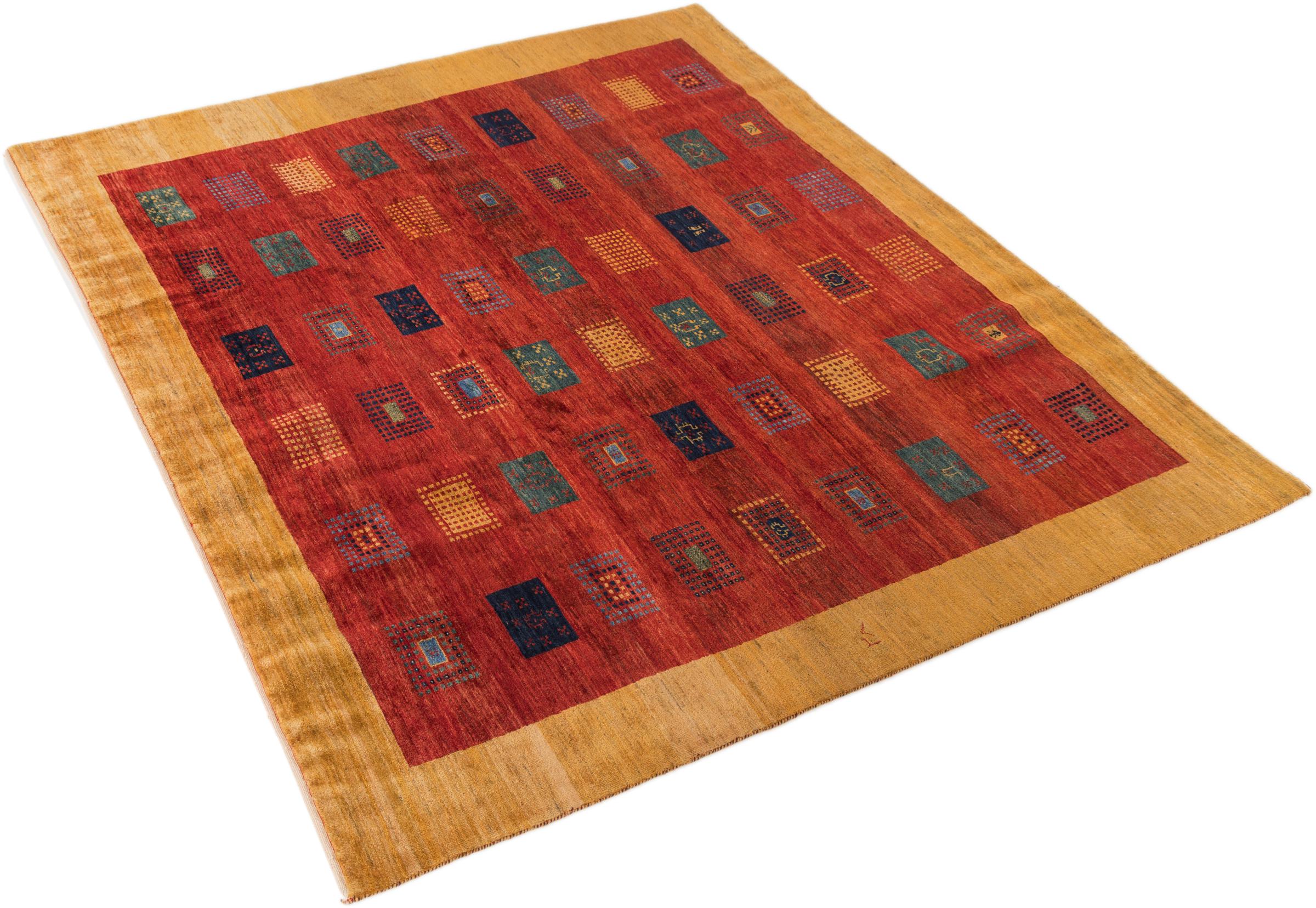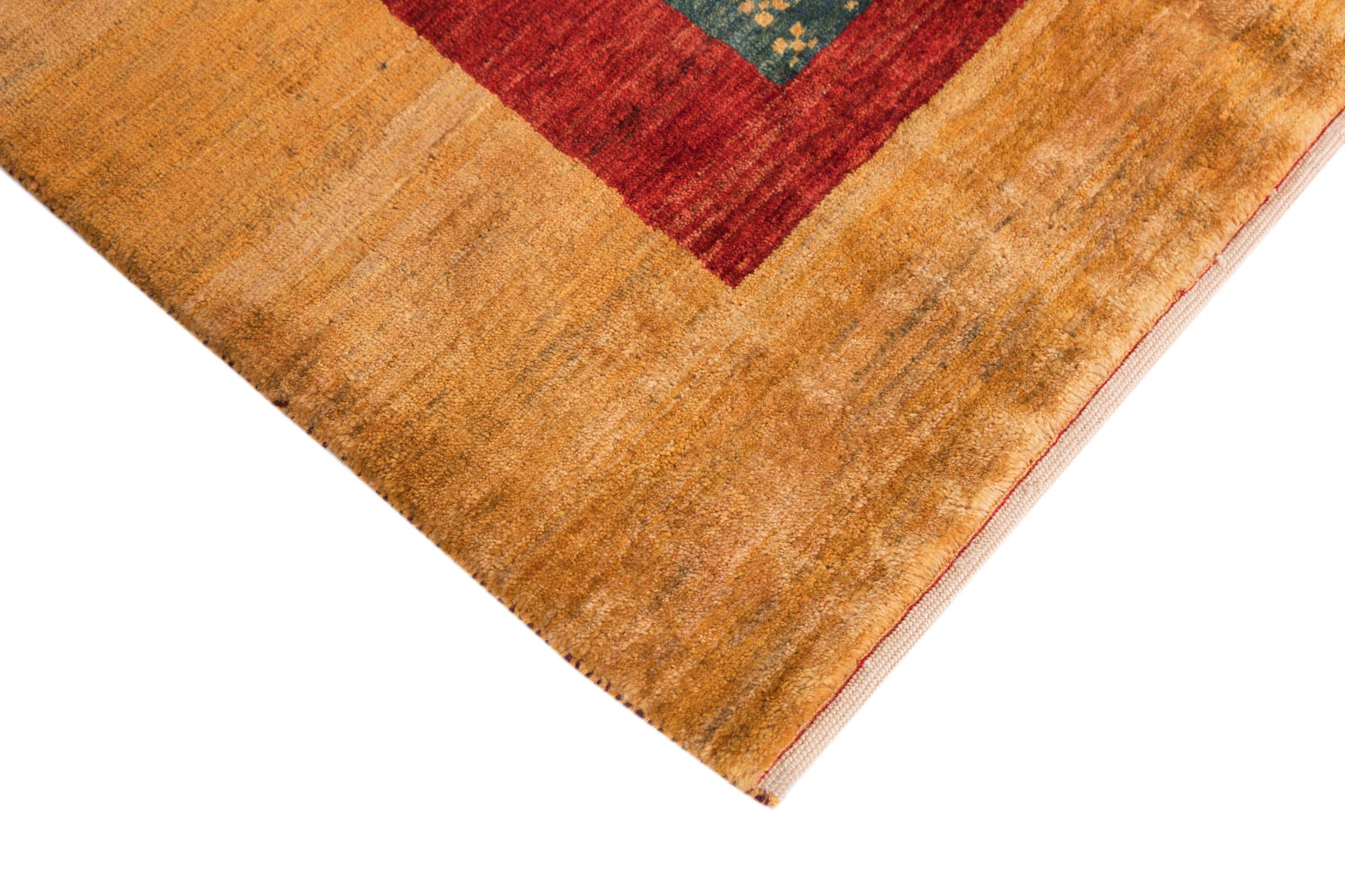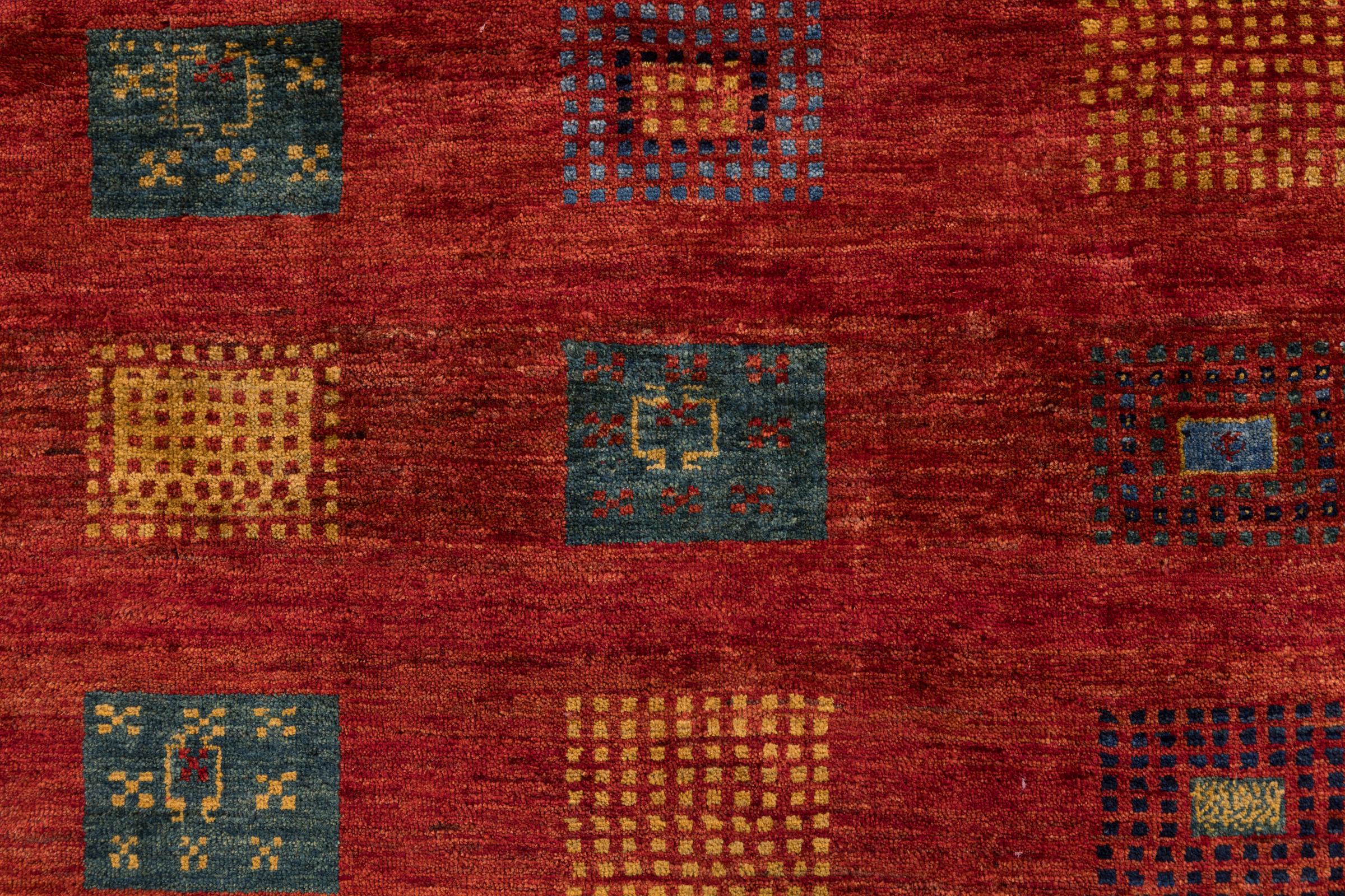 Acest frumos covor este un Gabbeh persan și este unul dintre covoarele Gabbeh de cea mai înaltă calitate. Covoarele sunt înnodate de nomazi sau semi-nomazi în Iran conform meșteșugurilor tradiționale. Motivele și modelele simple sunt în mare parte inspirate din mediul imediat al nomazilor. De exemplu, cămile, copaci sau tufișuri pot fi găsite pe covoarele tradiționale. Covoarele persane Gabbeh sunt fabricate din lână de la turmele de oi crescute local. Prin urmare, lâna este în mare parte toartă manual. Fiecare dintre aceste covoare orientale întruchipează un caracter unic al culturii de secole.