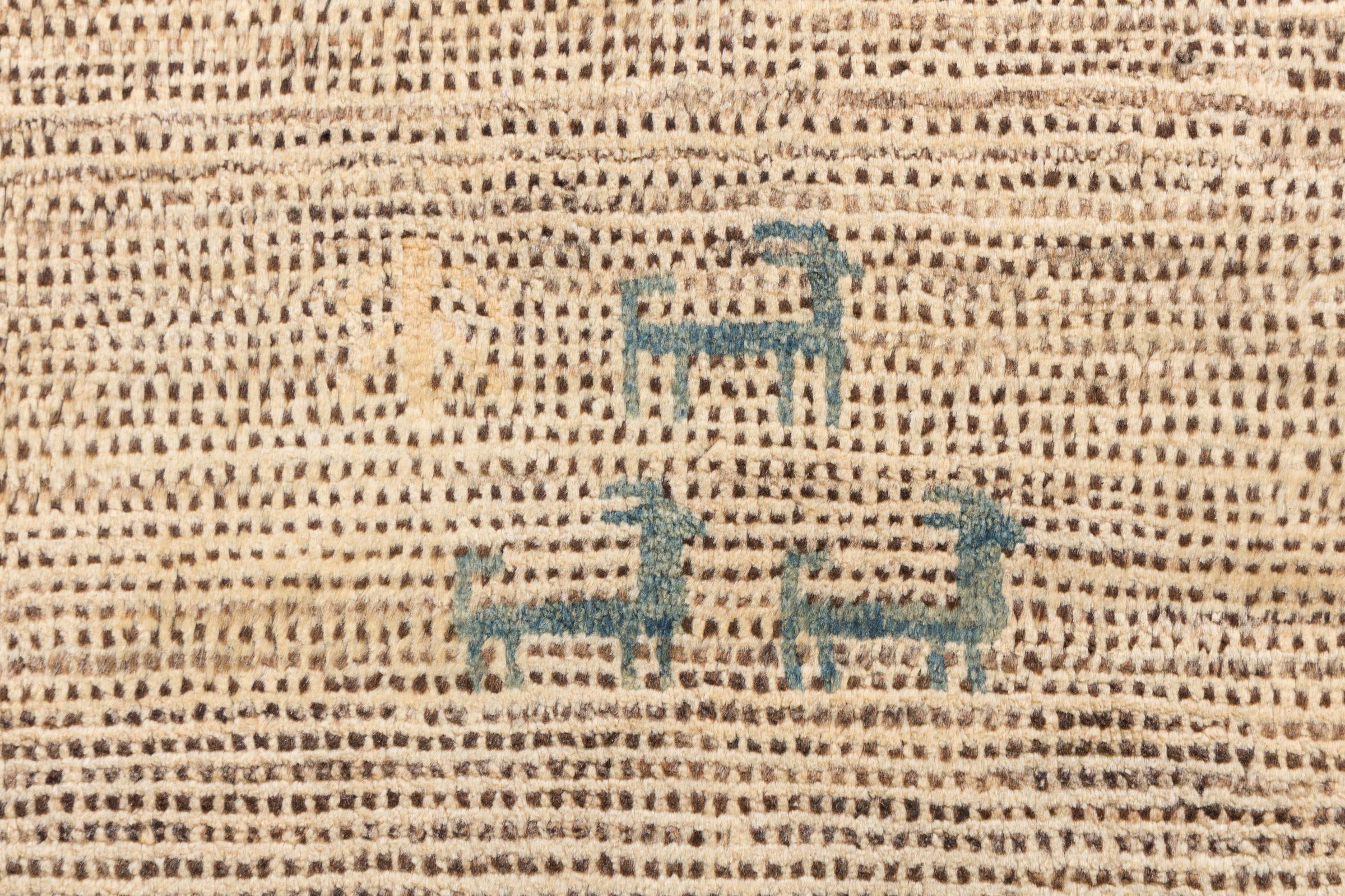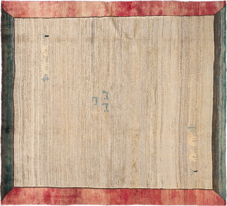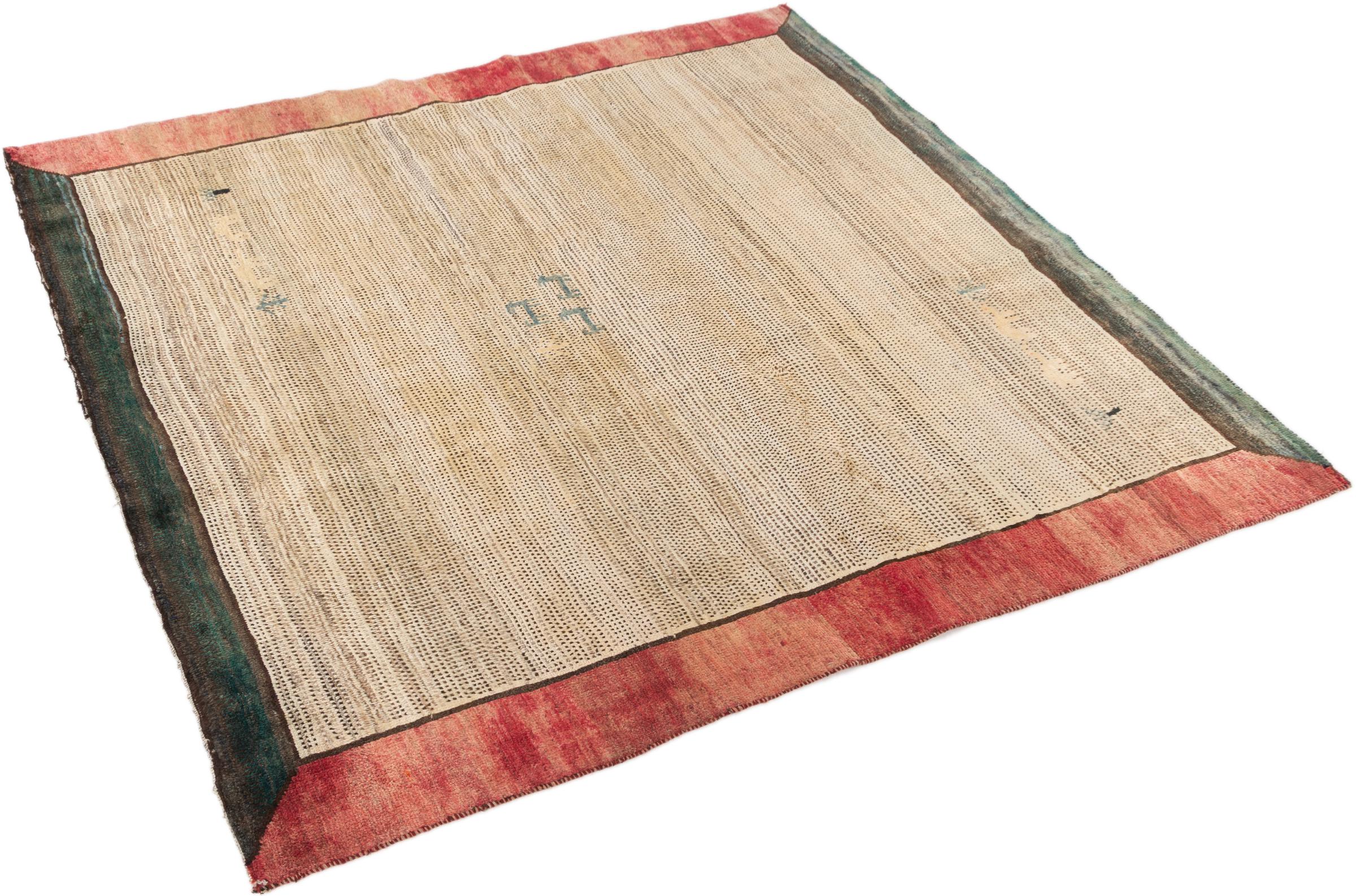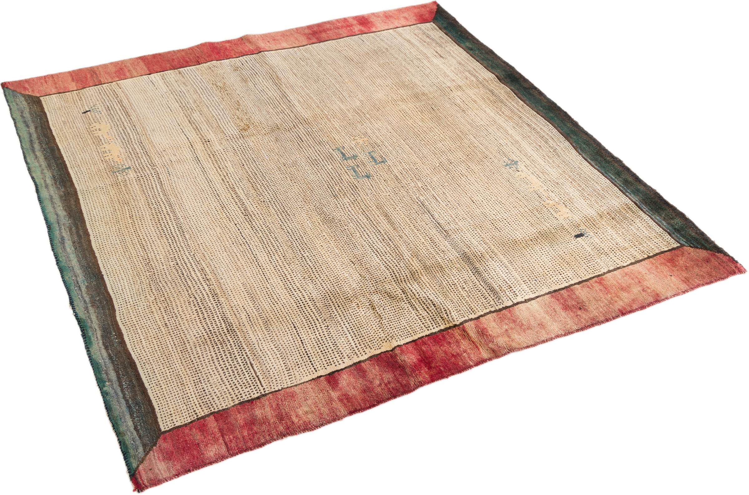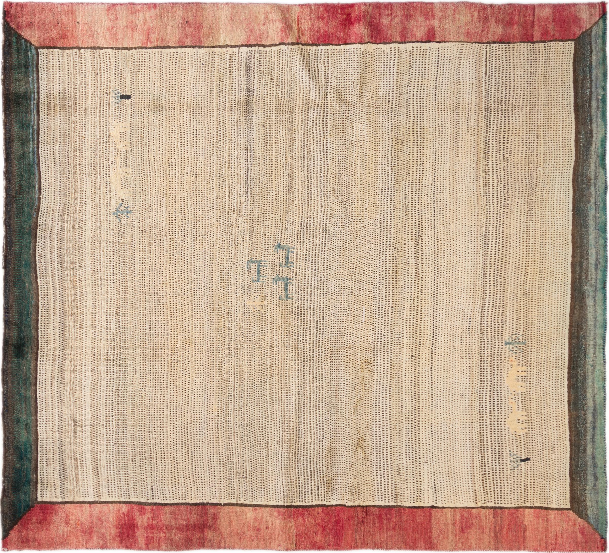 Acest frumos covor este un Gabbeh persan și este unul dintre covoarele Gabbeh de cea mai înaltă calitate. Covoarele sunt înnodate de nomazi sau semi-nomazi în Iran conform meșteșugurilor tradiționale. Motivele și modelele simple sunt în mare parte inspirate din mediul imediat al nomazilor. De exemplu, cămile, copaci sau tufișuri pot fi găsite pe covoarele tradiționale. Covoarele persane Gabbeh sunt fabricate din lână de la turmele de oi crescute local. Prin urmare, lâna este în mare parte toartă manual. Fiecare dintre aceste covoare orientale întruchipează un caracter unic al culturii de secole.