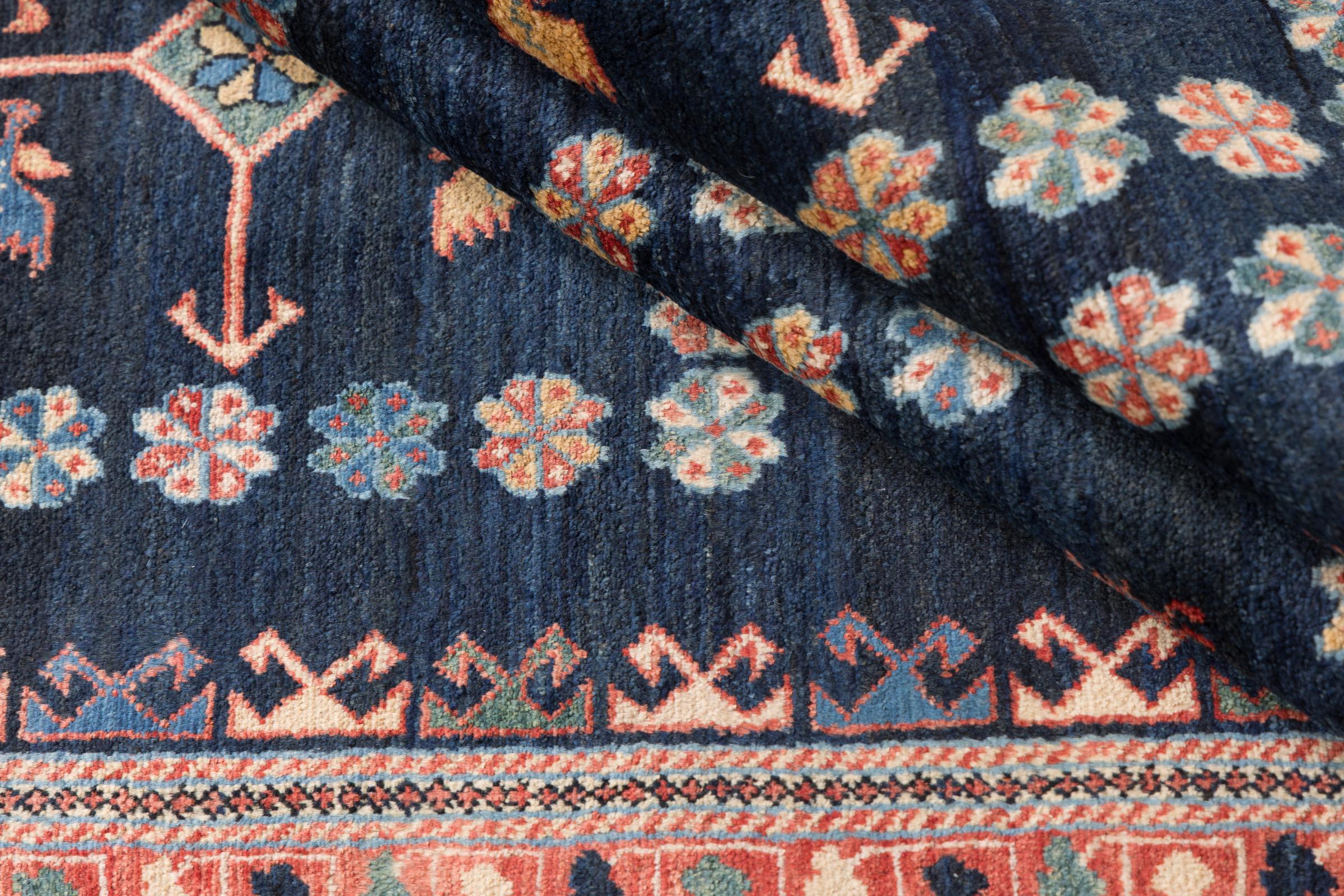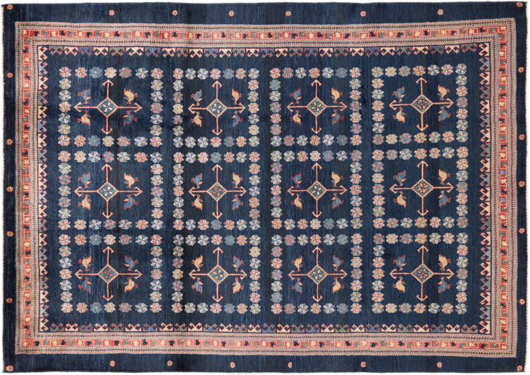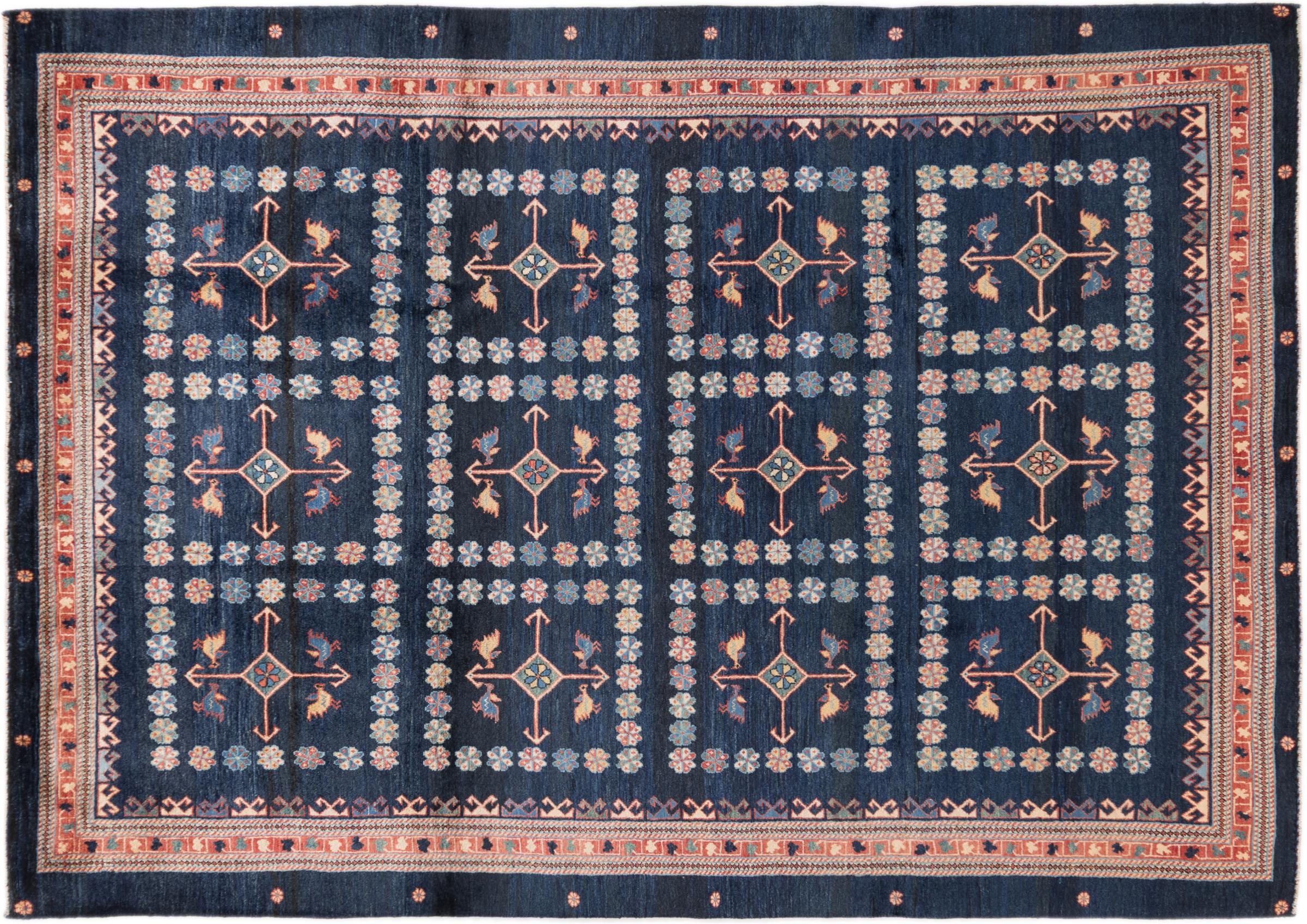 Acest frumos covor este un Gabbeh persan și este unul dintre covoarele Gabbeh de cea mai înaltă calitate. Covoarele sunt înnodate de nomazi sau semi-nomazi în Iran conform meșteșugurilor tradiționale. Motivele și modelele simple sunt în mare parte inspirate din mediul imediat al nomazilor. De exemplu, cămile, copaci sau tufișuri pot fi găsite pe covoarele tradiționale. Covoarele persane Gabbeh sunt fabricate din lână de la turmele de oi crescute local. Prin urmare, lâna este în mare parte toartă manual. Fiecare dintre aceste covoare orientale întruchipează un caracter unic al culturii de secole.
