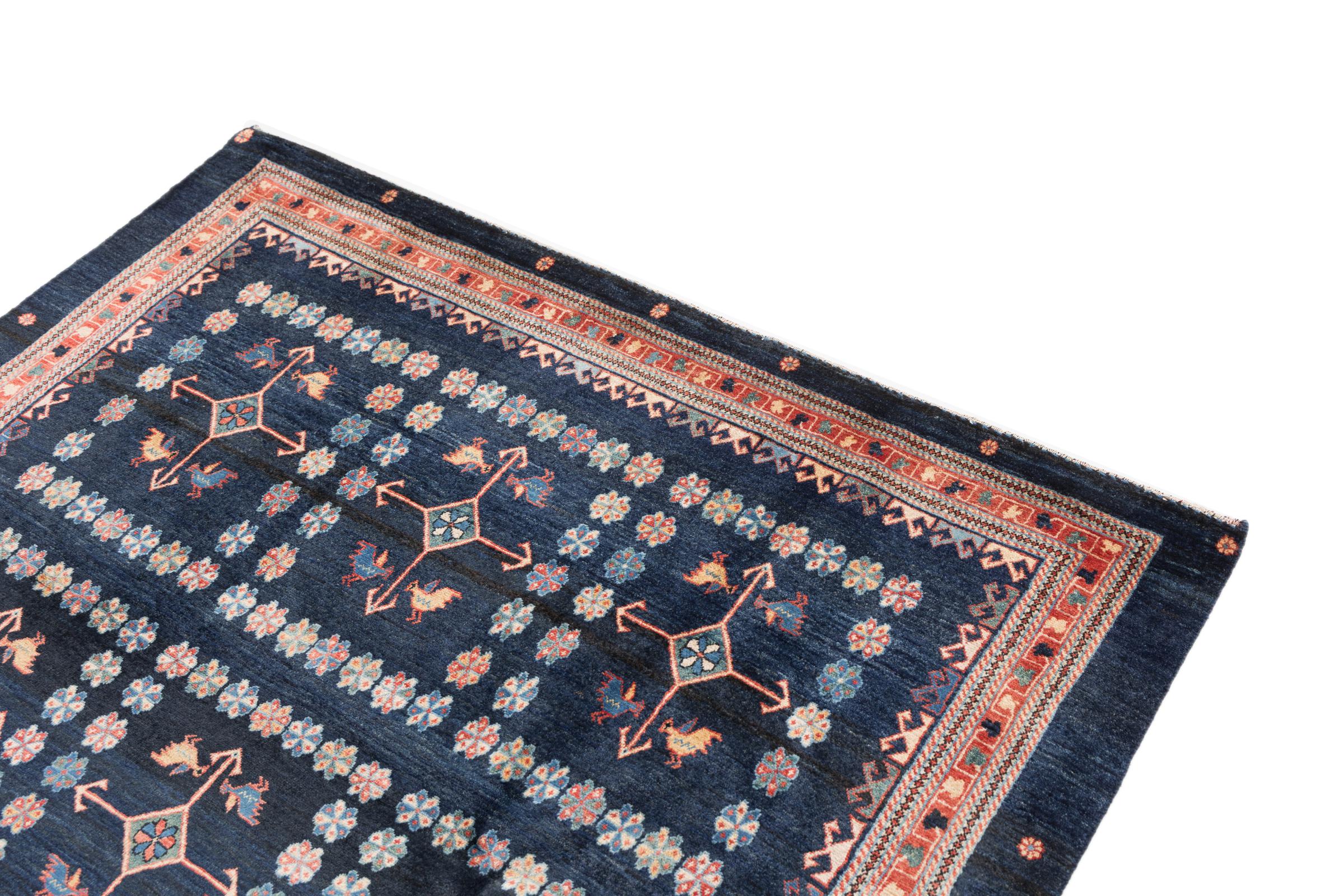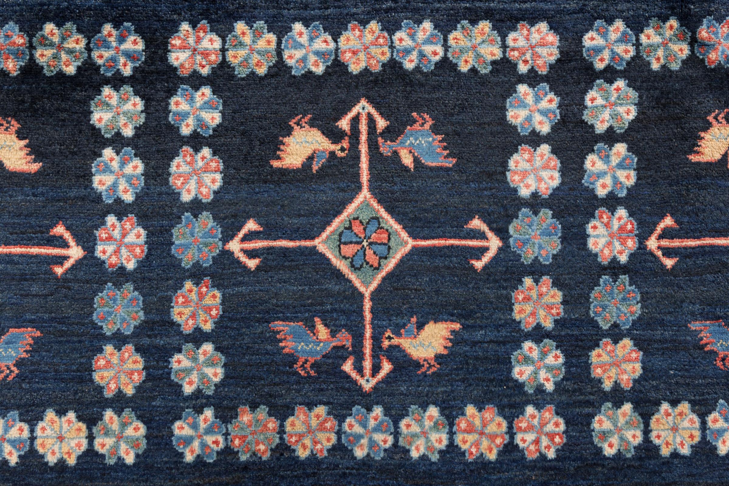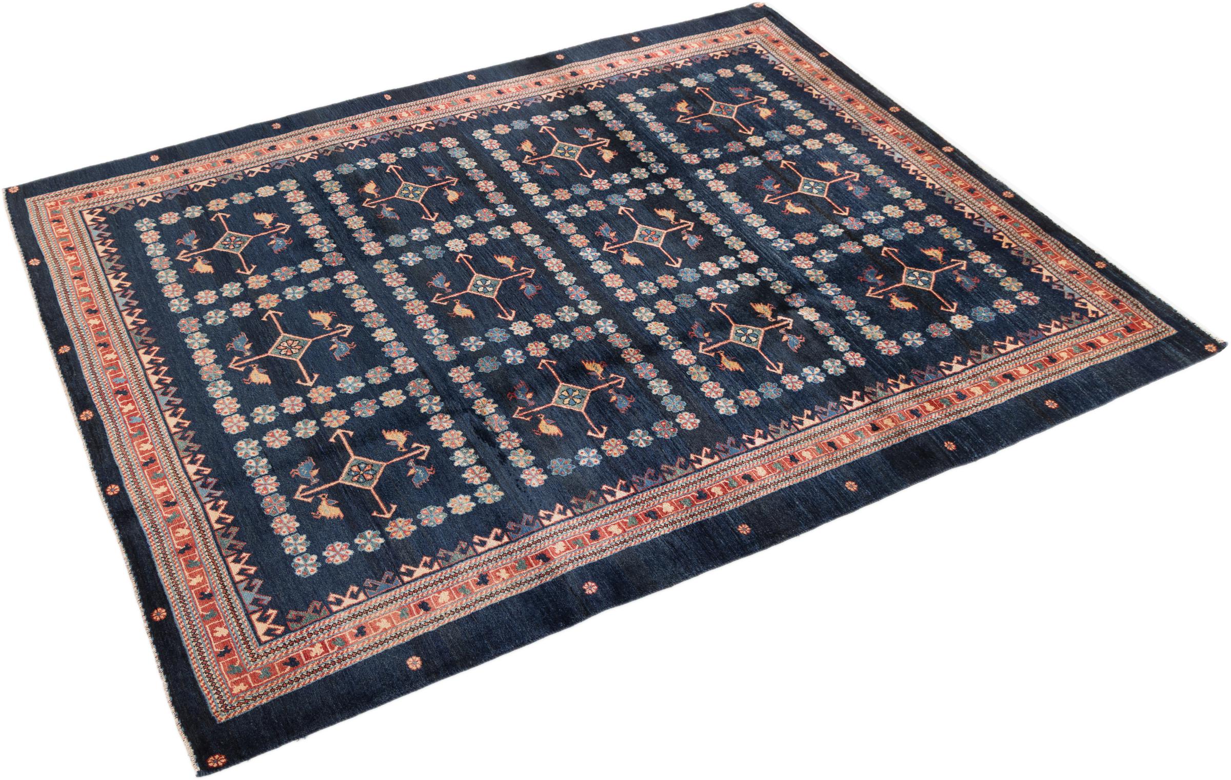Acest frumos covor este un Gabbeh persan și este unul dintre covoarele Gabbeh de cea mai înaltă calitate. Covoarele sunt înnodate de nomazi sau semi-nomazi în Iran conform meșteșugurilor tradiționale. Motivele și modelele simple sunt în mare parte inspirate din mediul imediat al nomazilor. De exemplu, cămile, copaci sau tufișuri pot fi găsite pe covoarele tradiționale. Covoarele persane Gabbeh sunt fabricate din lână de la turmele de oi crescute local. Prin urmare, lâna este în mare parte toartă manual. Fiecare dintre aceste covoare orientale întruchipează un caracter unic al culturii de secole.