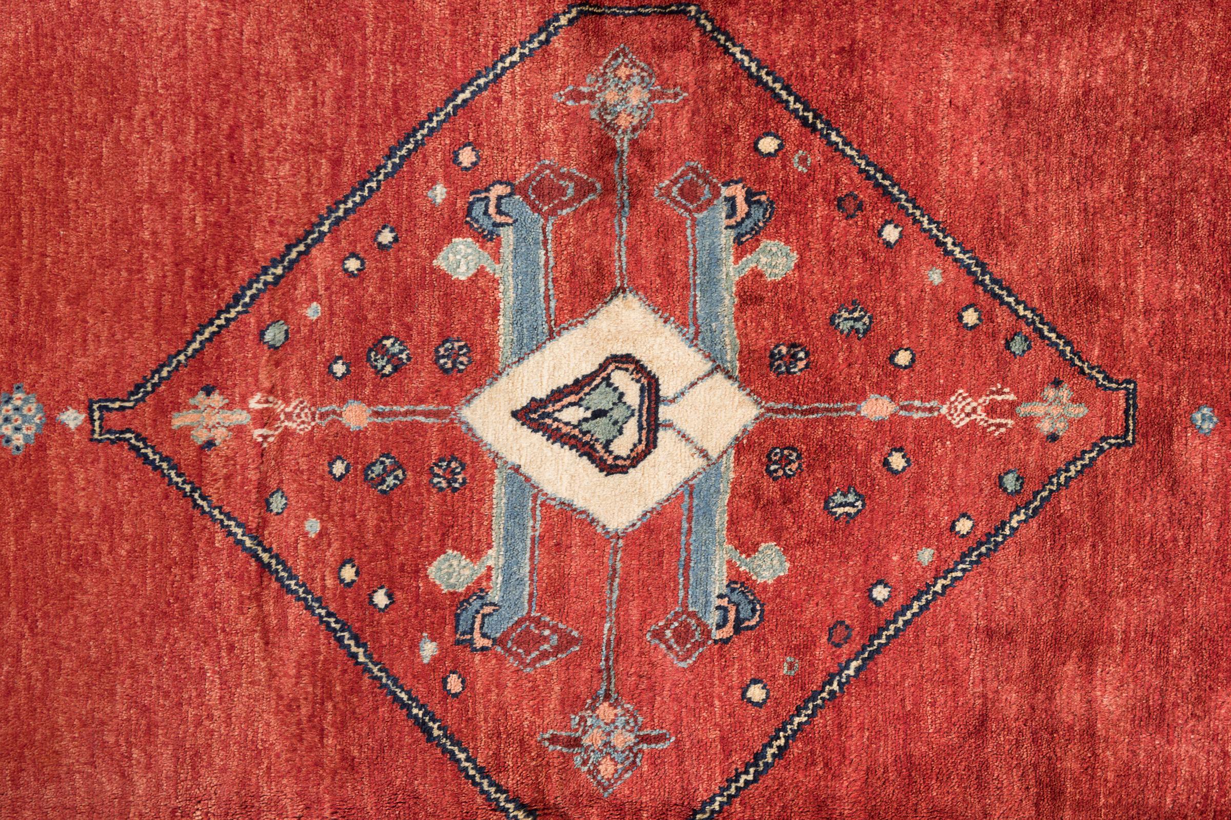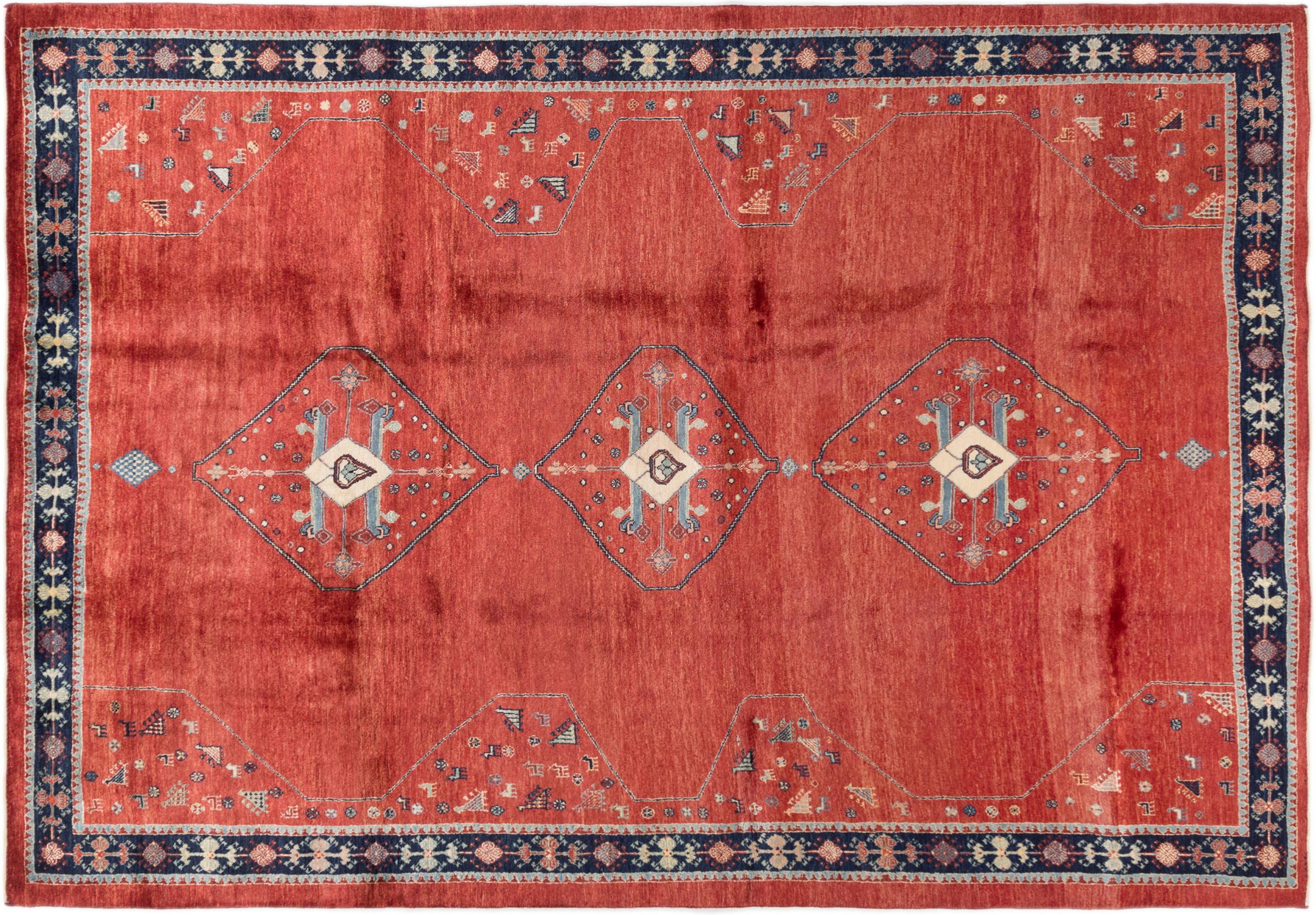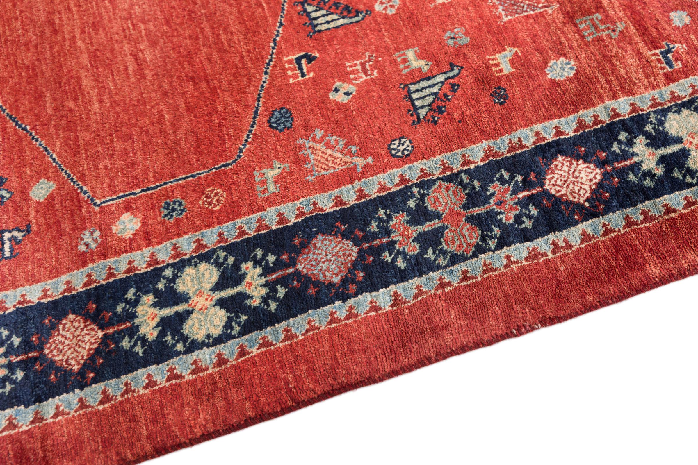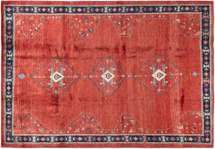 Acest frumos covor este un Gabbeh persan și este unul dintre covoarele Gabbeh de cea mai înaltă calitate. Covoarele sunt înnodate de nomazi sau semi-nomazi în Iran conform meșteșugurilor tradiționale. Motivele și modelele simple sunt în mare parte inspirate din mediul imediat al nomazilor. De exemplu, cămile, copaci sau tufișuri pot fi găsite pe covoarele tradiționale. Covoarele persane Gabbeh sunt fabricate din lână de la turmele de oi crescute local. Prin urmare, lâna este în mare parte toartă manual. Fiecare dintre aceste covoare orientale întruchipează un caracter unic al culturii de secole.