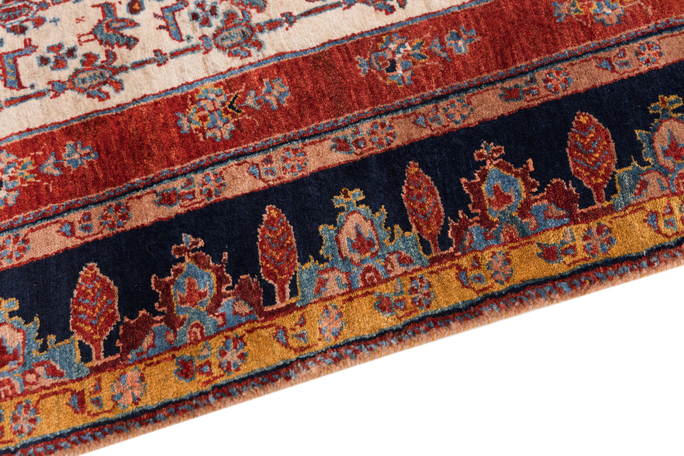 Acest frumos covor este un Gabbeh persan și este unul dintre covoarele Gabbeh de cea mai înaltă calitate. Covoarele sunt înnodate de nomazi sau semi-nomazi în Iran conform meșteșugurilor tradiționale. Motivele și modelele simple sunt în mare parte inspirate din mediul imediat al nomazilor. De exemplu, cămile, copaci sau tufișuri pot fi găsite pe covoarele tradiționale. Covoarele persane Gabbeh sunt fabricate din lână de la turmele de oi crescute local. Prin urmare, lâna este în mare parte toartă manual. Fiecare dintre aceste covoare orientale întruchipează un caracter unic al culturii de secole.