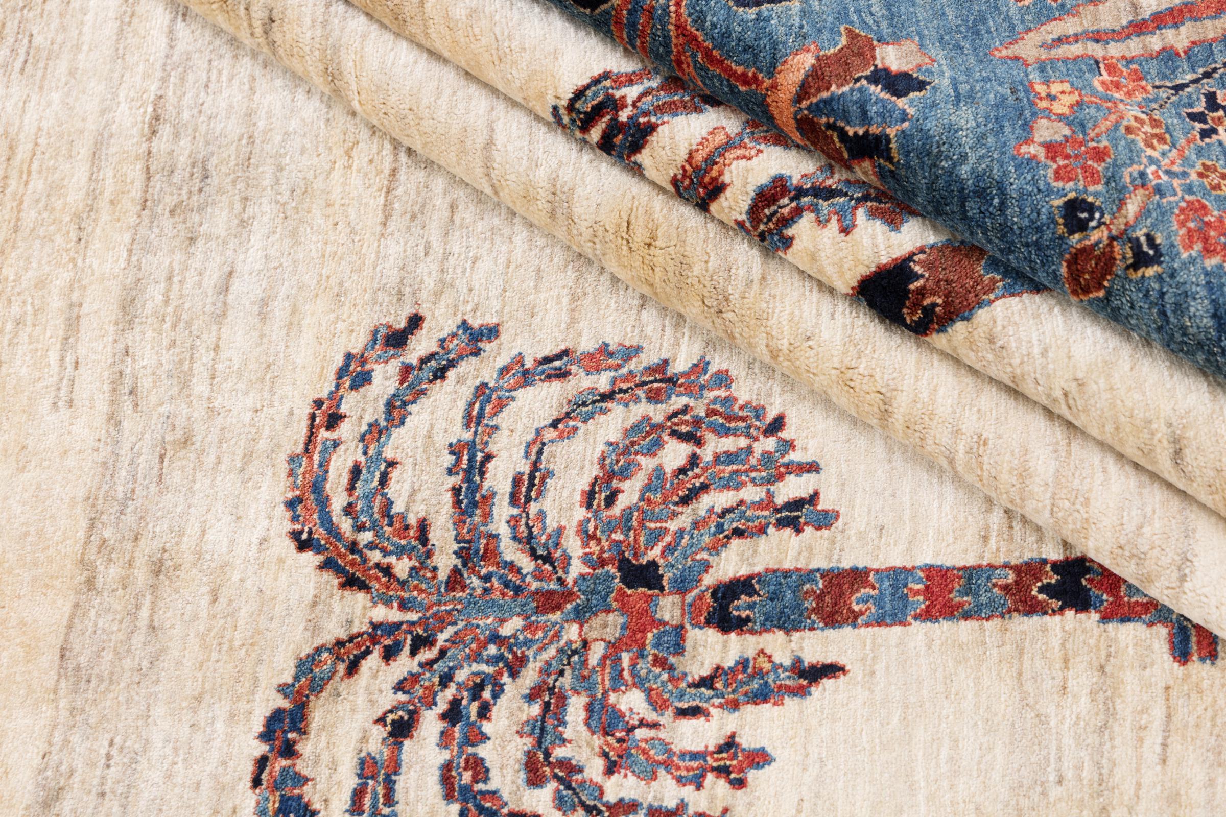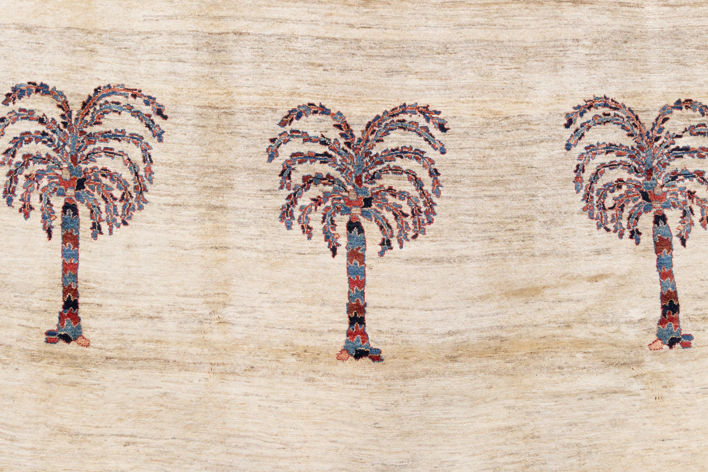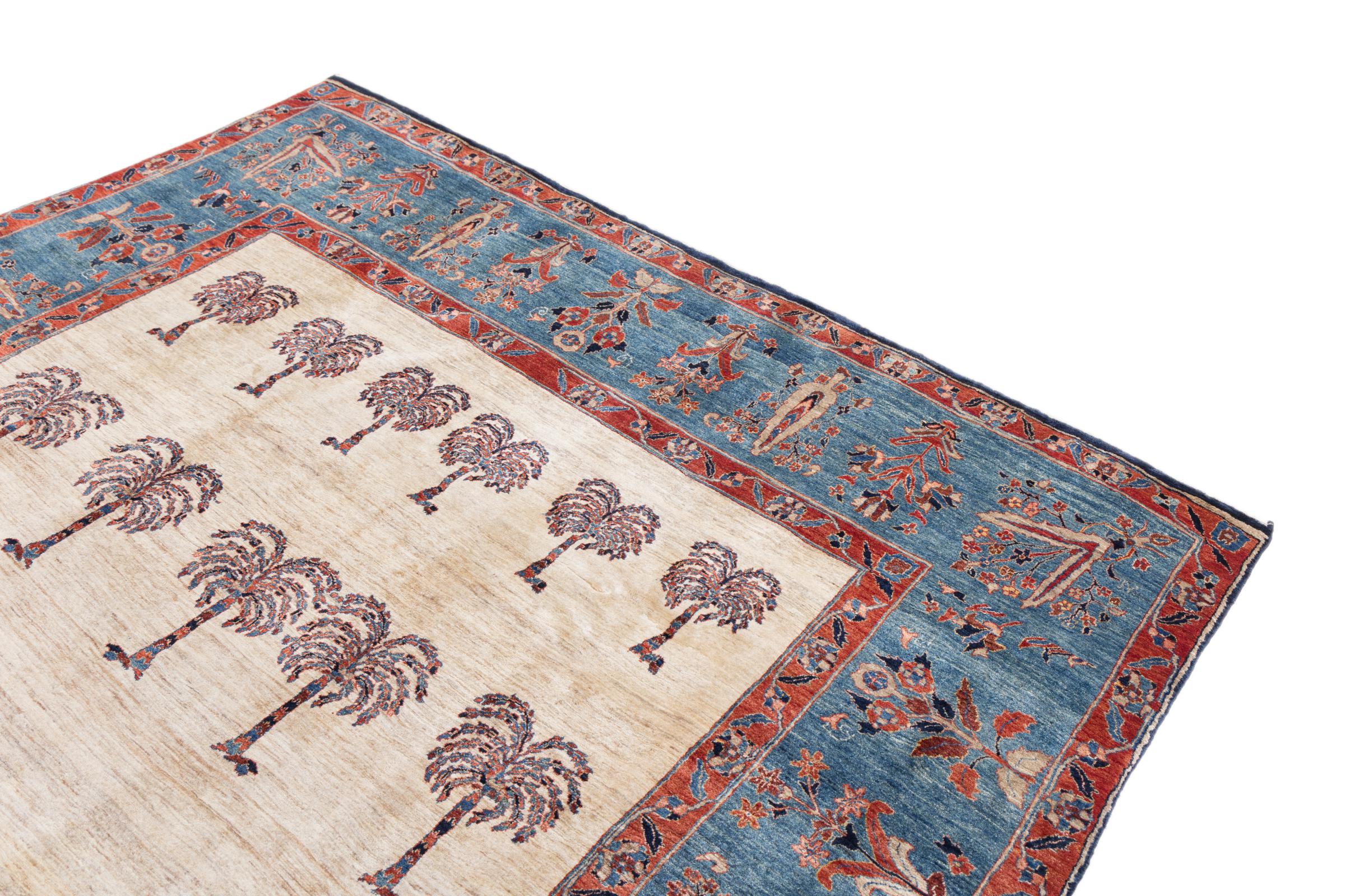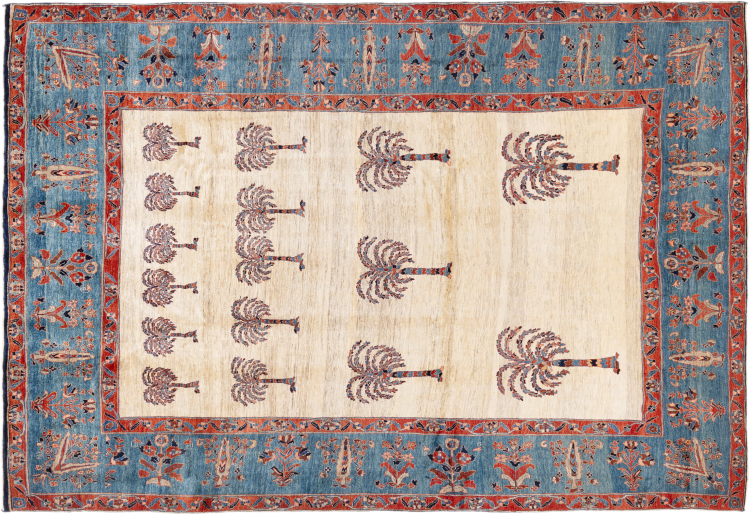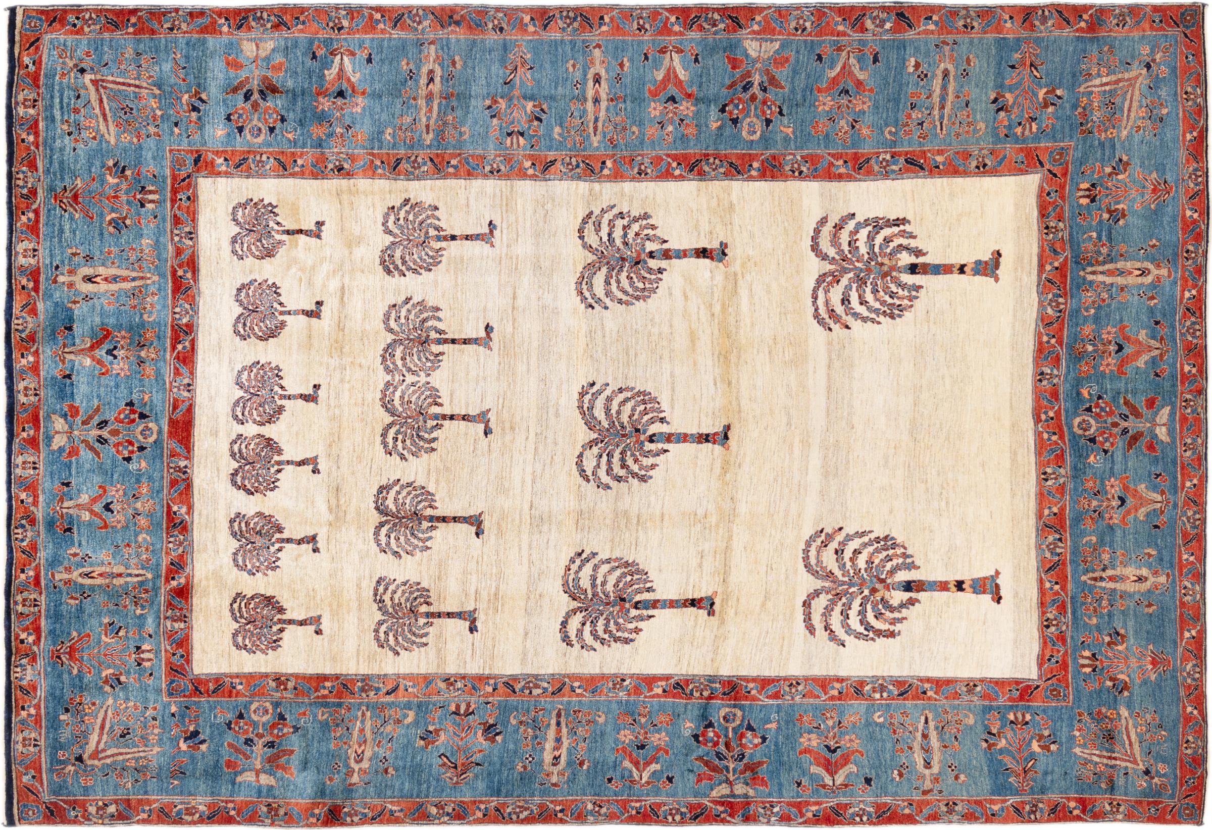 Acest frumos covor este un Gabbeh persan și este unul dintre covoarele Gabbeh de cea mai înaltă calitate. Covoarele sunt înnodate de nomazi sau semi-nomazi în Iran conform meșteșugurilor tradiționale. Motivele și modelele simple sunt în mare parte inspirate din mediul imediat al nomazilor. De exemplu, cămile, copaci sau tufișuri pot fi găsite pe covoarele tradiționale. Covoarele persane Gabbeh sunt fabricate din lână de la turmele de oi crescute local. Prin urmare, lâna este în mare parte toartă manual. Fiecare dintre aceste covoare orientale întruchipează un caracter unic al culturii de secole.
