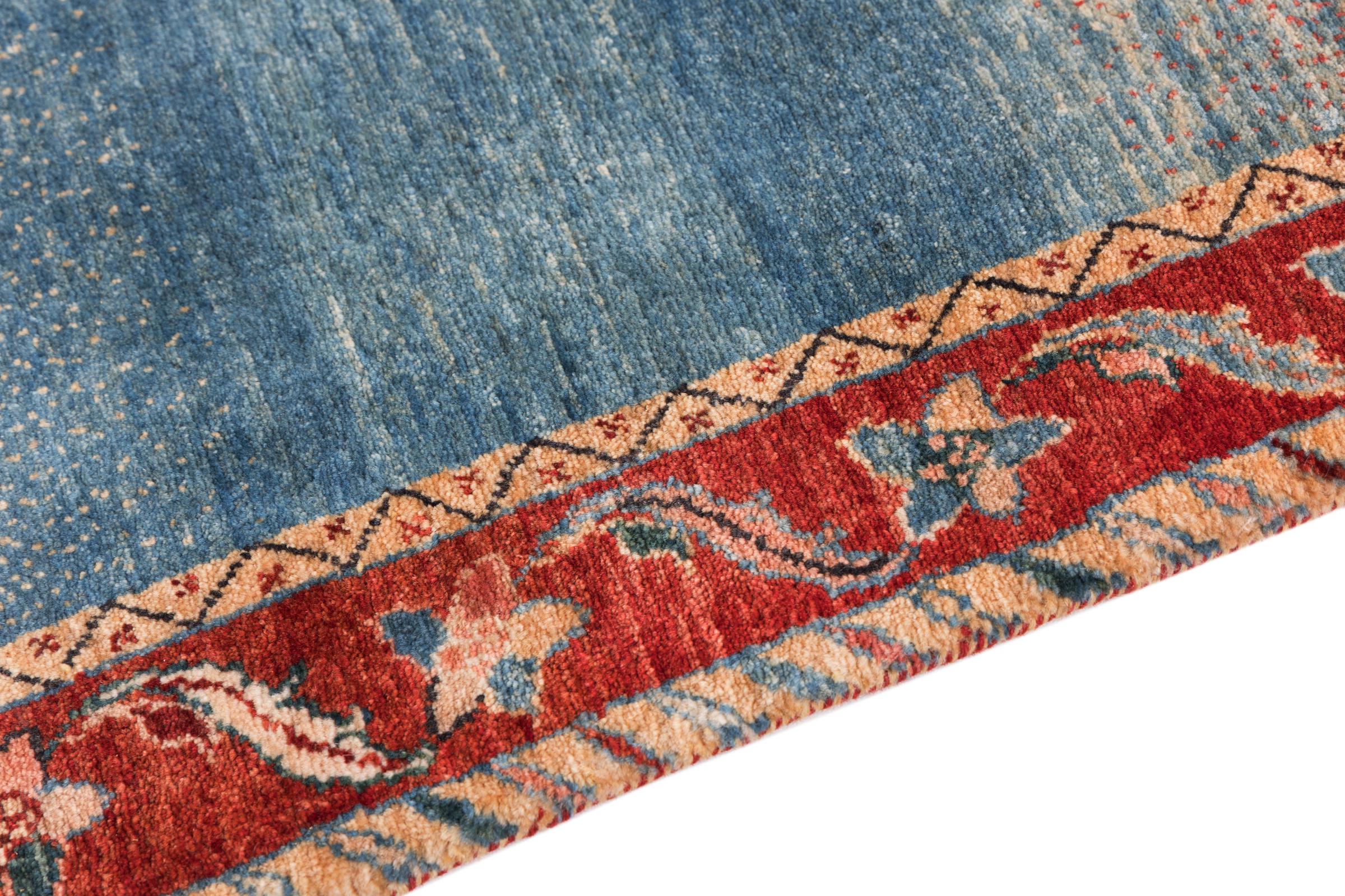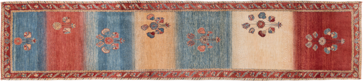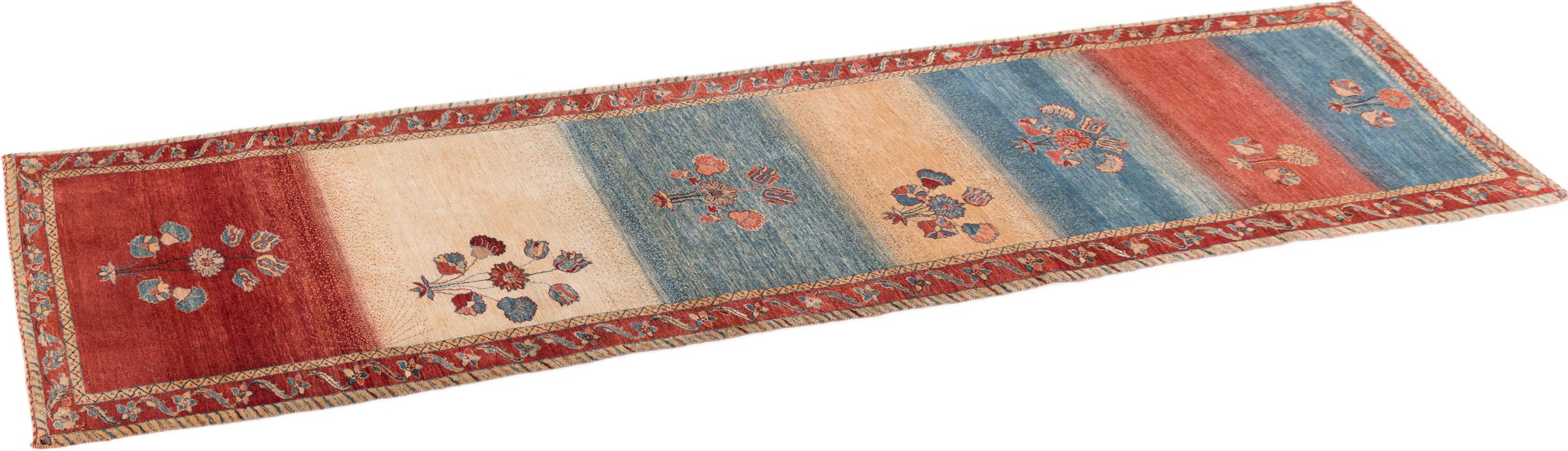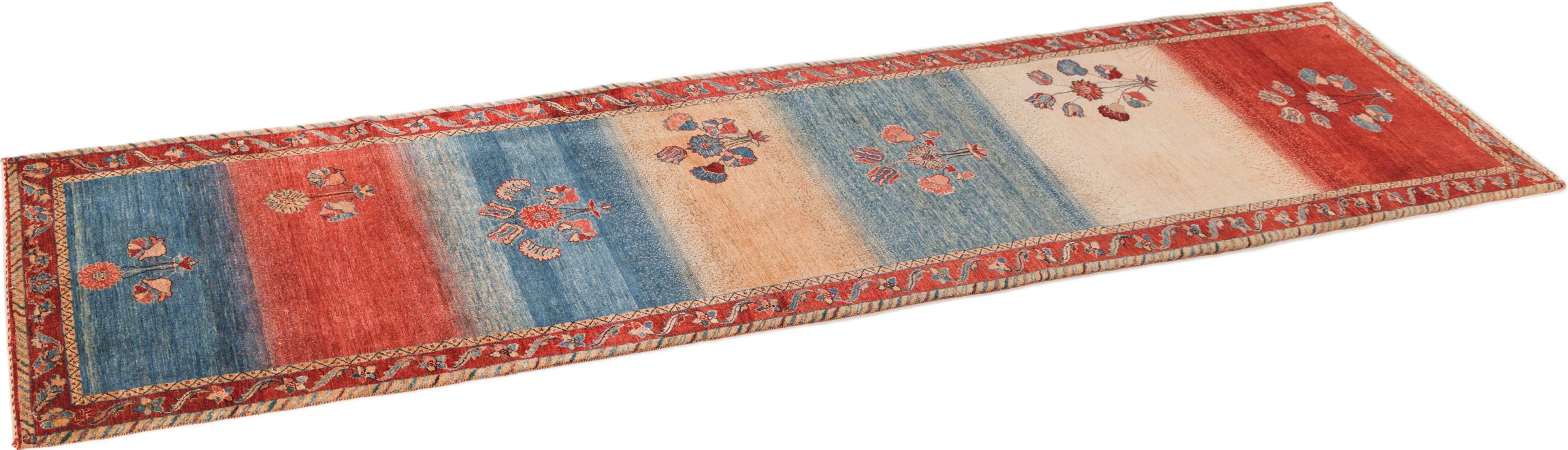 Acest frumos covor este un Gabbeh persan și este unul dintre covoarele Gabbeh de cea mai înaltă calitate. Covoarele sunt înnodate de nomazi sau semi-nomazi în Iran conform meșteșugurilor tradiționale. Motivele și modelele simple sunt în mare parte inspirate din mediul imediat al nomazilor. De exemplu, cămile, copaci sau tufișuri pot fi găsite pe covoarele tradiționale. Covoarele persane Gabbeh sunt fabricate din lână de la turmele de oi crescute local. Prin urmare, lâna este în mare parte toartă manual. Fiecare dintre aceste covoare orientale întruchipează un caracter unic al culturii de secole.