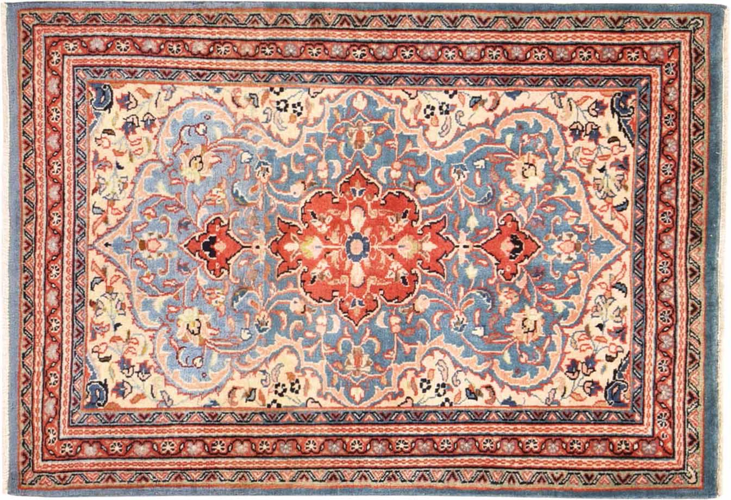 Covor Nr.: 300978004916339 Mărime: 123x85 cm Grosime: cca. 12 mm Noduri: 160 000 - 200 000 / m² Prelucrare: Lucrate de mână Catifeaua: Lână toarsă manual Urzeala: Bumbac Origine: Persien / Iran Vechime: Nou Greutate: cca. 4 kg De asemenea cunoscut ca si Arak , Sarough, Sarouk, Saruk, Saroq, Sultanabad În stoc: Unic - Doar 1 în stoc