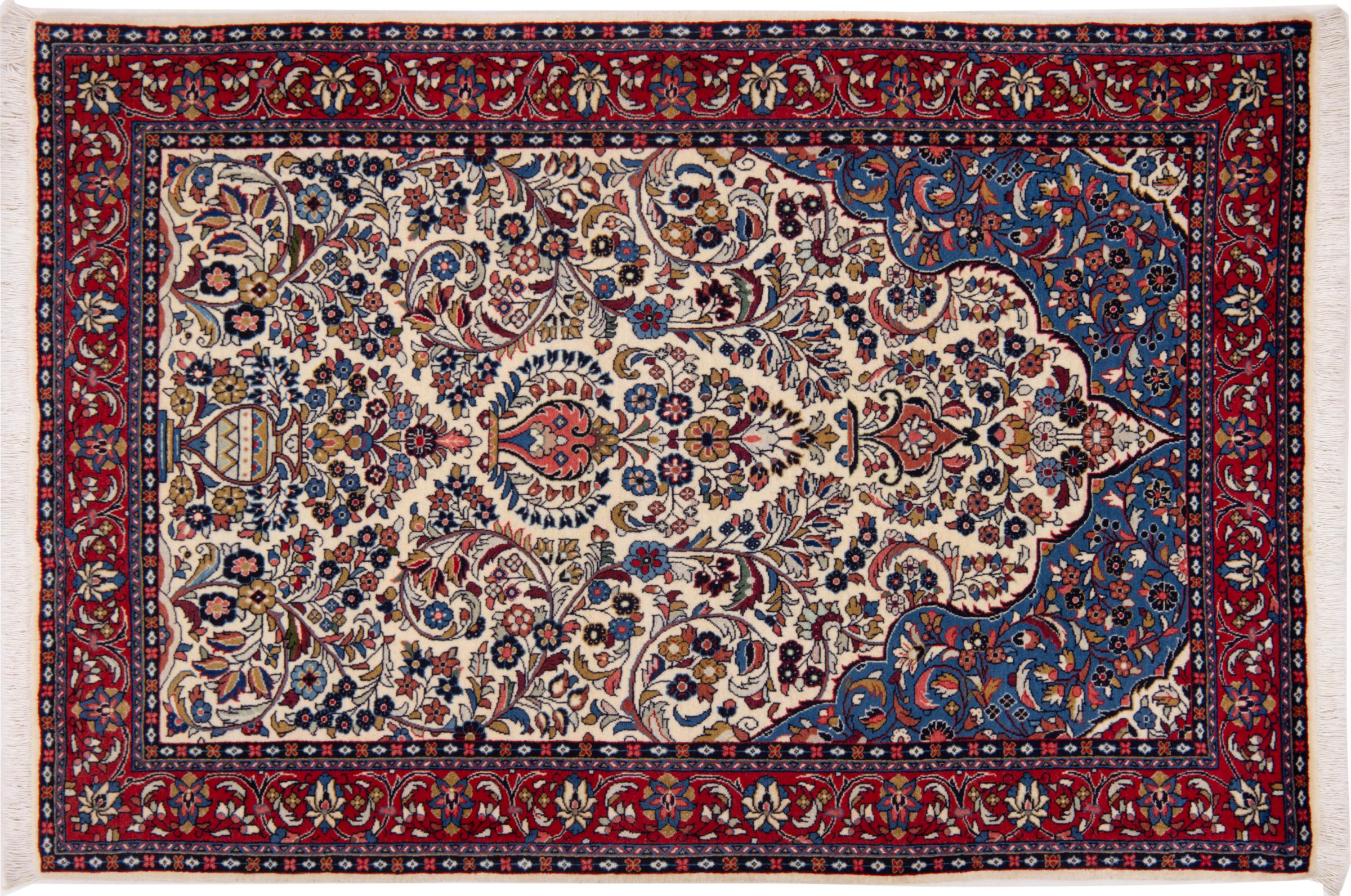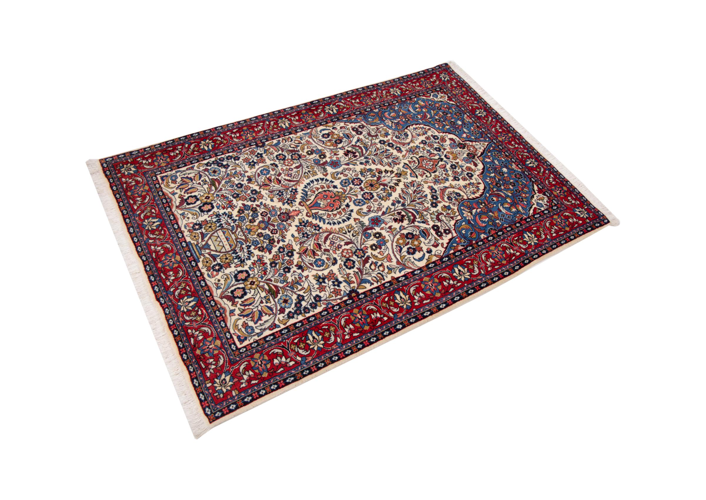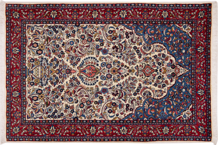 Covor Nr.: 292536001855919 Mărime: 154x102 cm Grosime: cca. 12 mm Noduri: 320 000 - 360 000 / m² Prelucrare: Lucrate de mână Catifeaua: Lână toarsă manual Urzeala: Bumbac Origine: Persien / Iran Vechime: Nou Greutate: cca. 5 kg De asemenea cunoscut ca si Arak , Sarough, Sarouk, Saruk, Saroq, Sultanabad În stoc: Unic - Doar 1 în stoc