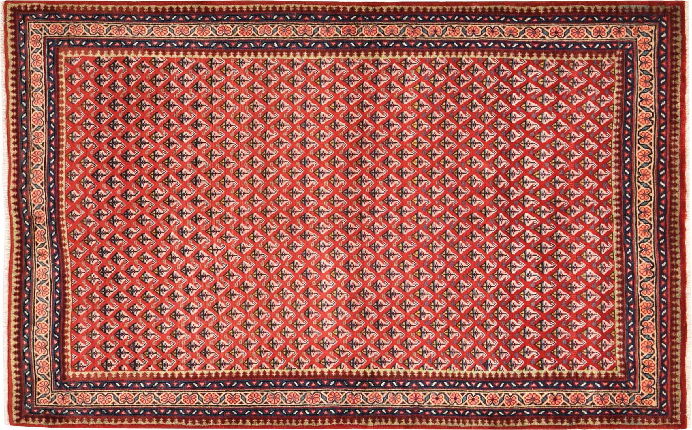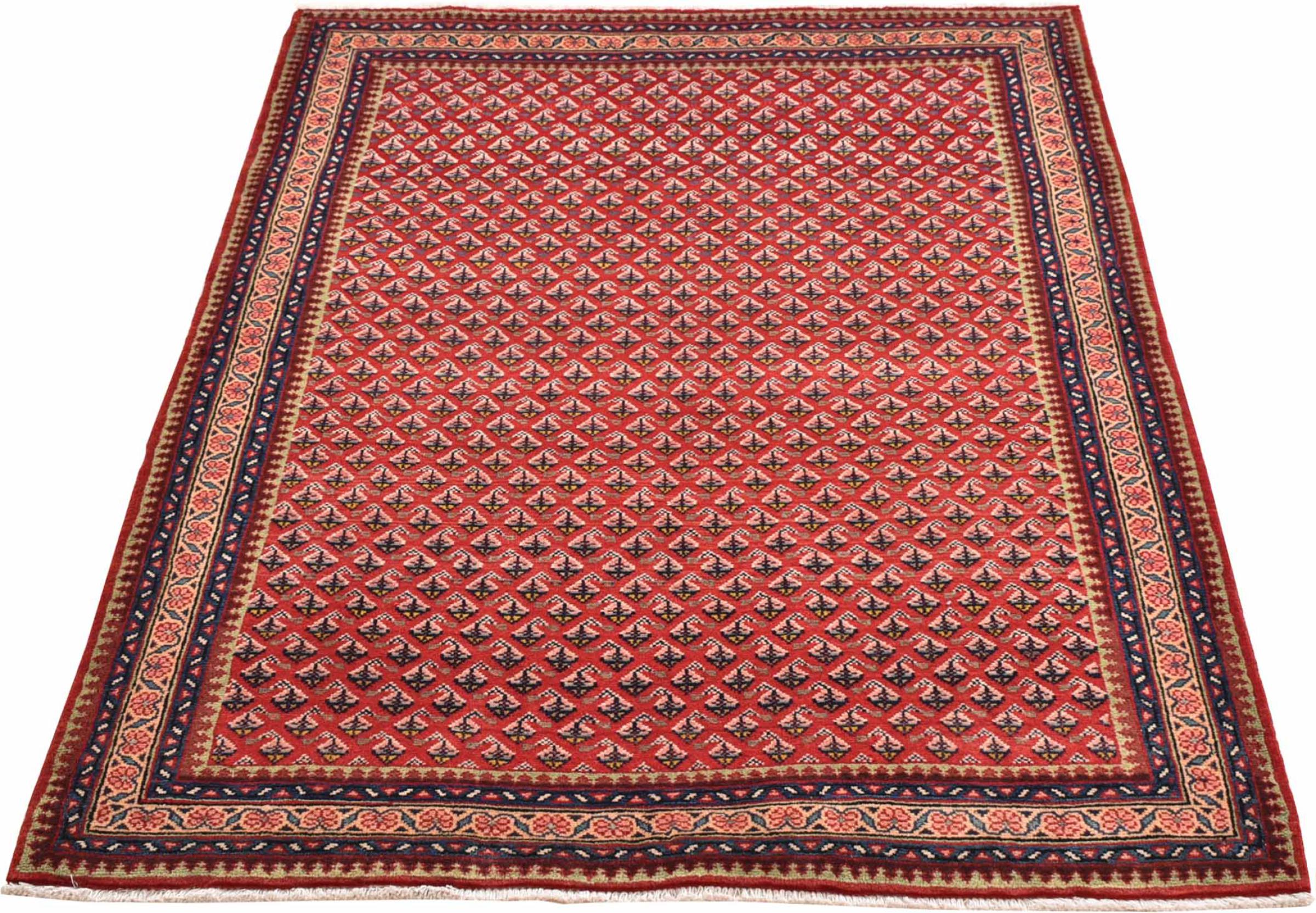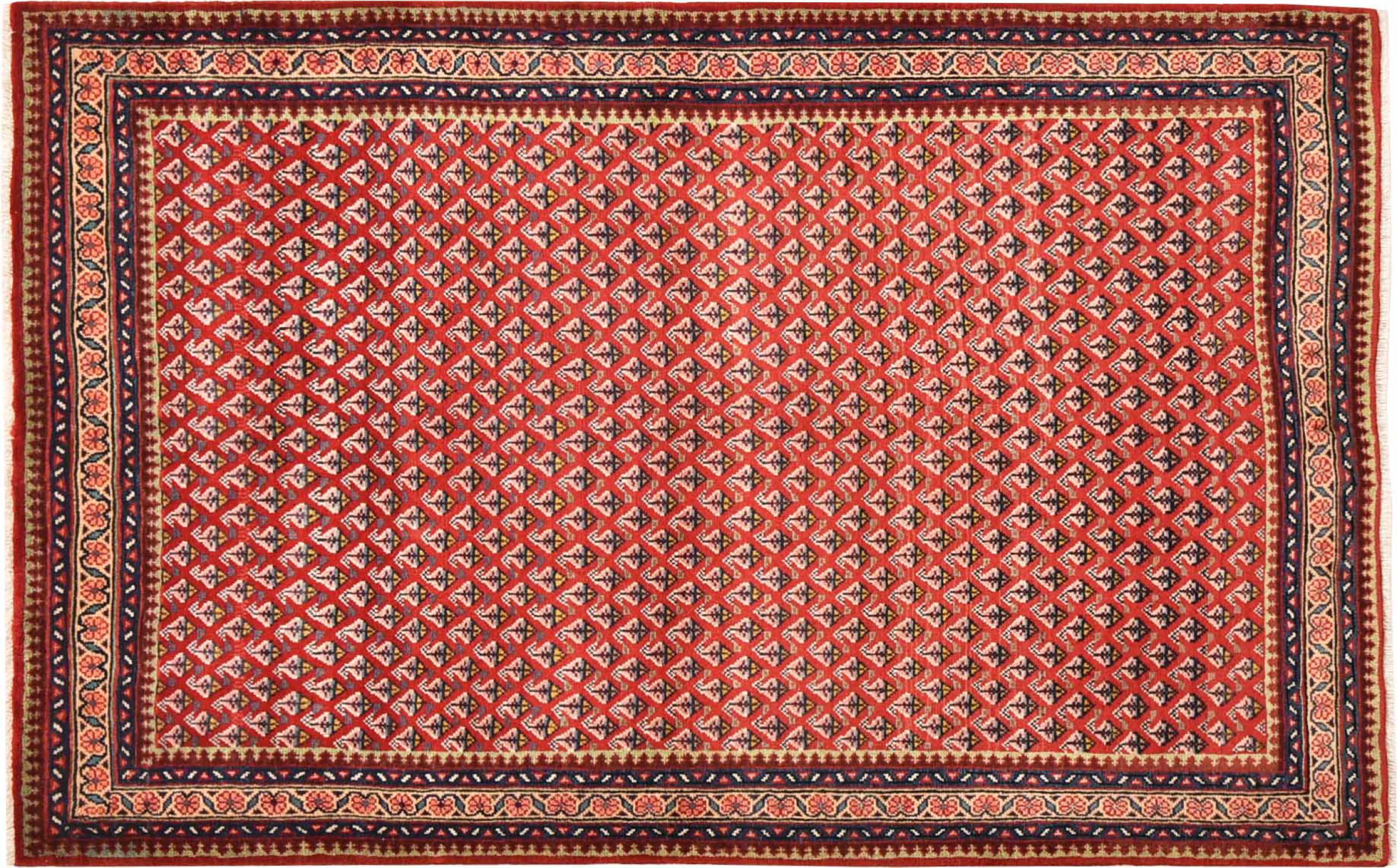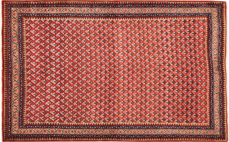 Covor Nr.: 300987005227459 Mărime: 169x108 cm Grosime: cca. 12 mm Noduri: 128 000 - 160 000 / m² Prelucrare: Lucrate de mână Catifeaua: Lână toarsă manual Urzeala: Bumbac Origine: Persien / Iran Vechime: Nou Greutate: cca. 7 kg De asemenea cunoscut ca si Sarough Mir În stoc: Unic - Doar 1 în stoc