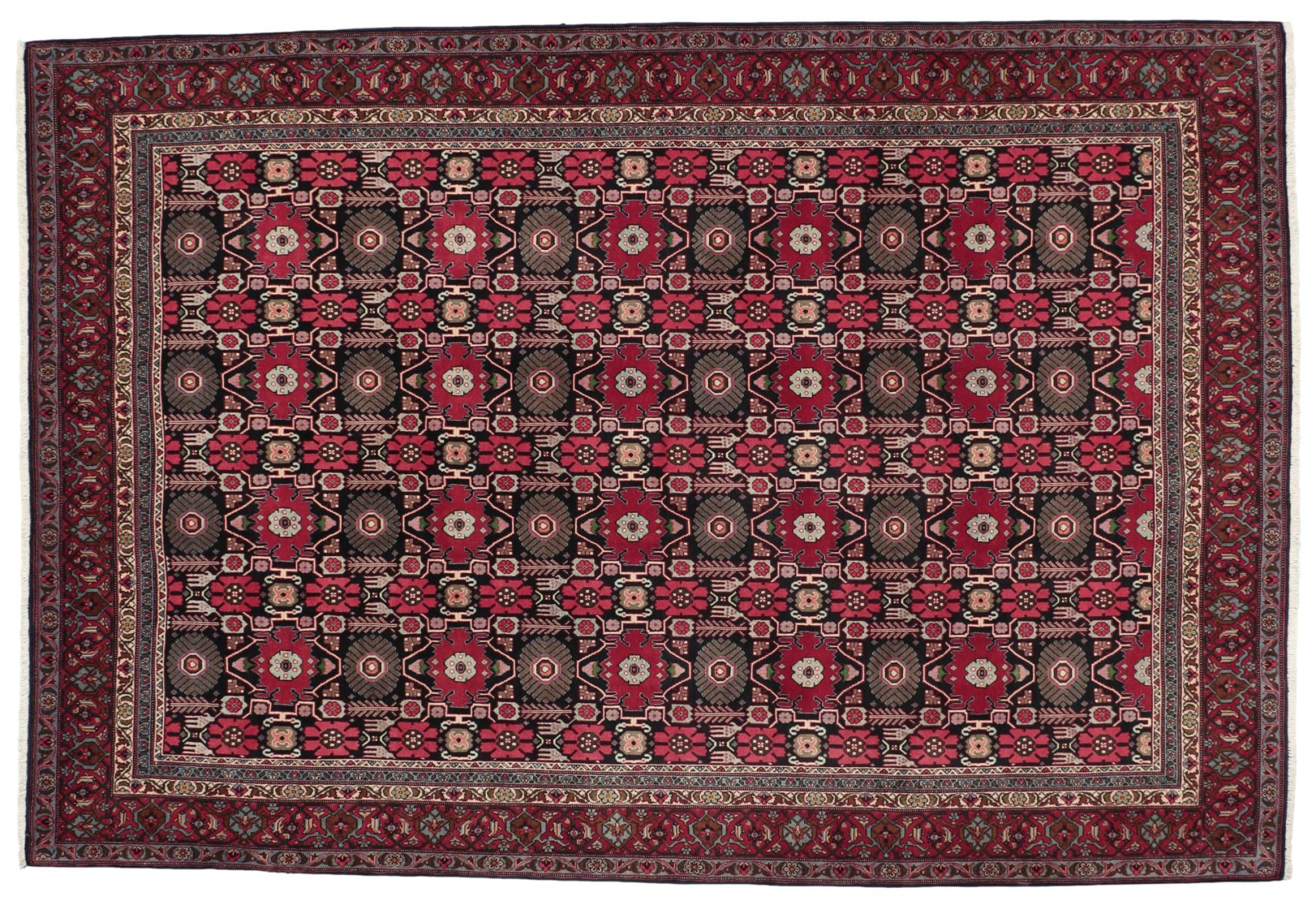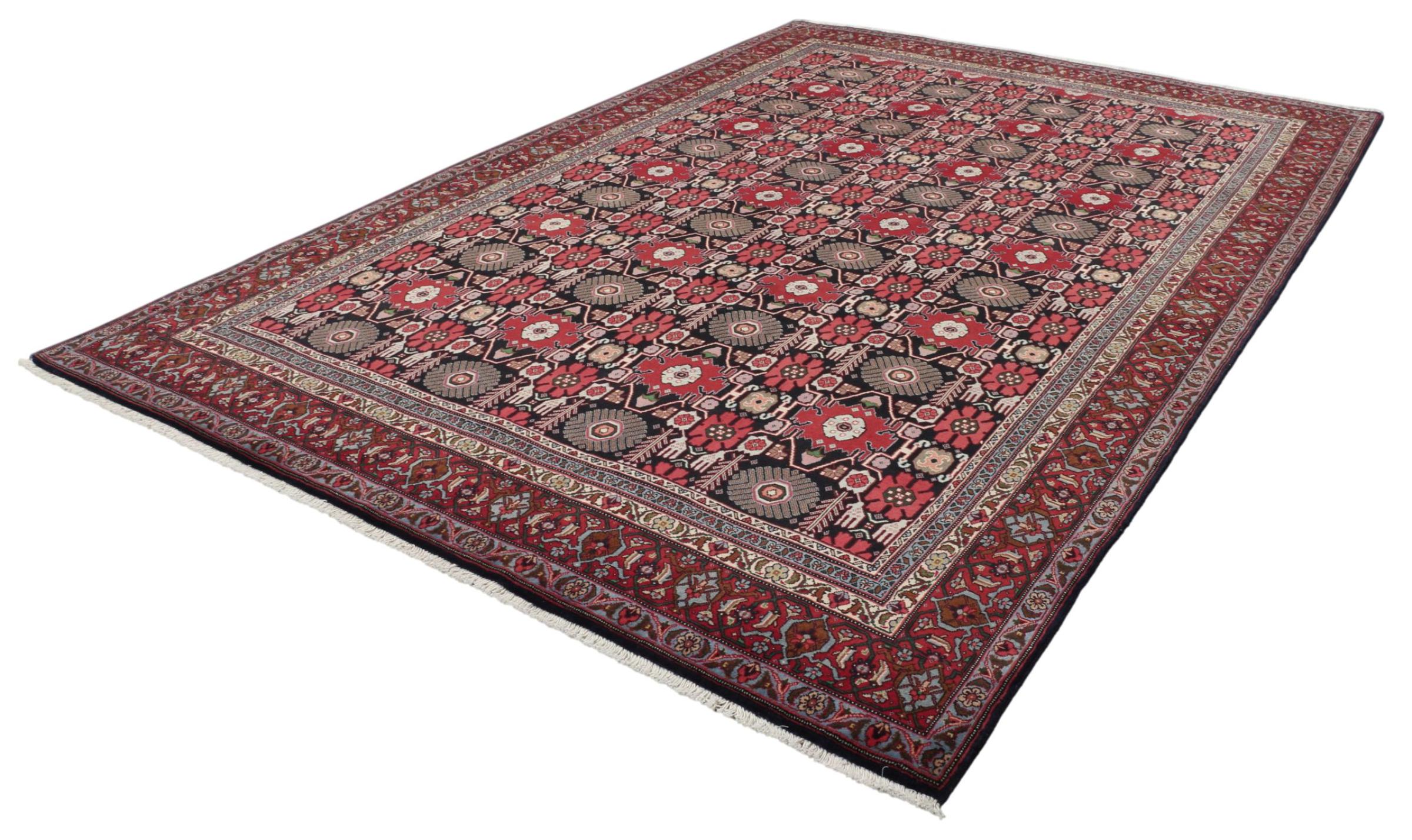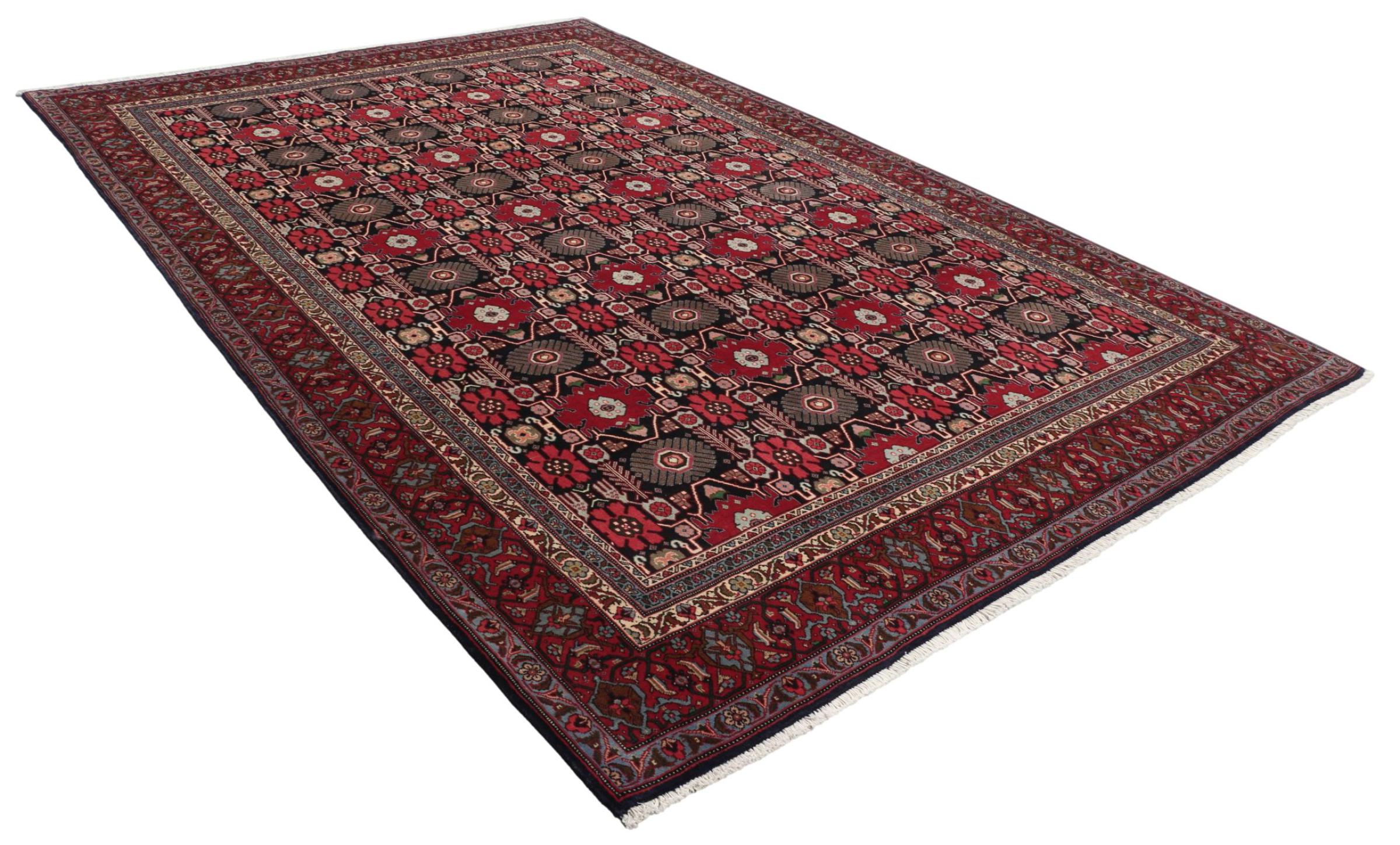 Covor Nr.: 309203006545004 Mărime: 301x202 cm Grosime: cca. 12 mm Noduri: 200 000 - 250 000 / m² Prelucrare: Lucrate de mână Catifeaua: Lână toarsă manual Urzeala: Bumbac Origine: Persien / Iran Vechime: vechi/semi-antic, vechi de peste 50 de ani Greutate: cca. 21 kg În stoc: Unic - Doar 1 în stoc