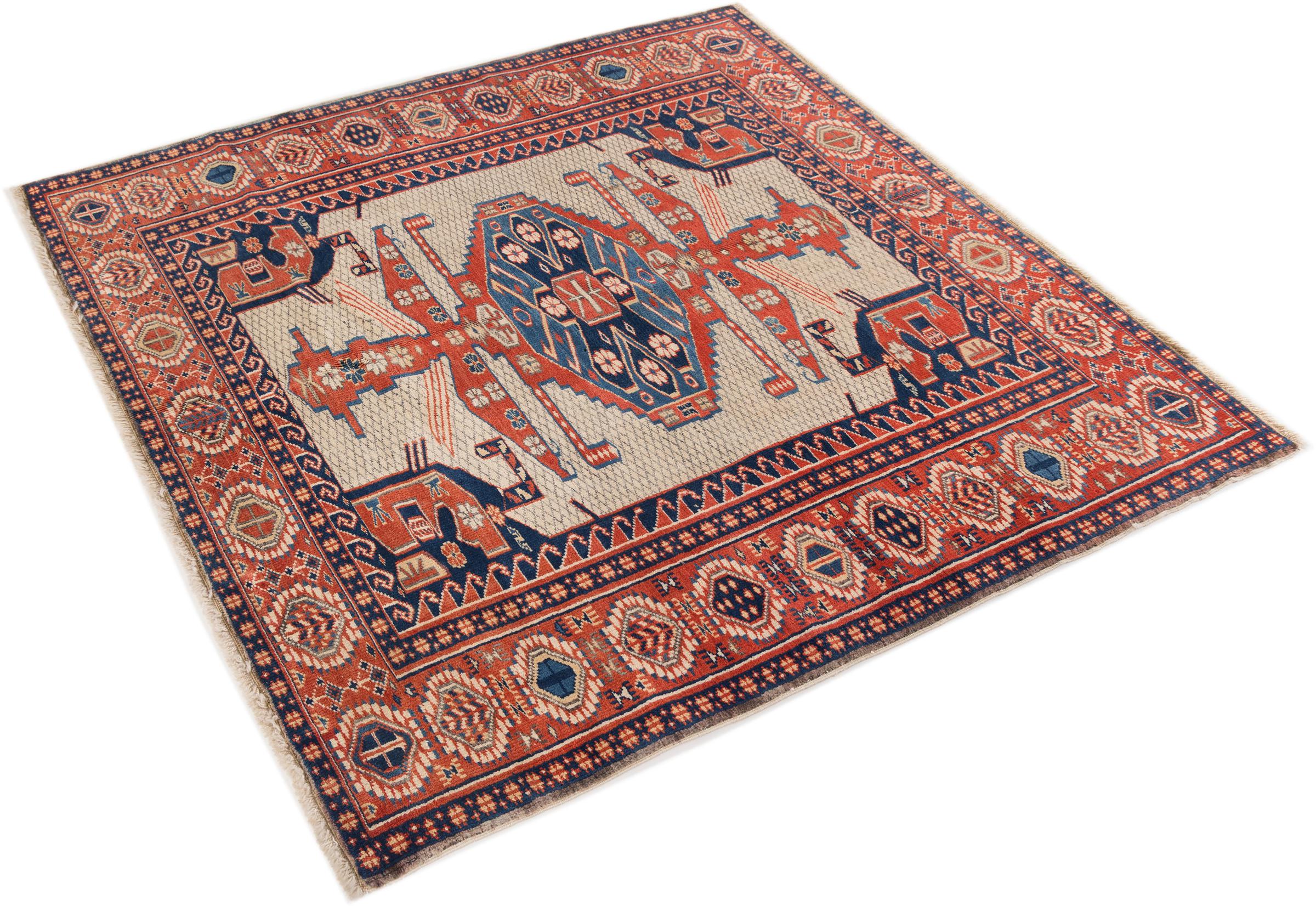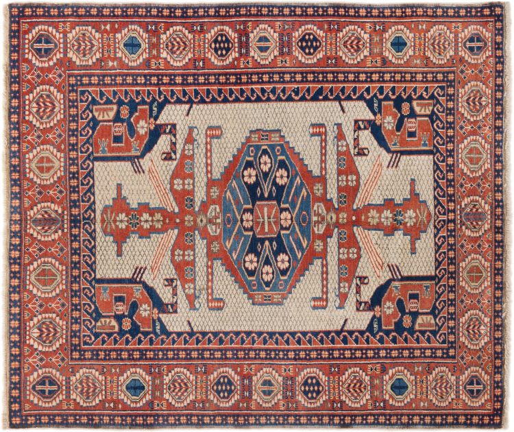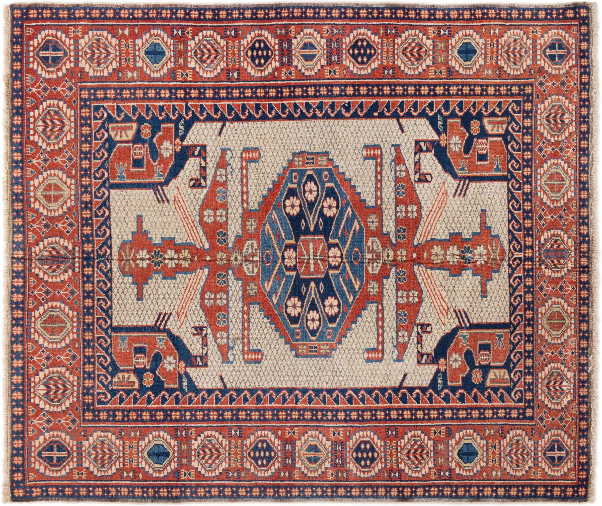 Covor Nr.: 296514001887 Mărime: 153x130 cm Grosime: cca. 12 mm Noduri: 200 000 - 250 000 / m² Prelucrare: Lucrate de mână Catifeaua: Lână toarsă manual Urzeala: Lână Origine: Azerbaijan / Rusia Vechime: Nou Greutate: cca. 6 kg De asemenea cunoscut ca si Afghan Shirvan, Kaukasisch În stoc: Unic - Doar 1 în stoc