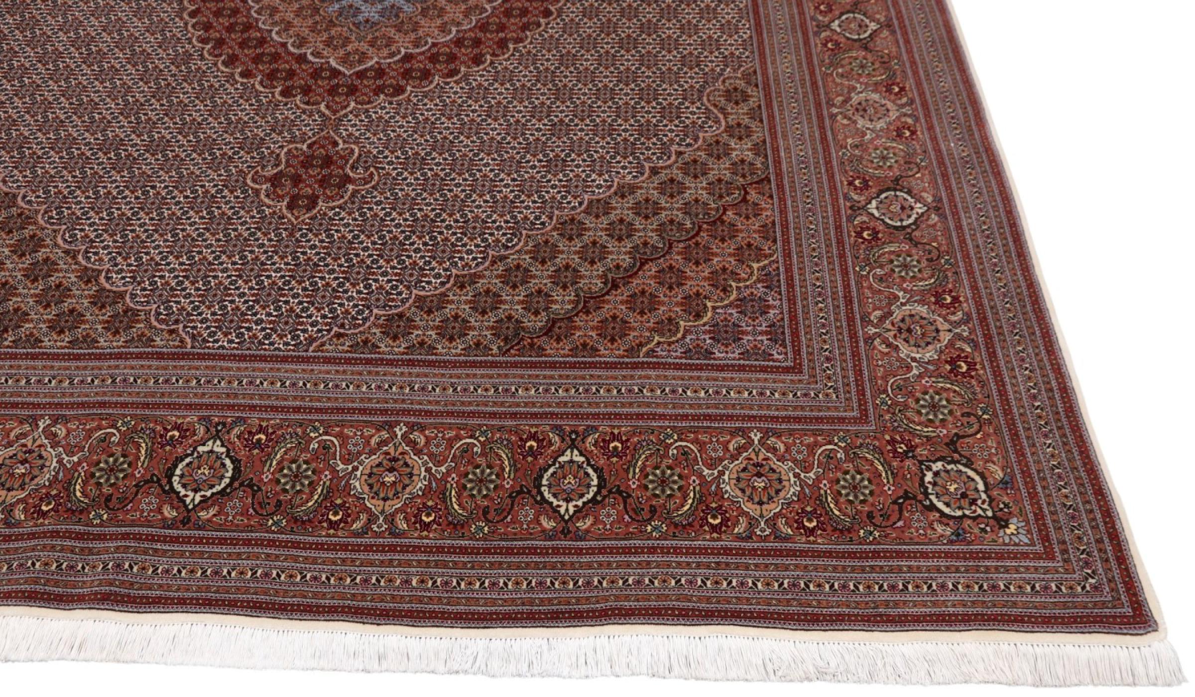 Covor Nr.: 306149004451510 Mărime: 313x252 cm Grosime: cca. 7 mm Noduri: 450 000 - 500 000 / m² Prelucrare: Lucrate de mână Catifeaua: Lână cu mătase Urzeala: Bumbac Origine: Persien / Iran Vechime: Nou Greutate: cca. 24 kg De asemenea cunoscut ca si Tabriz, Tabris, Täbris, Tebriz, Tebris, 40Raj, 50Raj În stoc: Unic - Doar 1 în stoc