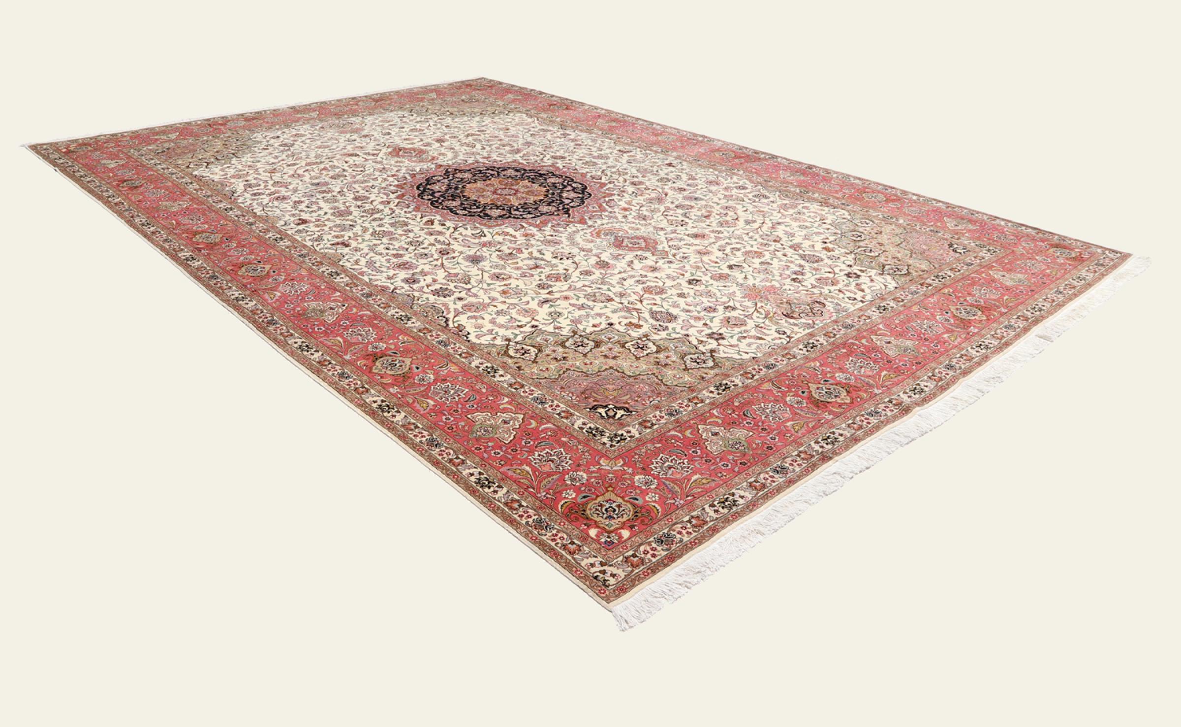Tabriz este unul dintre cele mai mari orașe din Iran și este una dintre cele mai cunoscute proveniențe ale covoarelor persane. Covoarele Tabriz sunt adesea notate cu un număr „Raj”. Cu cât acest număr este mai mare, cu atât covorul este mai fin, deoarece indică densitatea nodurilor. Există atât covoare persane medii (40 Raj) cât și excepțional de fine (80 Raj) din Tabriz.