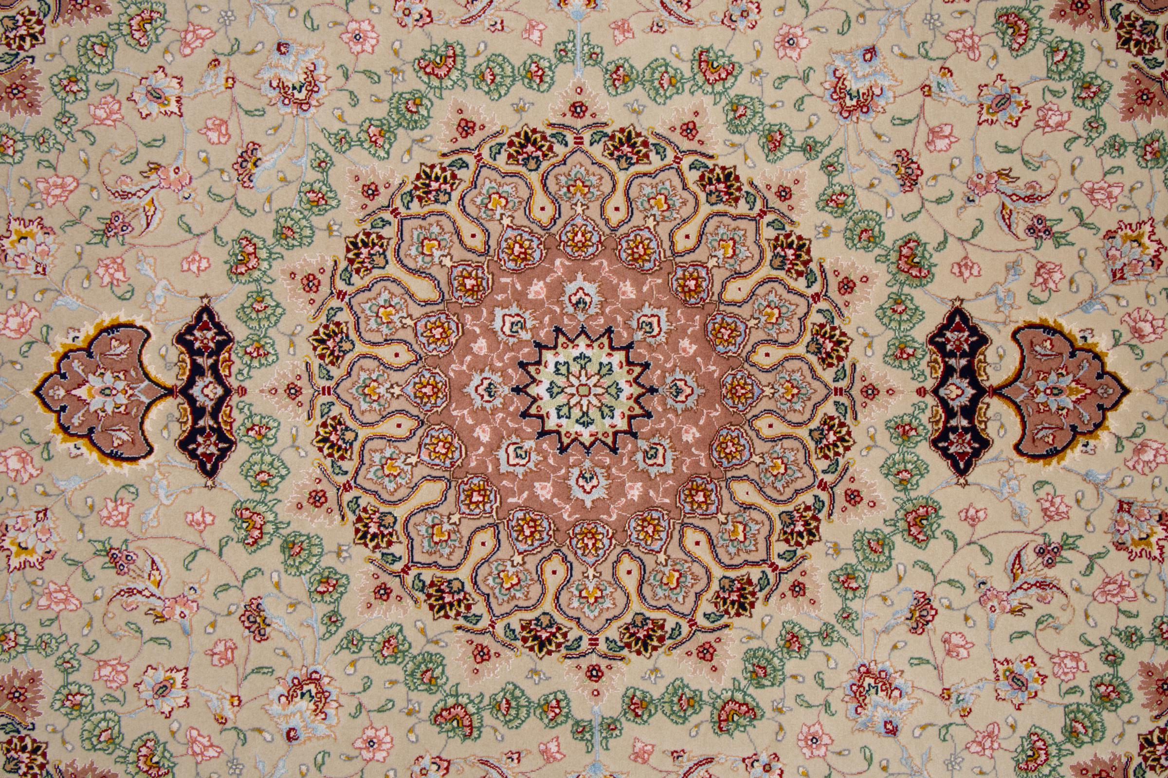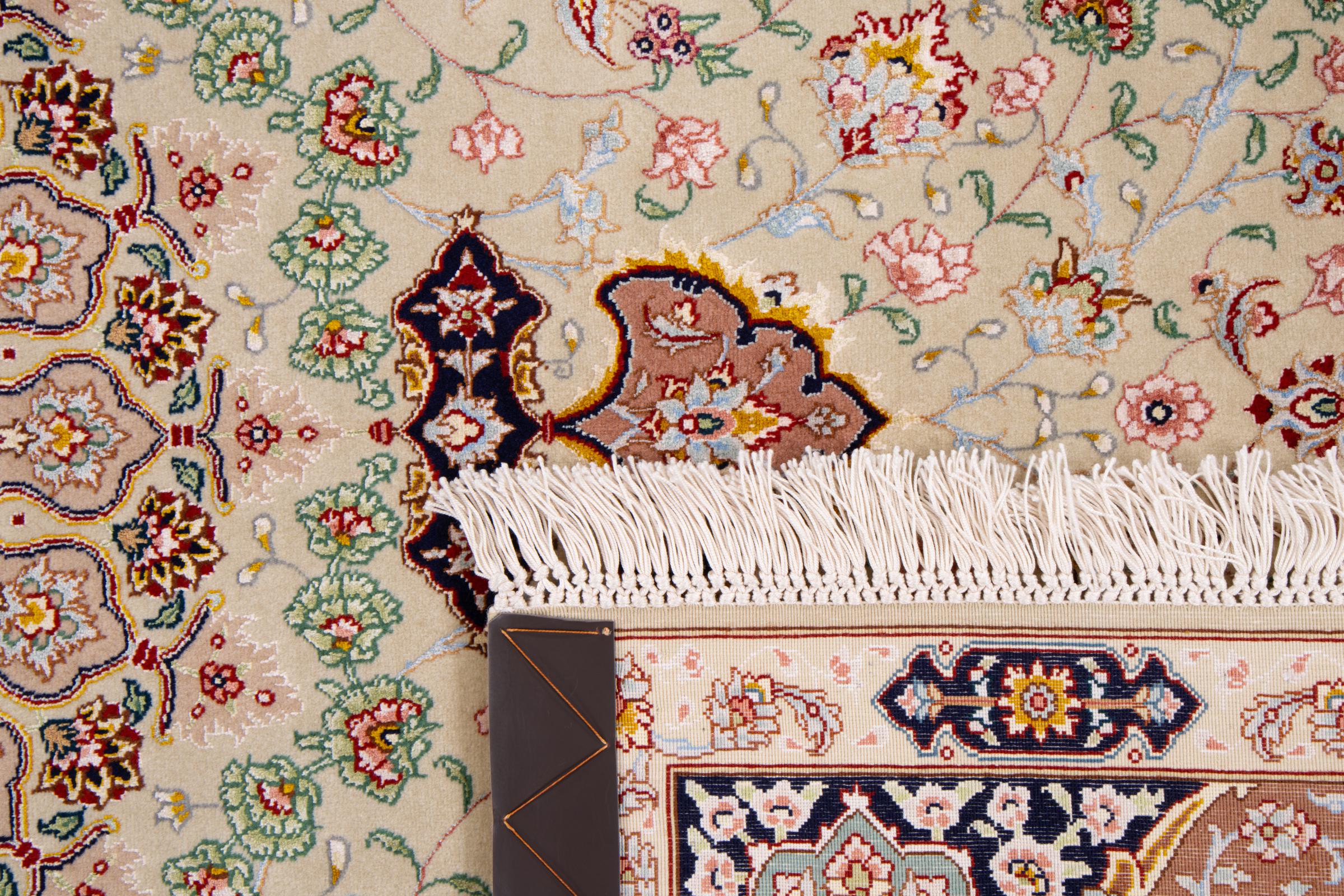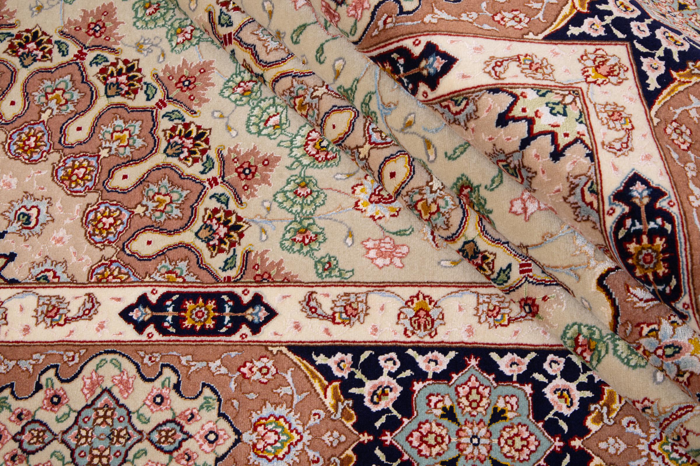 Covor Nr.: 292292009525532 Mărime: 199x147 cm Grosime: cca. 6 mm Noduri: 640 000 / m² Prelucrare: Lucrate de mână Catifeaua: Lână cu mătase Urzeala: Mătase Origine: Persien / Iran Vechime: Nou Greutate: cca. 9 kg De asemenea cunoscut ca si Tabris, Tabriz, Tebris, Tebriz, Täbris, 60Raj În stoc: Unic - Doar 1 în stoc