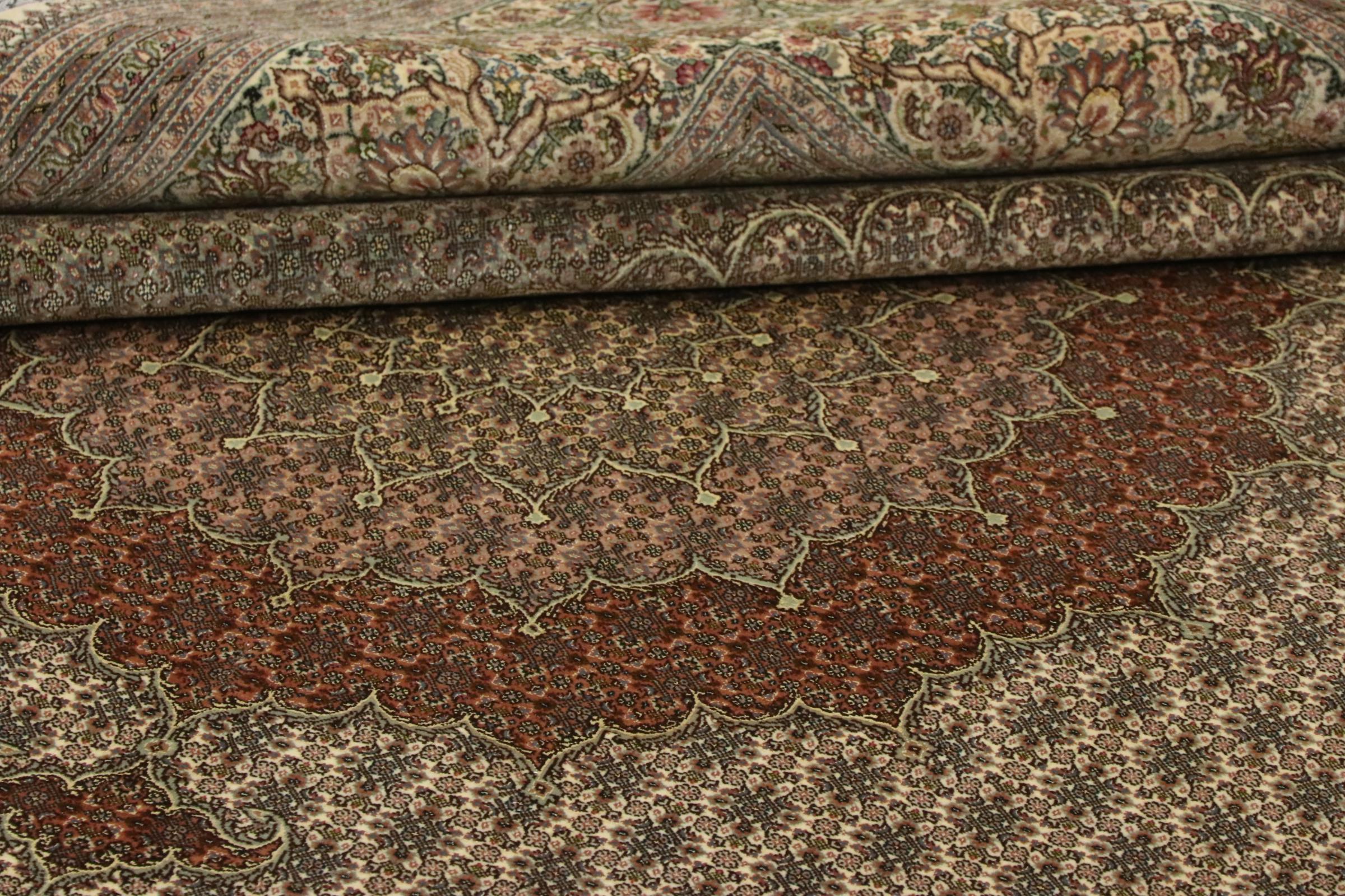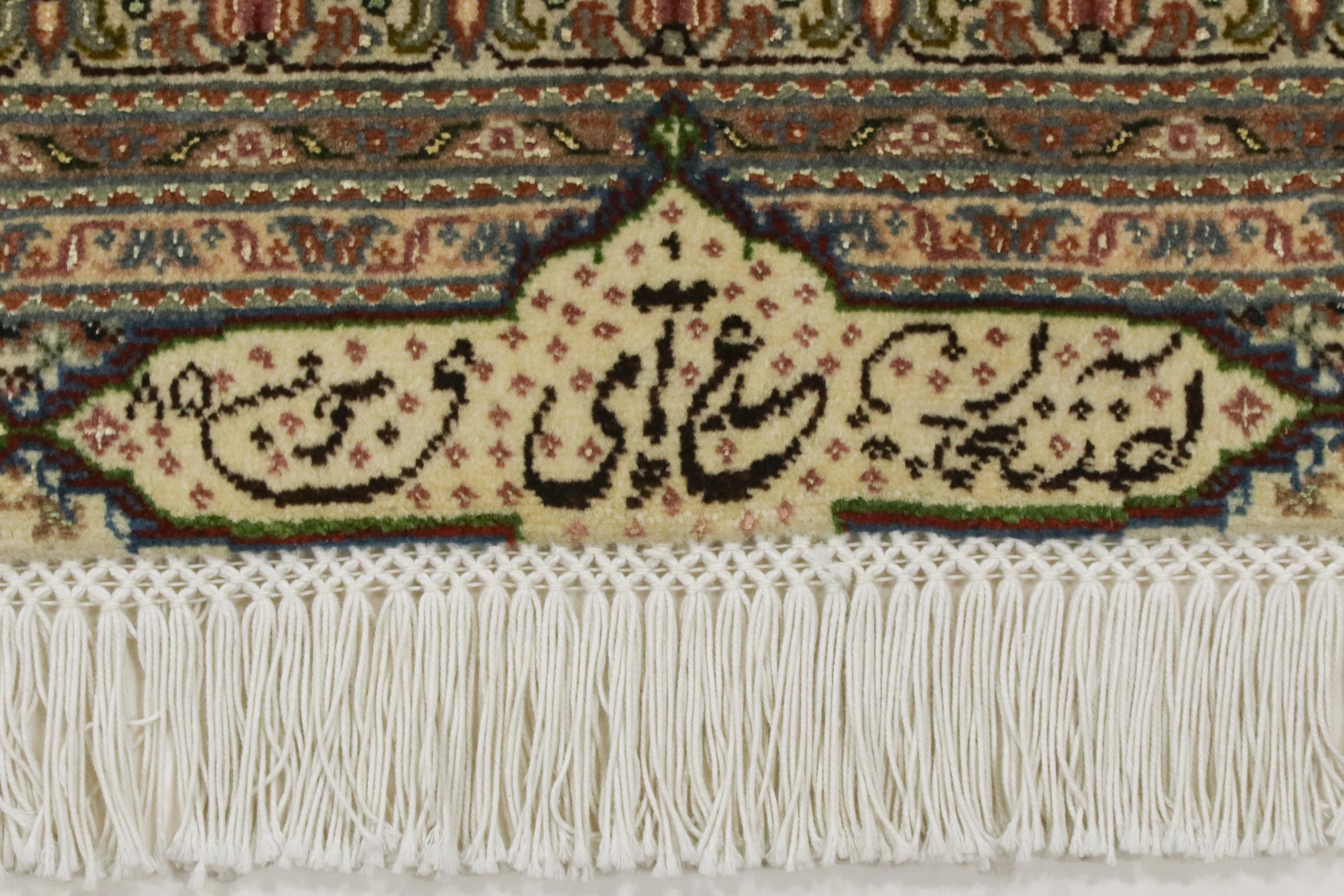Covor Nr.: 181205002971076 Mărime: 398x302 cm Grosime: cca. 7 mm Noduri: 640 000 / m² Prelucrare: Lucrate de mână Catifeaua: Lână cu mătase Urzeala: Bumbac Origine: Persien / Iran Vechime: Nou Greutate: cca. 36 kg De asemenea cunoscut ca si Tabris, Tabriz, Tebris, Tebriz, Täbris În stoc: Unic - Doar 1 în stoc
