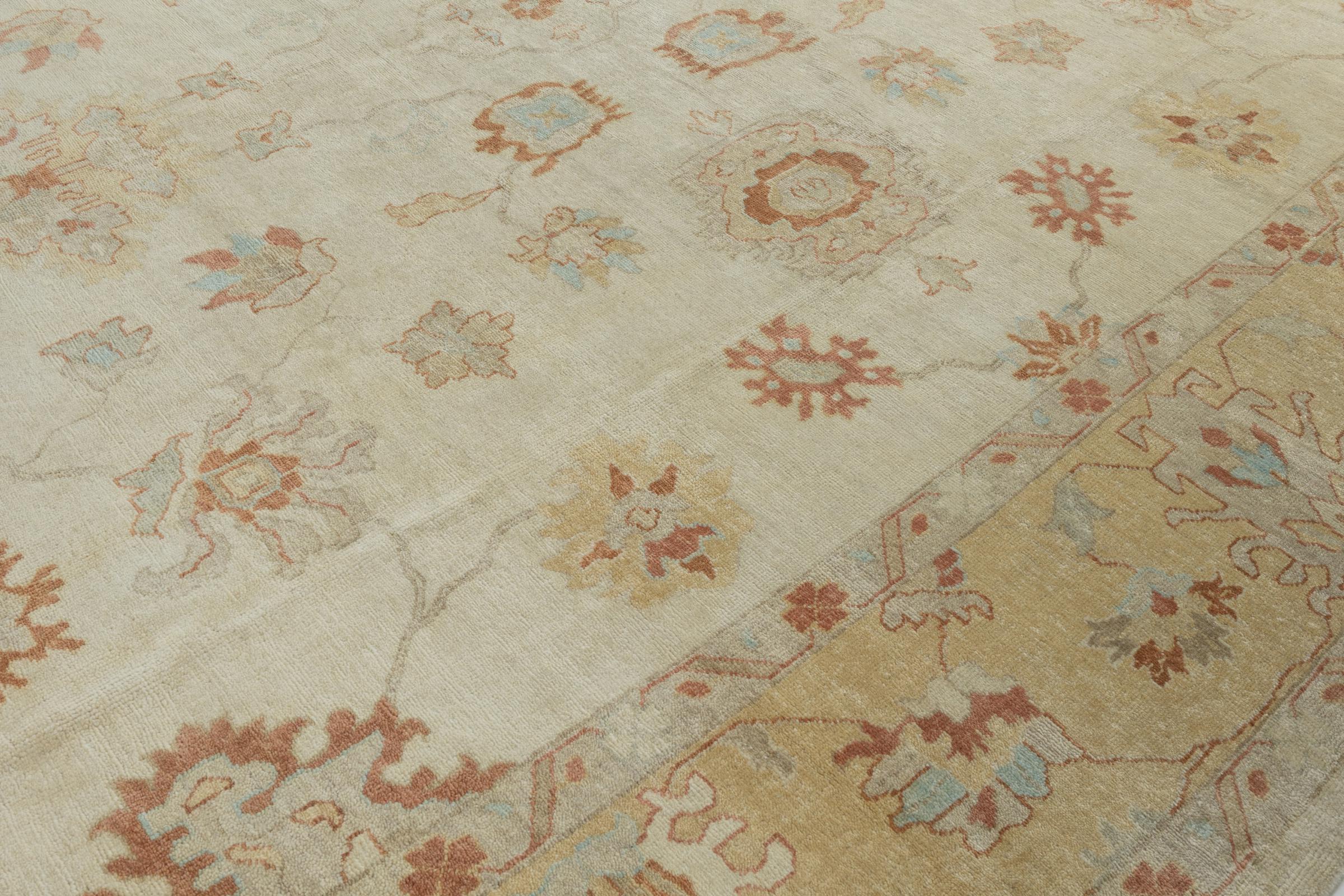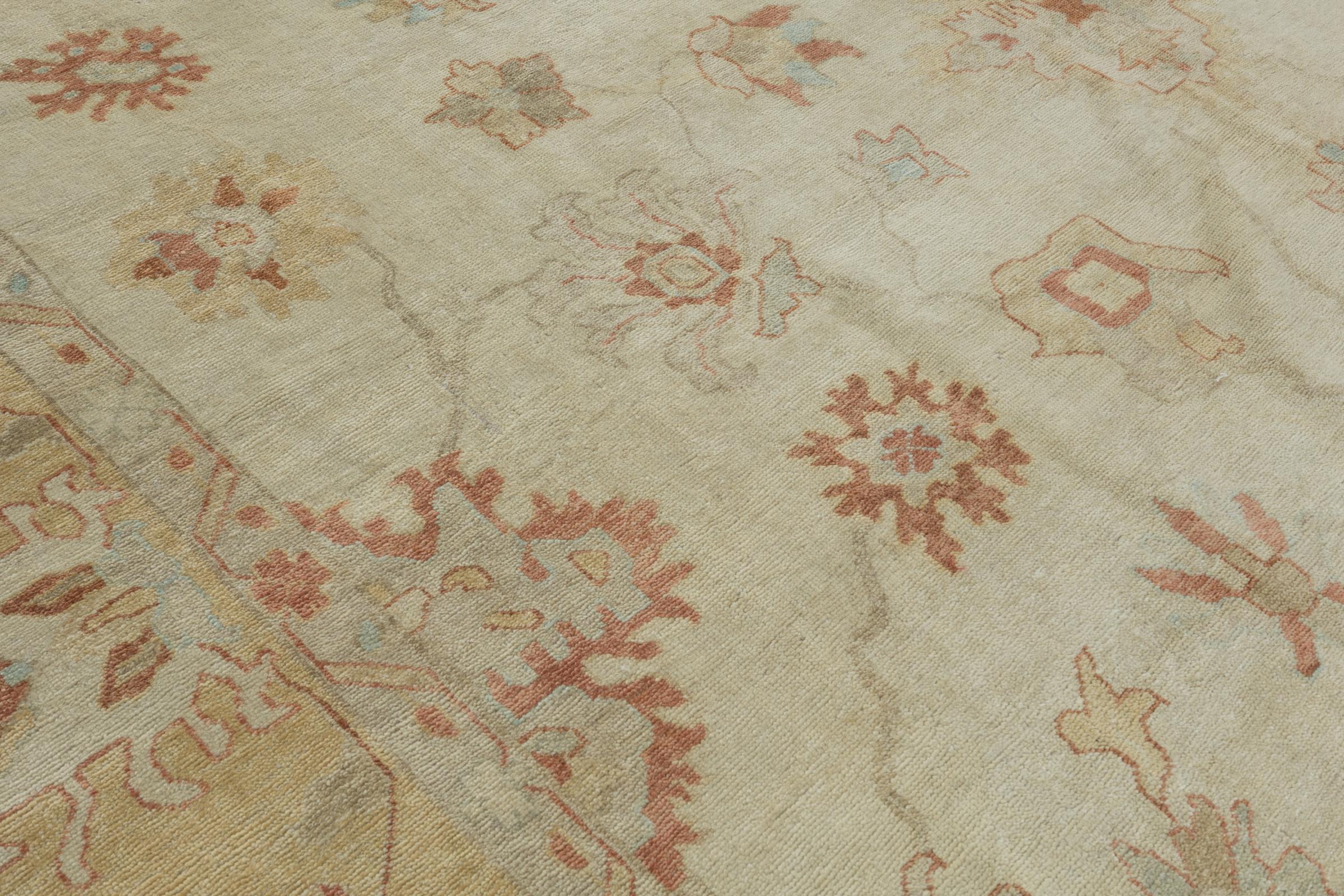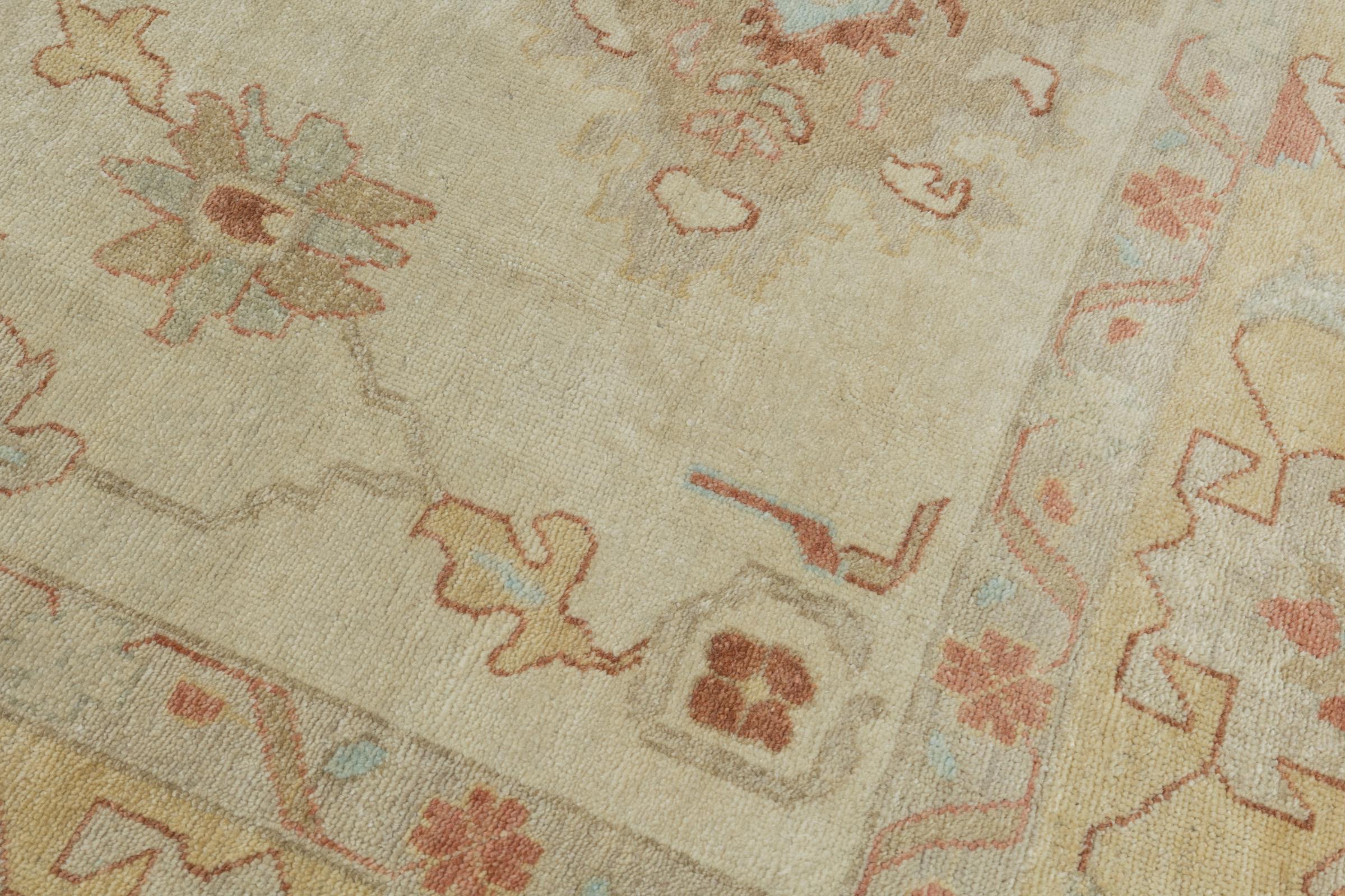 Acest covor Usak de înaltă calitate este un element deosebit datorită designului său tradițional. Este o expresie a celei mai fine meșteșugării și a tehnicilor avansate de nodare. Aceste covoare realizate cu măiestrie se remarcă prin culorile lor armonioase, modelele detaliate și materialele moi. Datorită eleganței lor atemporale, se integrează perfect în diferite stiluri de amenajare și adaugă accente stilate. Finisajul deosebit asigură nu doar o rezistență ridicată, ci și o textură excepțională. Modelele florale, ornamentele curbe și nuanțele delicate sunt deosebit de remarcabile, conferind covorului o strălucire incomparabilă.