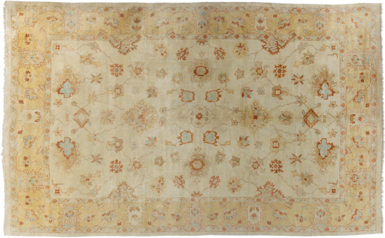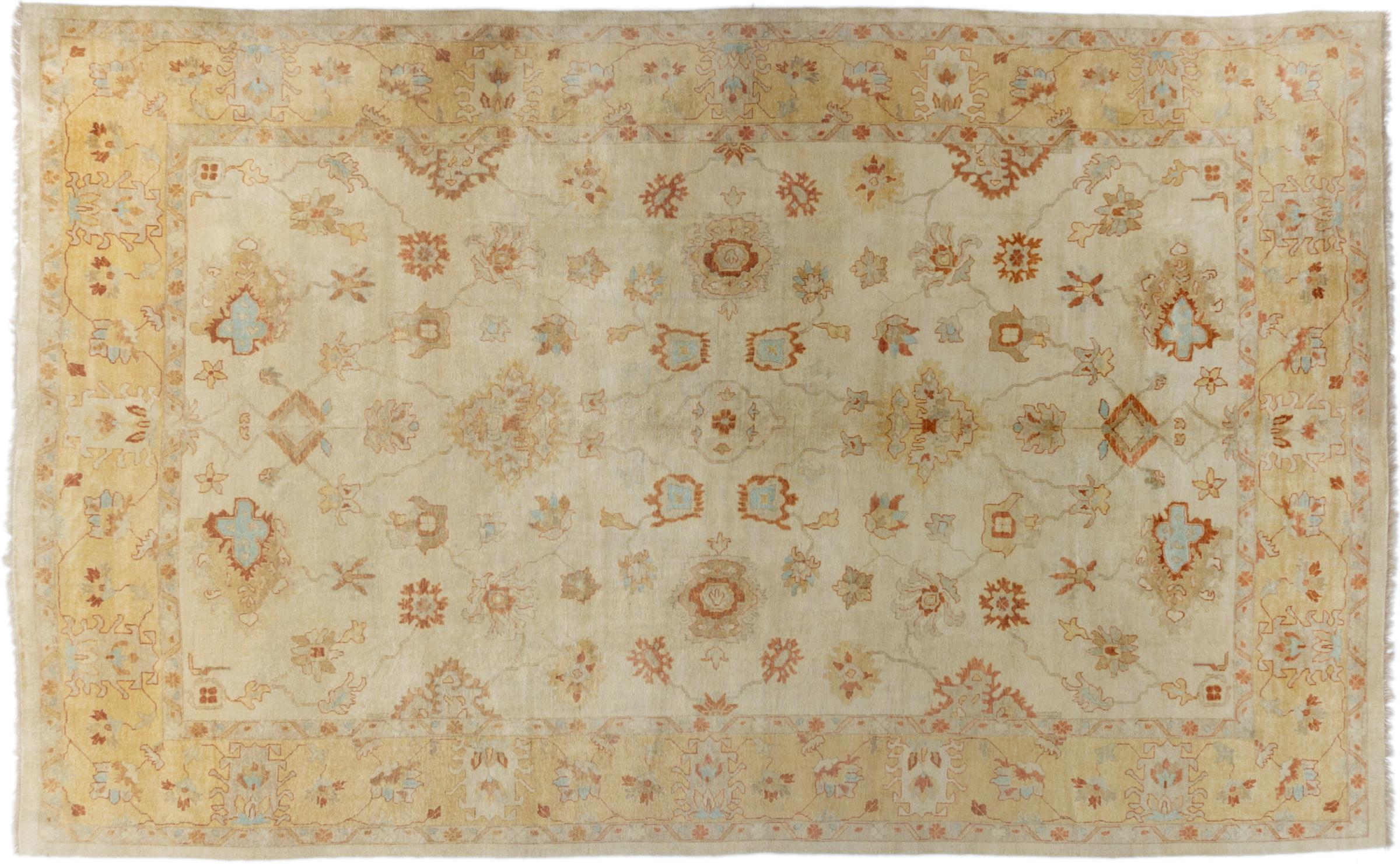 Covor Nr.: 263501009333422 Mărime: 566x351 cm Grosime: cca. 6 mm Noduri: 72 000 - 90 000 / m² Prelucrare: Lucrate de mână Catifeaua: Lână toarsă manual Urzeala: Lână Origine: India Vechime: Nou Greutate: cca. 70 kg De asemenea cunoscut ca si Ushak, Oushak În stoc: Unic - Doar 1 în stoc