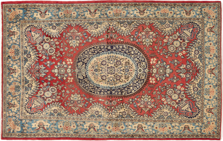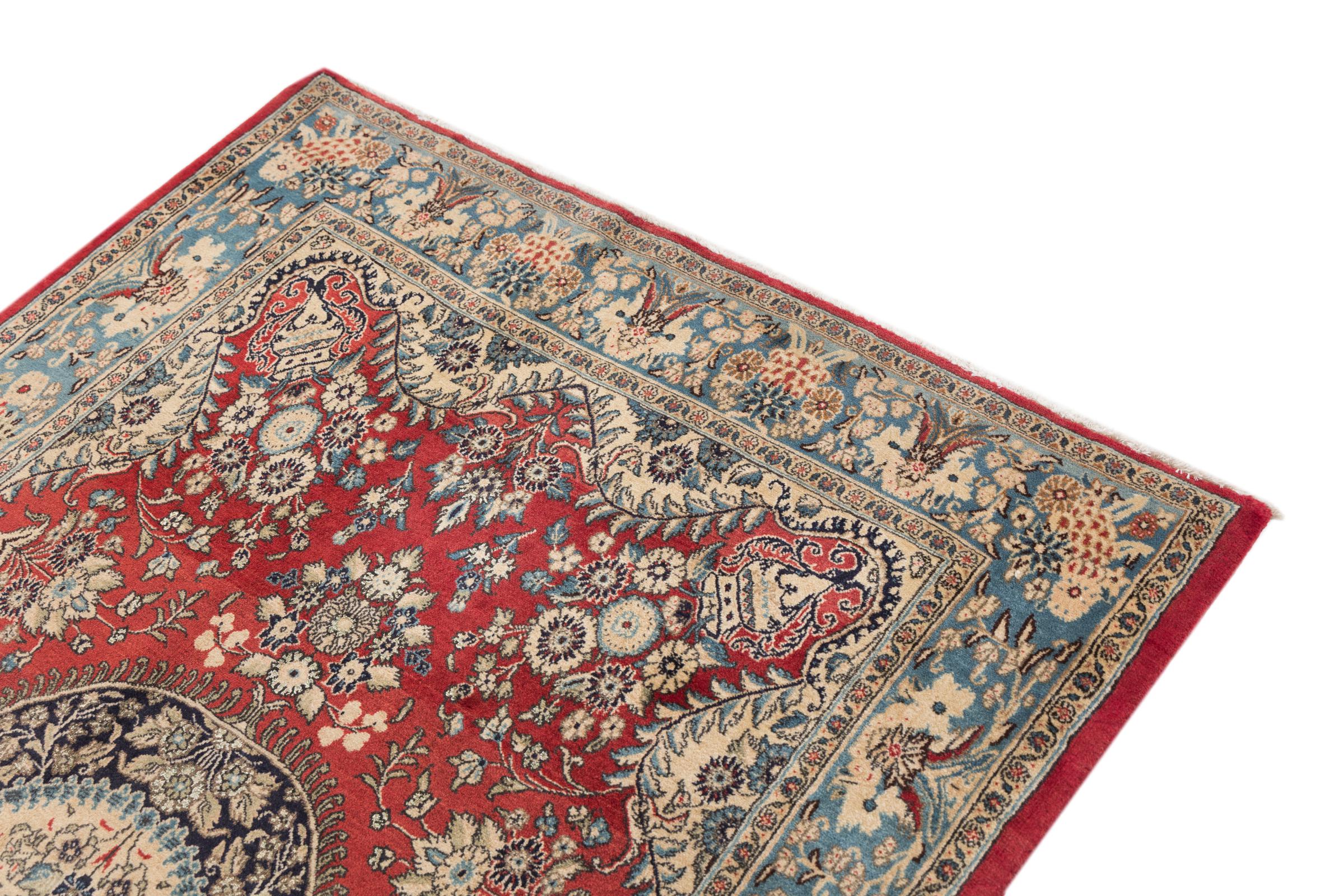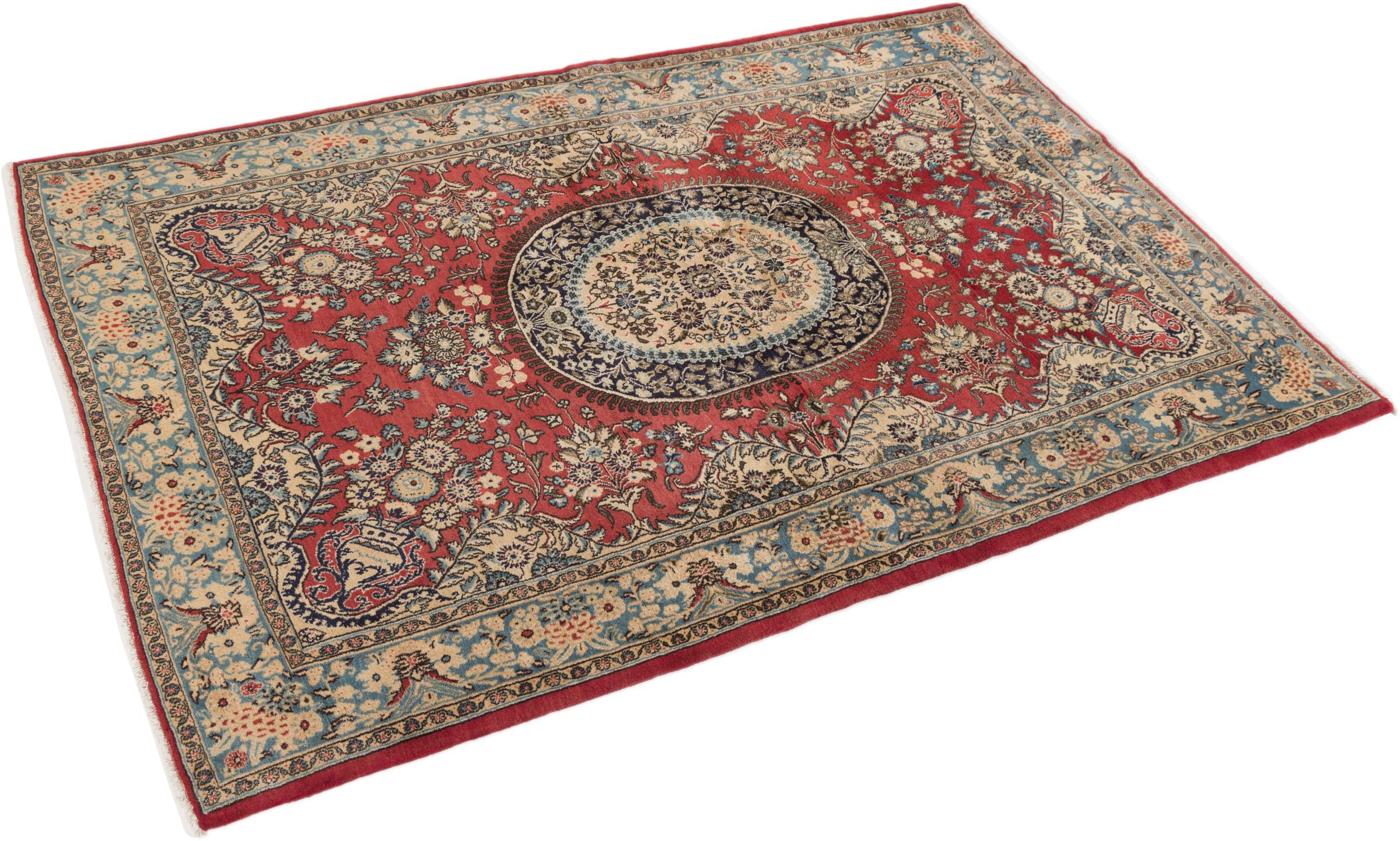 Covor Nr.: 295397006754 Mărime: 222x140 cm Grosime: cca. 10 mm Noduri: 440 000 - 490 000 / m² Prelucrare: Lucrate de mână Catifeaua: Lână cu mătase Urzeala: Bumbac Origine: Persien / Iran Vechime: vechi, cca. 30-50 de ani Greutate: cca. 11 kg În stoc: Unic - Doar 1 în stoc