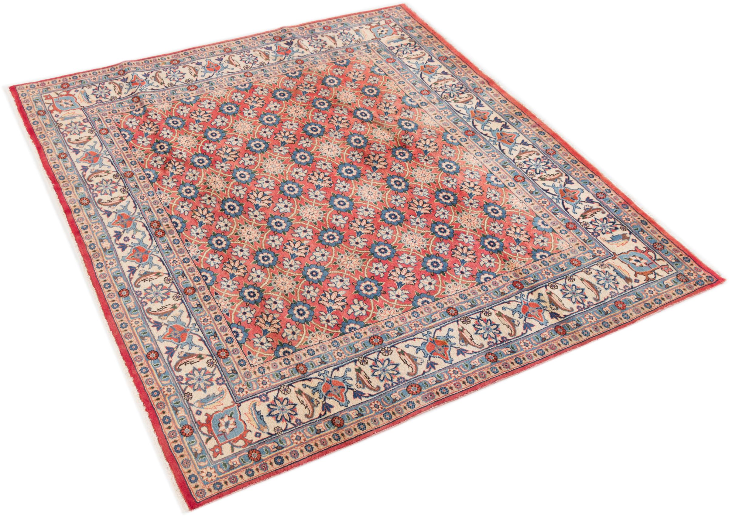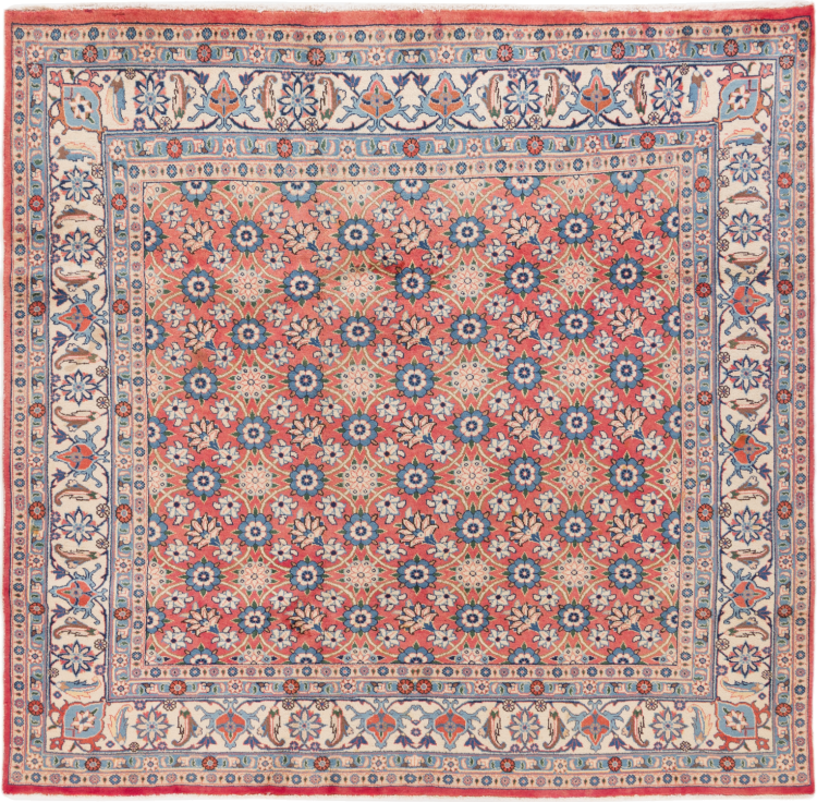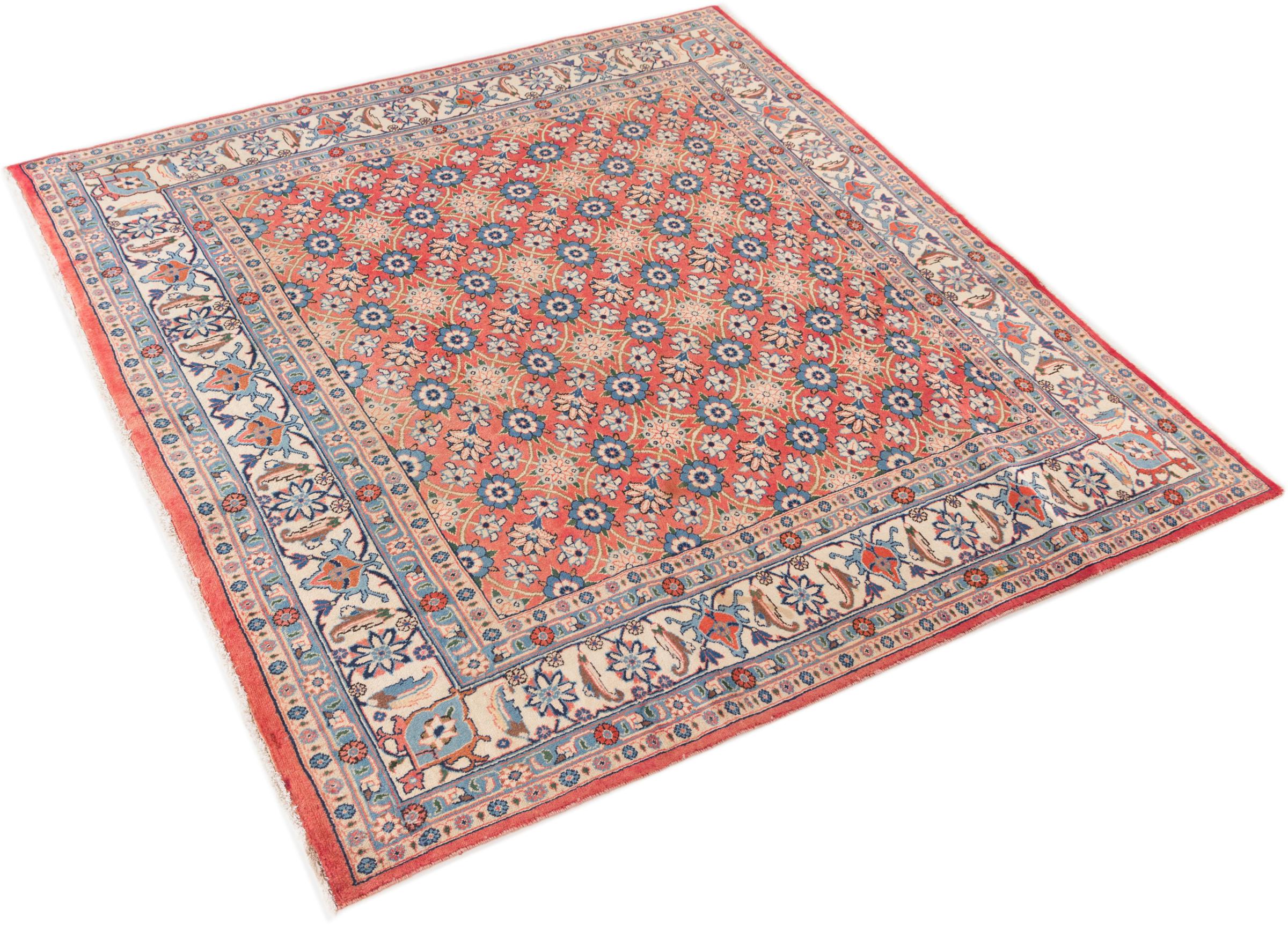 Covor Nr.: 296287004078 Mărime: 195x197 cm Grosime: cca. 12 mm Noduri: 128 000 - 160 000 / m² Prelucrare: Lucrate de mână Catifeaua: Lână toarsă manual Urzeala: Bumbac Origine: Persien / Iran Vechime: vechi, cca. 30-50 de ani Greutate: cca. 12 kg În stoc: Unic - Doar 1 în stoc