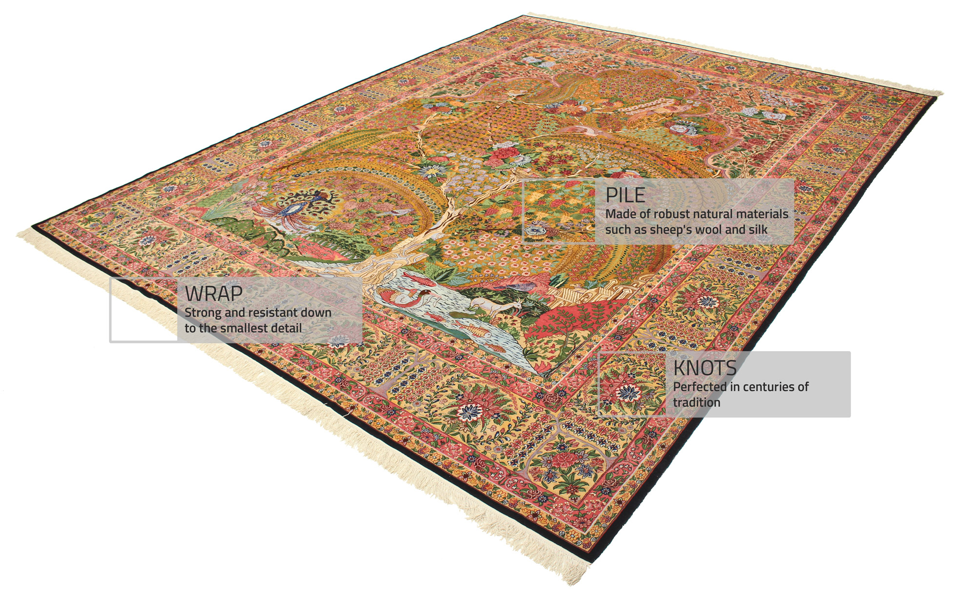 Fie că este vorba de material sau de noduri, la noi obțineți lucrări orientale de cea mai bună calitate, realizate manual. Așadar, nu trebuie să vă faceți griji cu privire la durabilitatea covorului dumneavoastră chiar și după perioada de garanție.